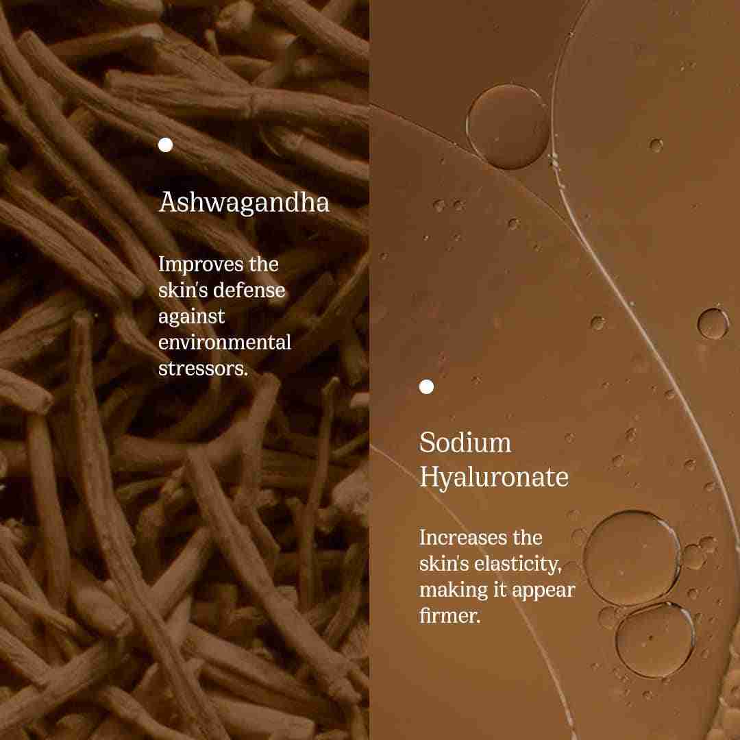Watch the 82°E Ashwagandha Bounce Face Moisturiser (50 ml) make your skin glow. As an ashwagandha Moisturiser, this skin-brightening Moisturiser reduces pigmentation and brightens your complexion. This 82°E Moisturiser is an anti-aging Moisturiser that gives you hydrated, youthful-looking skin while it boosts elasticity and refines texture, all while being suitable for every skin type.