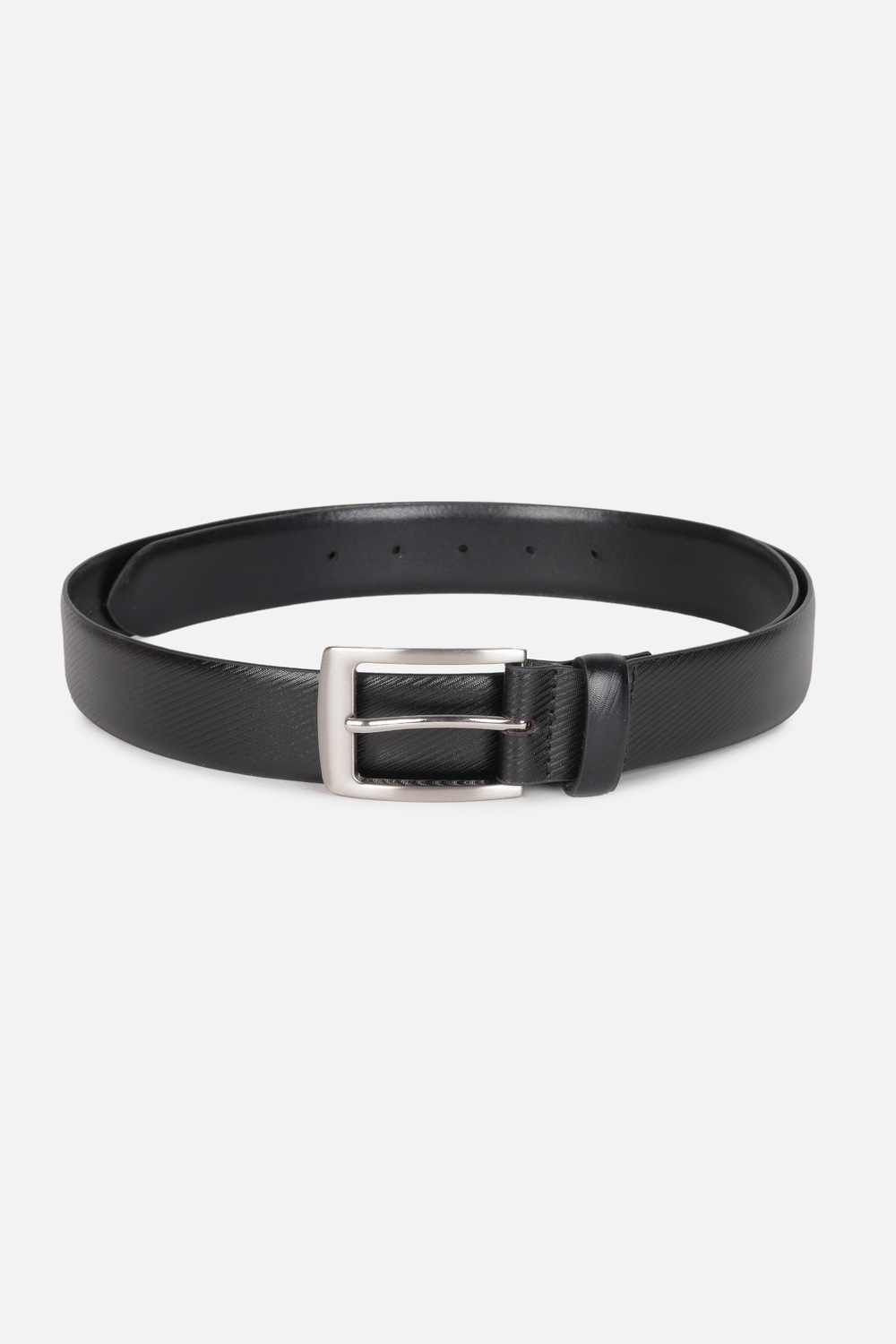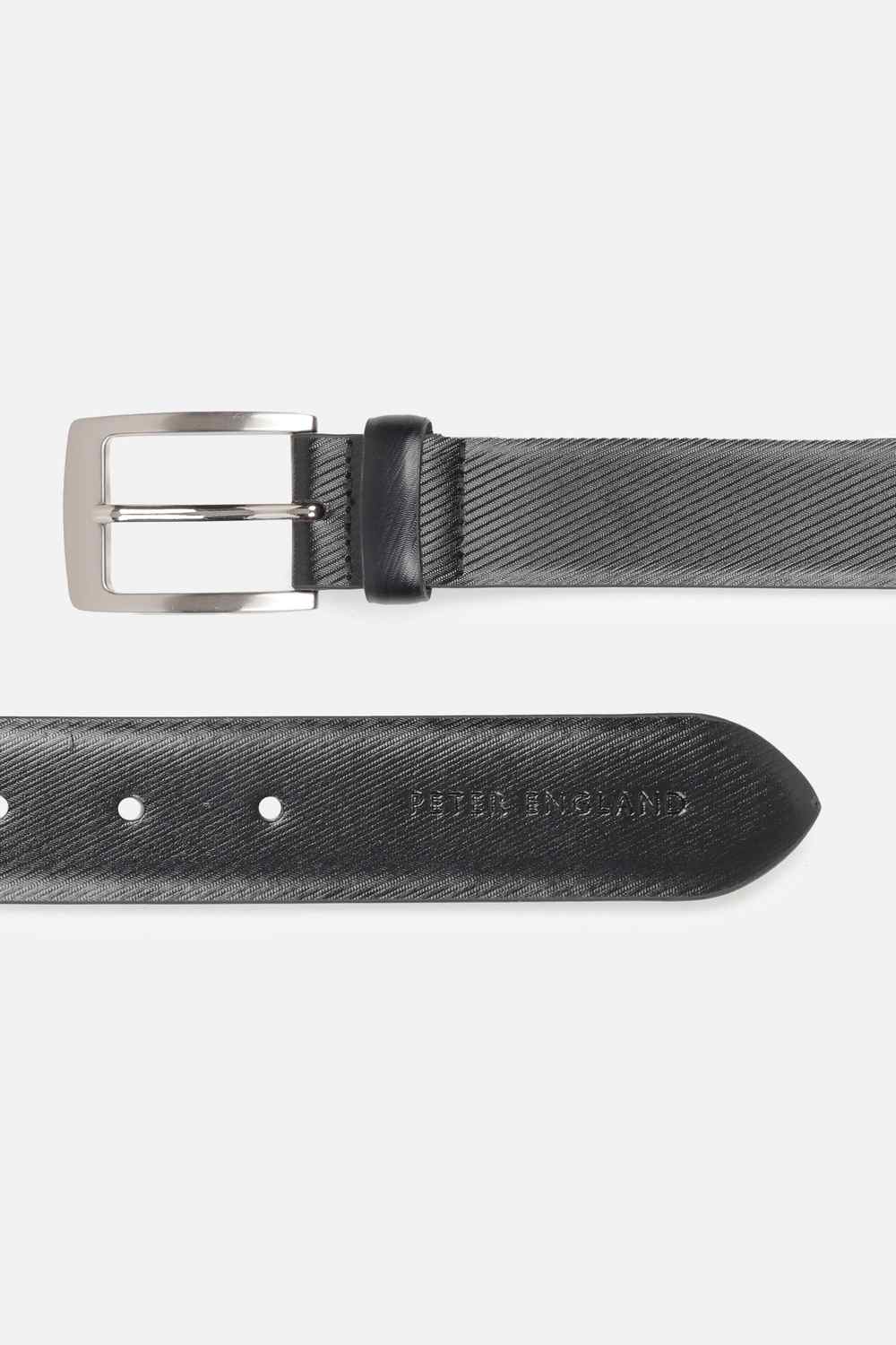 Sophisticated and timeless, this black leather belt from Peter England embodies style for the discerning gentleman. Featuring a textured finish, it effortlessly enhances formal attire while providing a secure fit. Designed to elevate your look, this accessory transforms any ensemble, adding an air of class to your appearance. A seamless blend of luxury and practicality, it's the perfect companion for both board meetings and upscale events, ensuring you always make a lasting impression.
