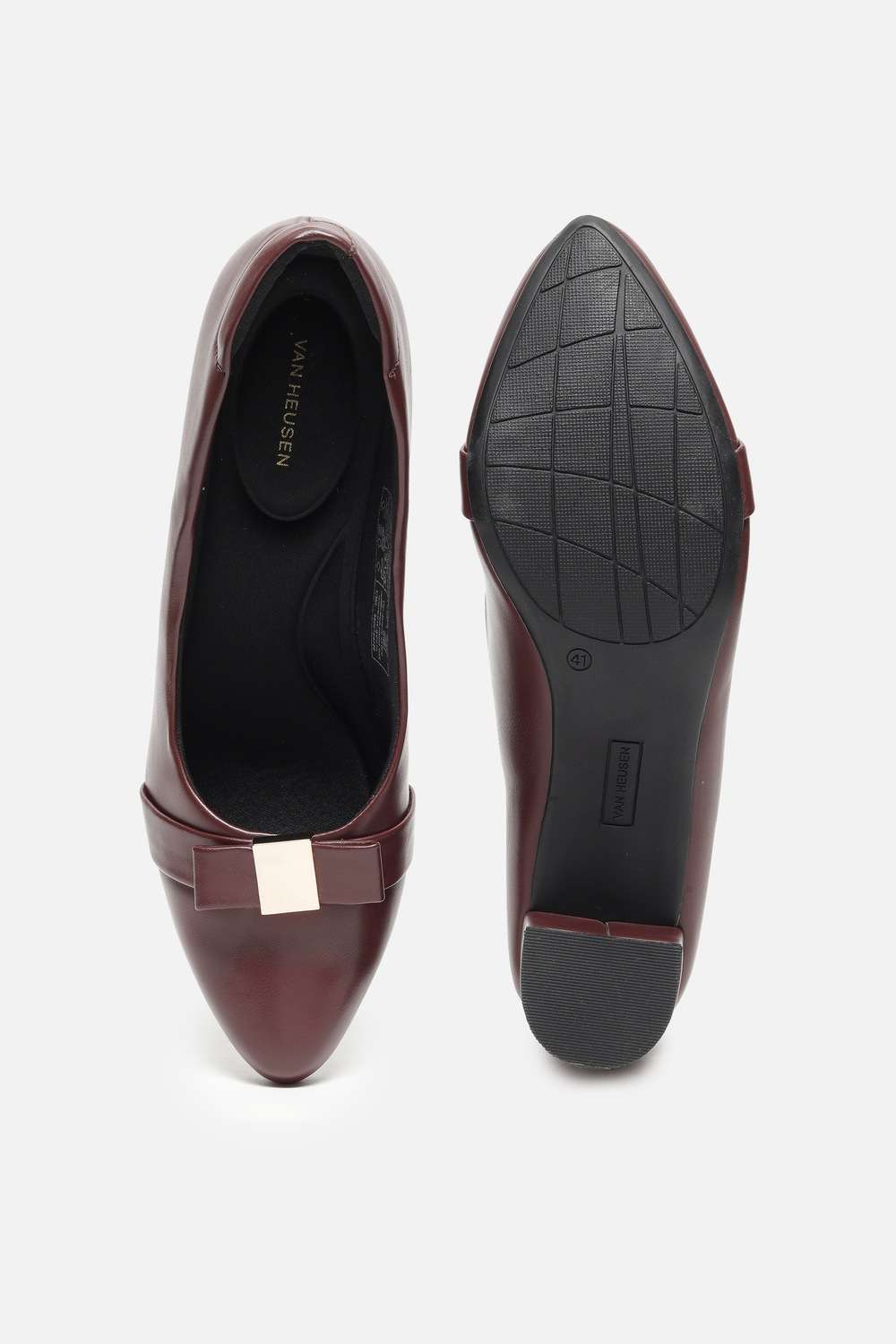 Embodying sophistication, these heels by Van Heusen in rich maroon effortlessly elevate your formal attire. Made from high-quality vegan leather, they provide comfort without compromising style, making them an exceptional choice for corporate events or elegant evenings. The solid design ensures timeless appeal, while the thoughtful construction offers stability with every step. These heels are your go-to for making a lasting impression at important occasions. Indulge in luxury and confidence with each wear.