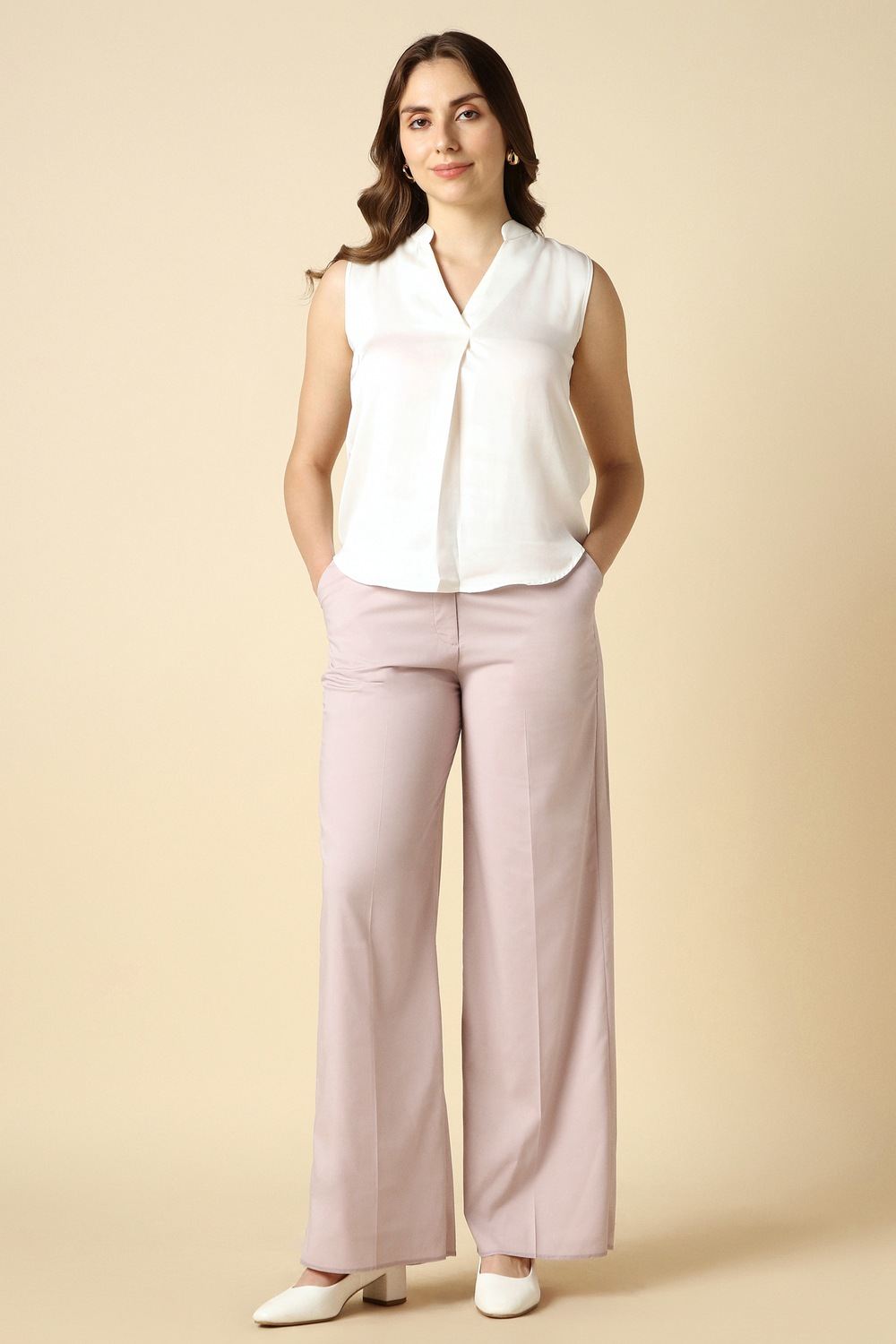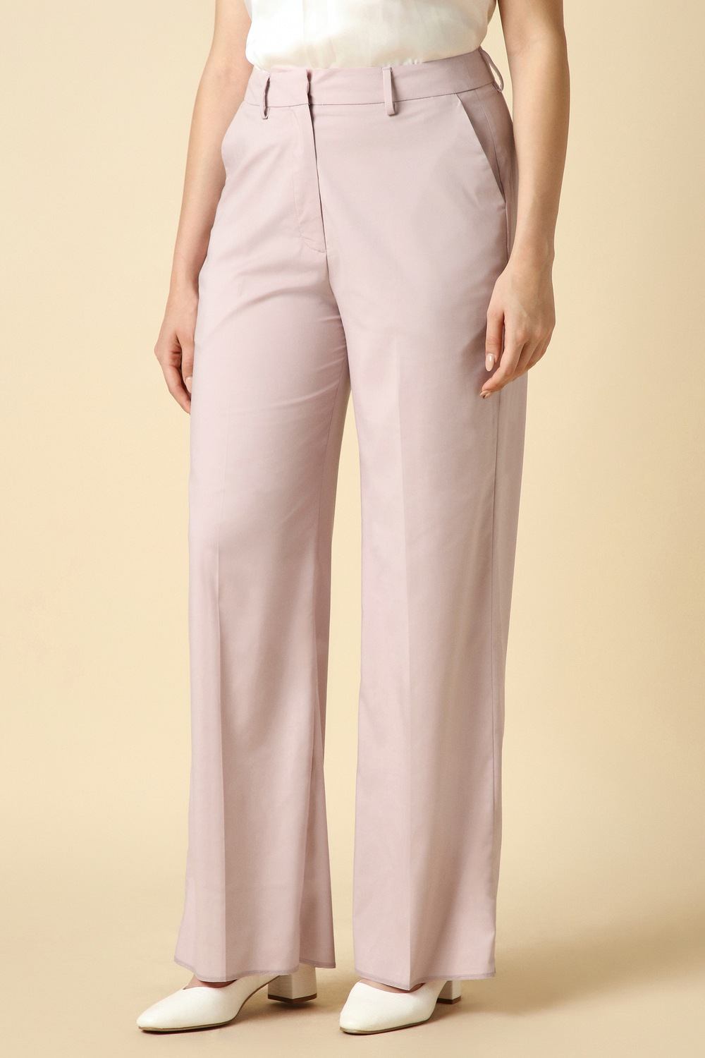 Step into sophistication with these solid pink trousers from Allen Solly, meticulously constructed for formal occasions. The blend of polyester, modal, and spandex offers a flattering fit that moves with you, providing both style and comfort. With a chic silhouette, these trousers effortlessly transition from the office to evening events. Dress them up with a tailored blouse for an elevated look, or keep it professional with a fitted blazer for a polished ensemble.