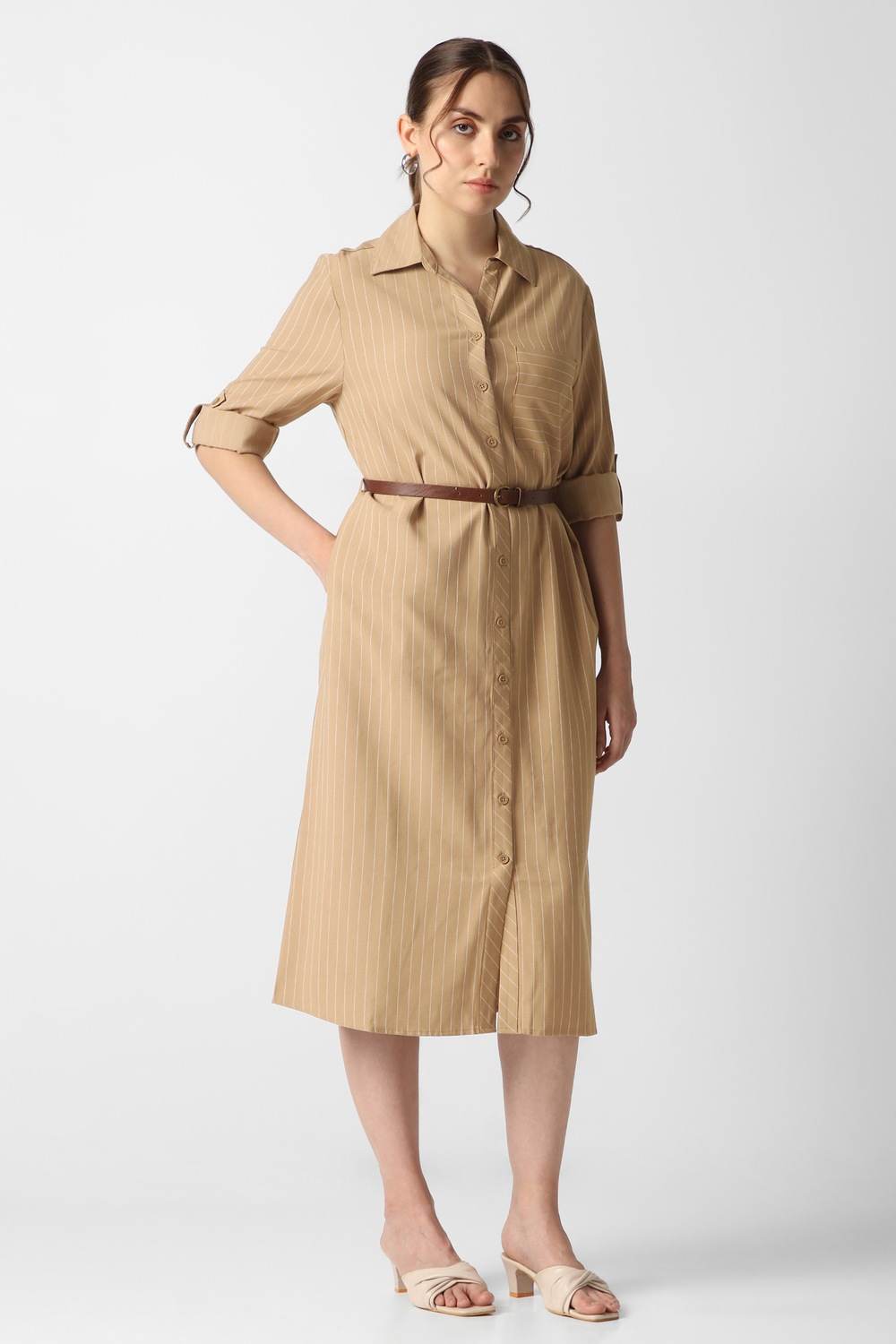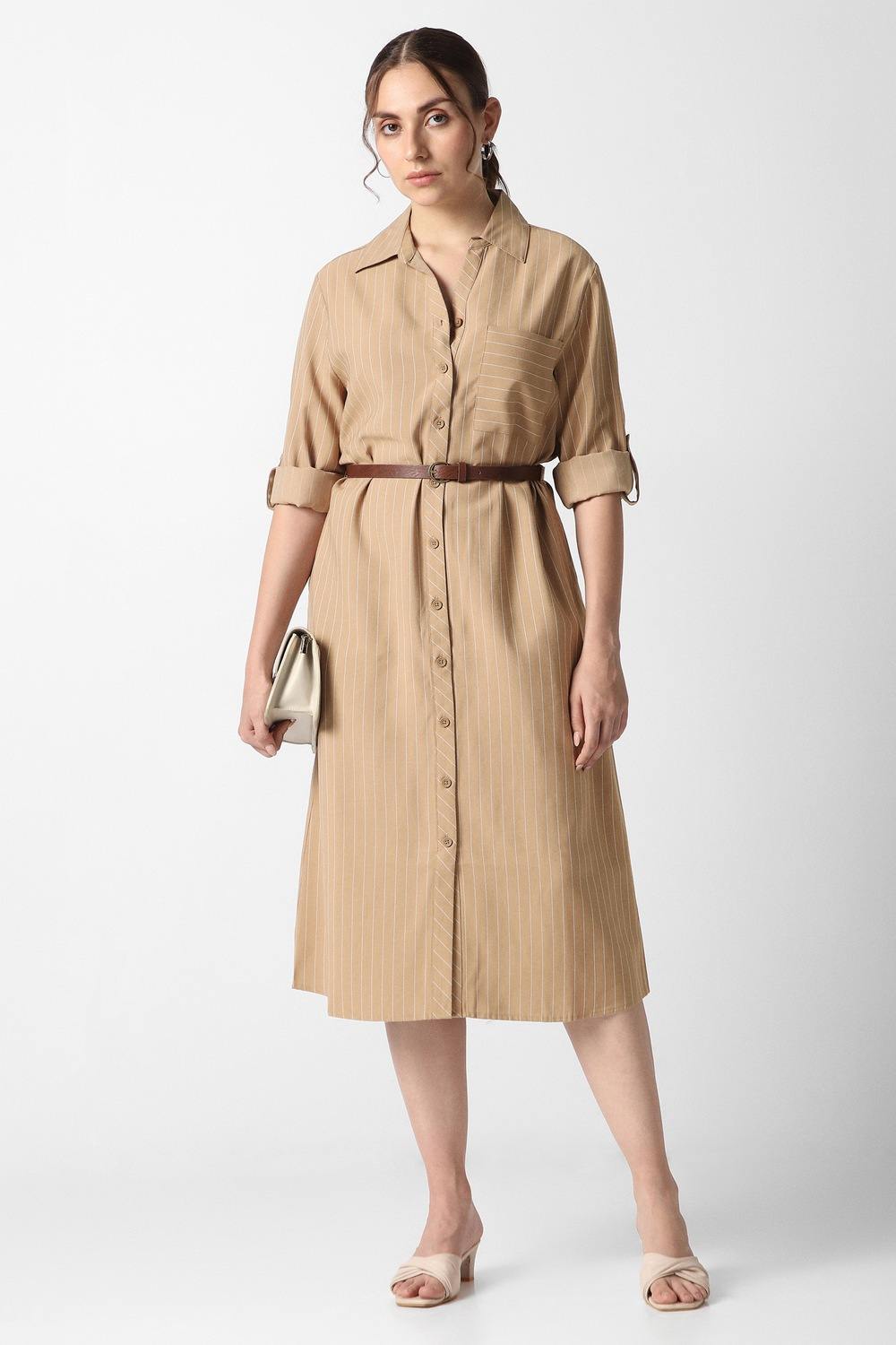 In a rich beige hue, this elegant Van Heusen dress exudes refined charm, featuring a timeless stripe pattern that adds depth to any formal occasion. Meticulously constructed from a blend of rayon and polyester, it promises a soft, fluid silhouette that moves gracefully with you. The sophisticated design ensures you radiate confidence at every gathering, embodying a style that seamlessly transitions from day to night. Indulge in this luxurious wardrobe staple.