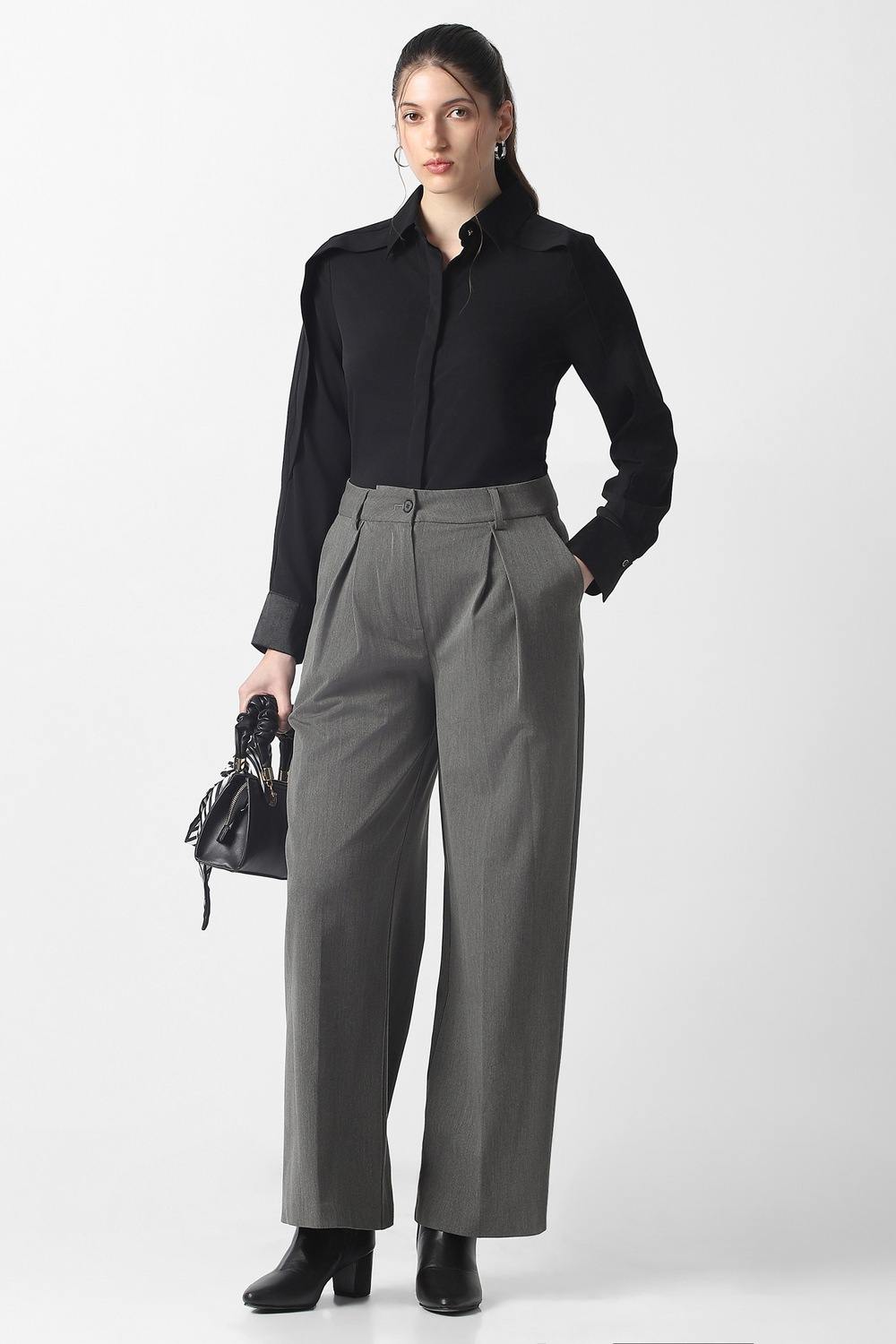 Indulge in the unmatched quality of these grey trousers from Van Heusen, designed for the modern woman. Meticulously constructed from premium polyester, they offer durable comfort and timeless style, perfect for formal outings. The solid hue allows for easy coordination with various tops, enhancing every ensemble. Experience the confidence of a classic fit that transitions effortlessly from day to night, making these trousers an essential addition to your collection.