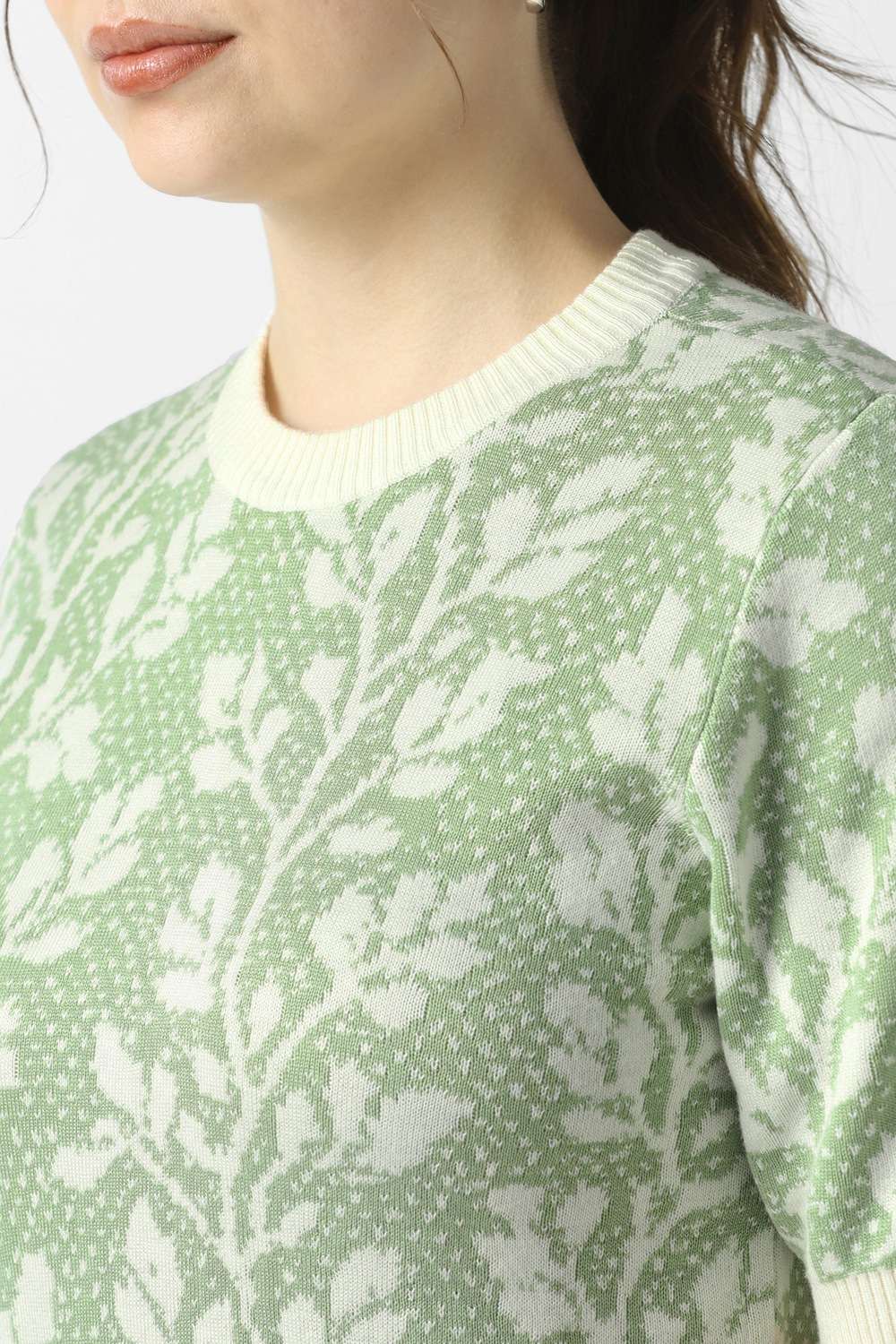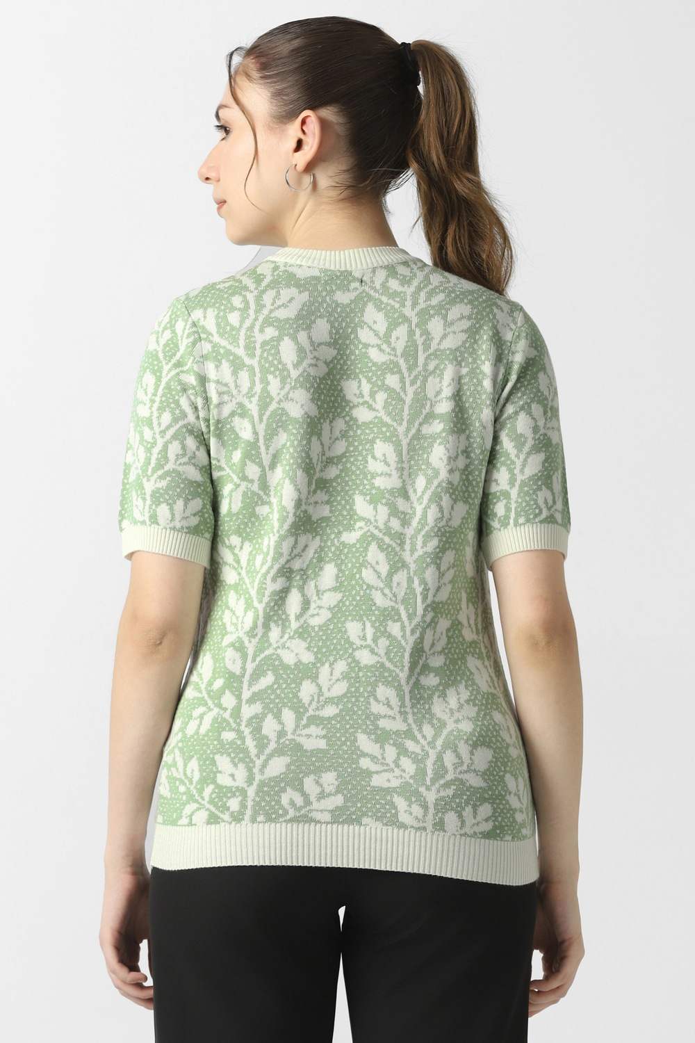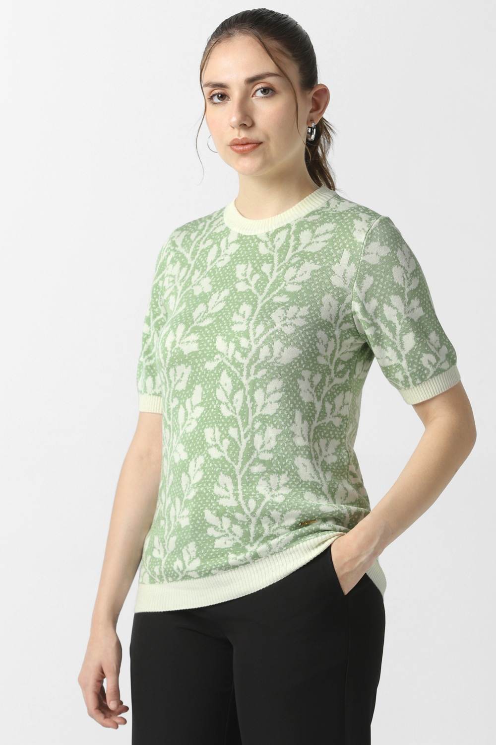 Adorn yourself in the captivating elegance of this Van Heusen green printed top, exquisitely made from a luxurious blend of viscose and nylon. Its round neck and tailored fit make it a sophisticated choice for formal occasions, allowing for seamless transition from office to evening allure. The intricate print elevates your ensemble, exuding confidence and charm. Embrace a look that speaks of refined taste and effortless grace, perfect for today's discerning woman.