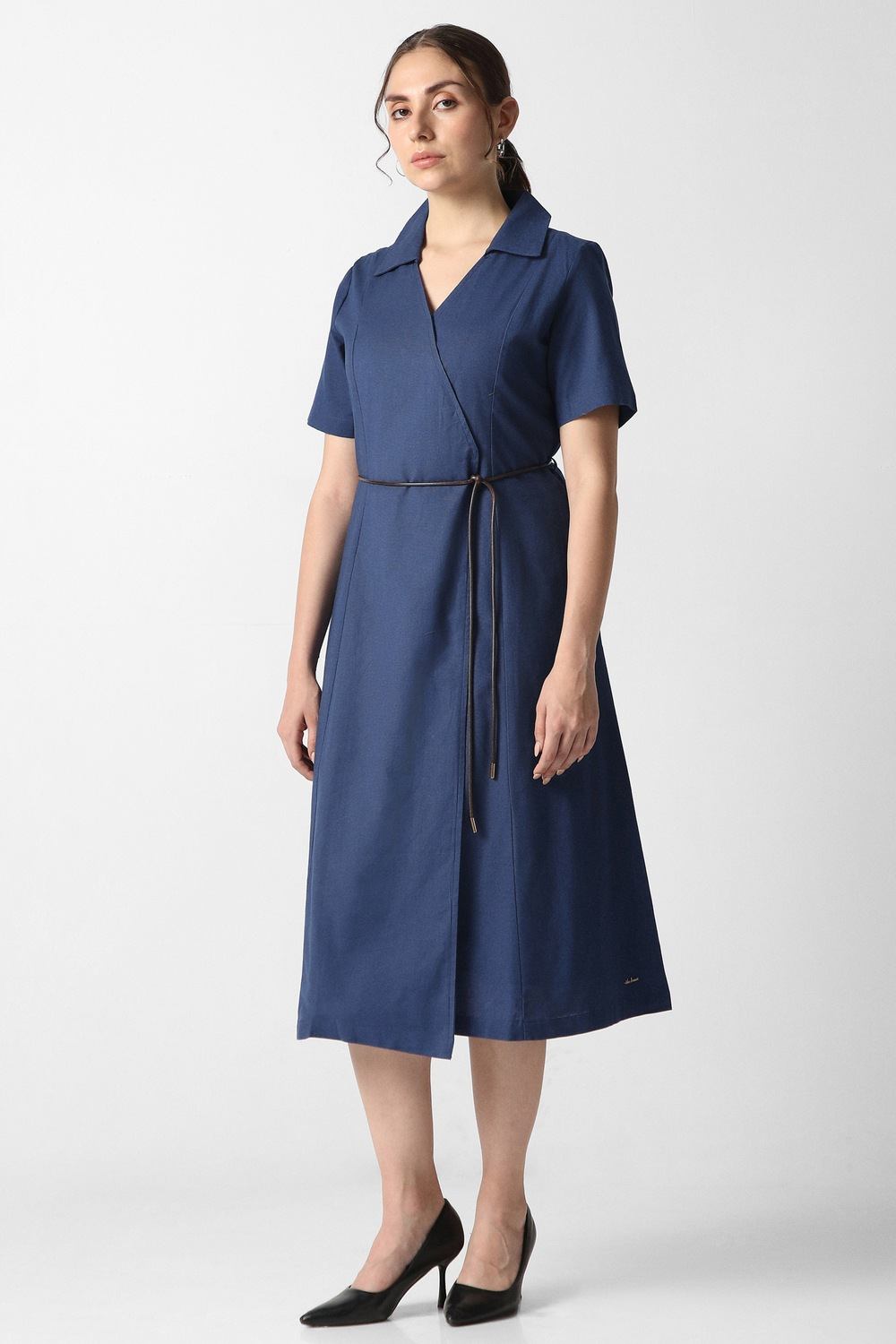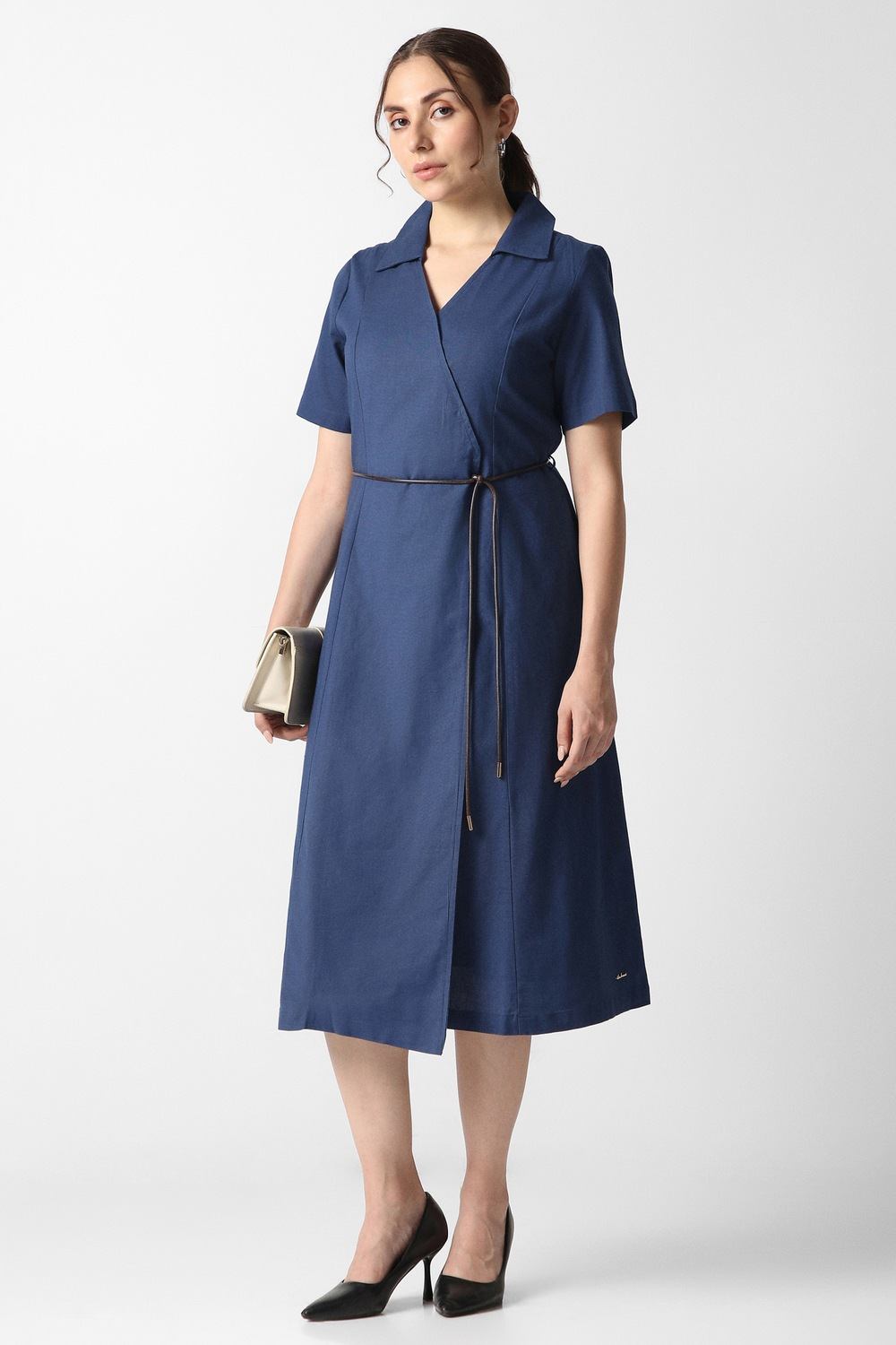 Immerse yourself in the refined charm of this navy dress from Van Heusen, where timeless design meets modern aesthetics. Expertly tailored from a cotton-linen blend, it effortlessly transitions from day to evening, providing both poise and comfort. The solid pattern ensures easy styling versatility, making it an essential piece for formal occasions. Elevate your presence with this sophisticated dress, a seamless addition that enhances your wardrobe with understated elegance.