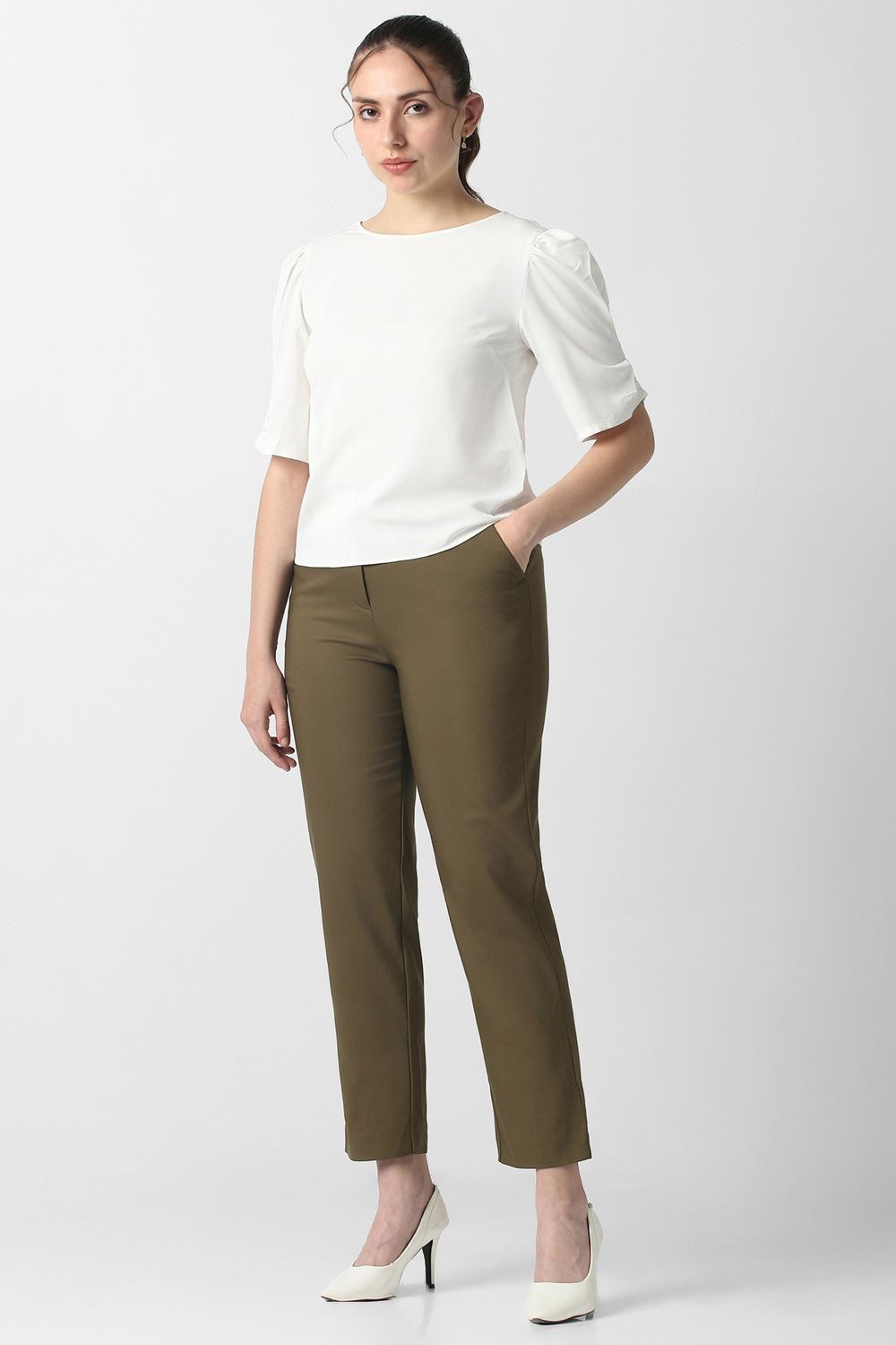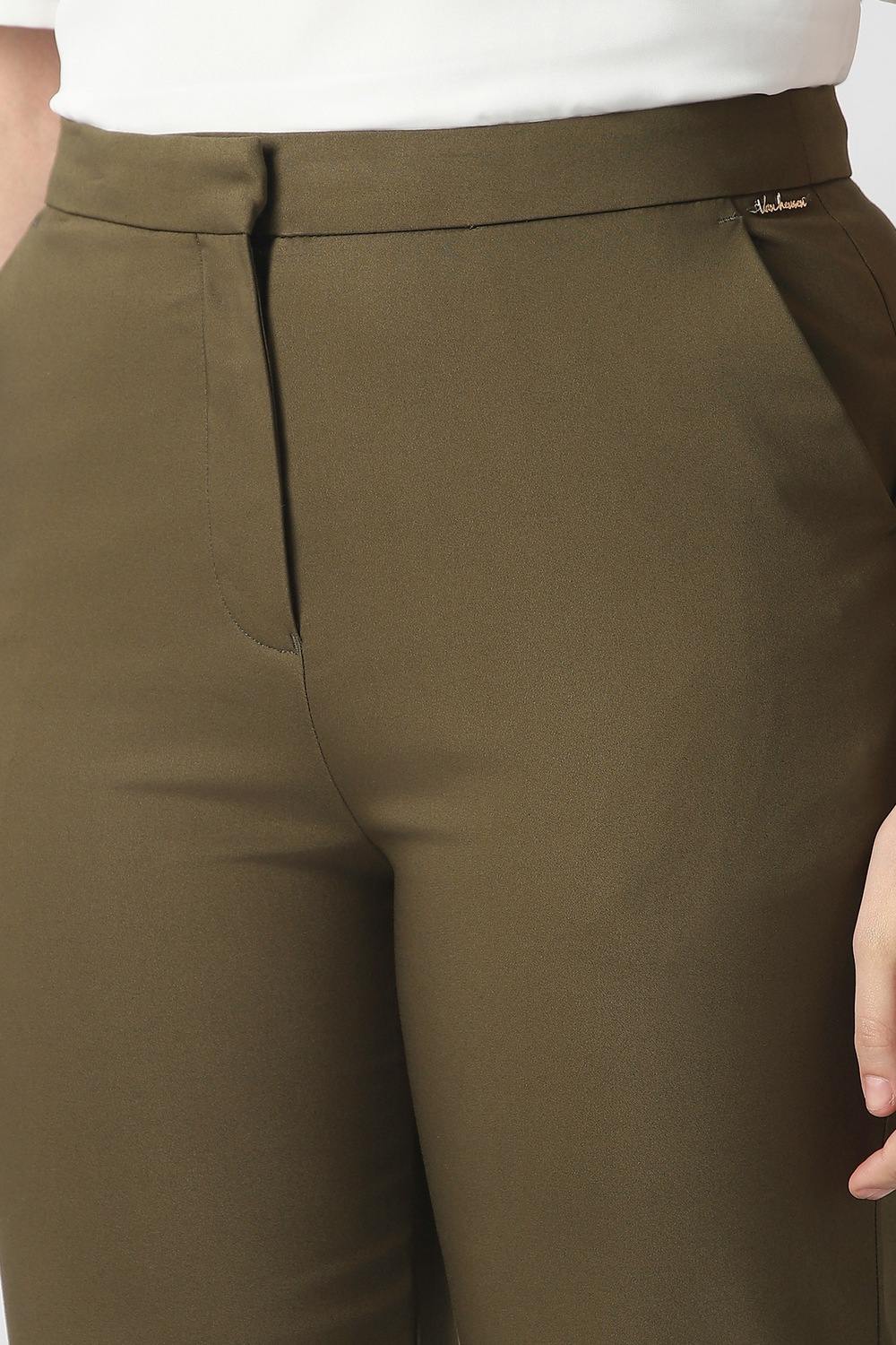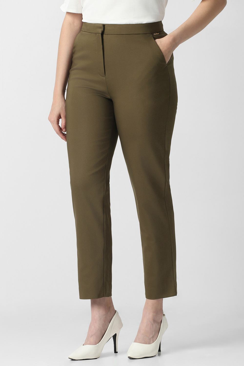 Sophisticatedly designed for the contemporary woman, these olive trousers from Van Heusen promise to enhance your formal ensemble with their solid pattern and perfect blend of cotton, polyester, and spandex. The lightweight fabric ensures comfort throughout the day, while the timeless hue provides versatility for various occasions. Ideal for the boardroom or elegant gatherings, these trousers assert your style with a touch of grace and confidence, making them a must-have addition to your collection.