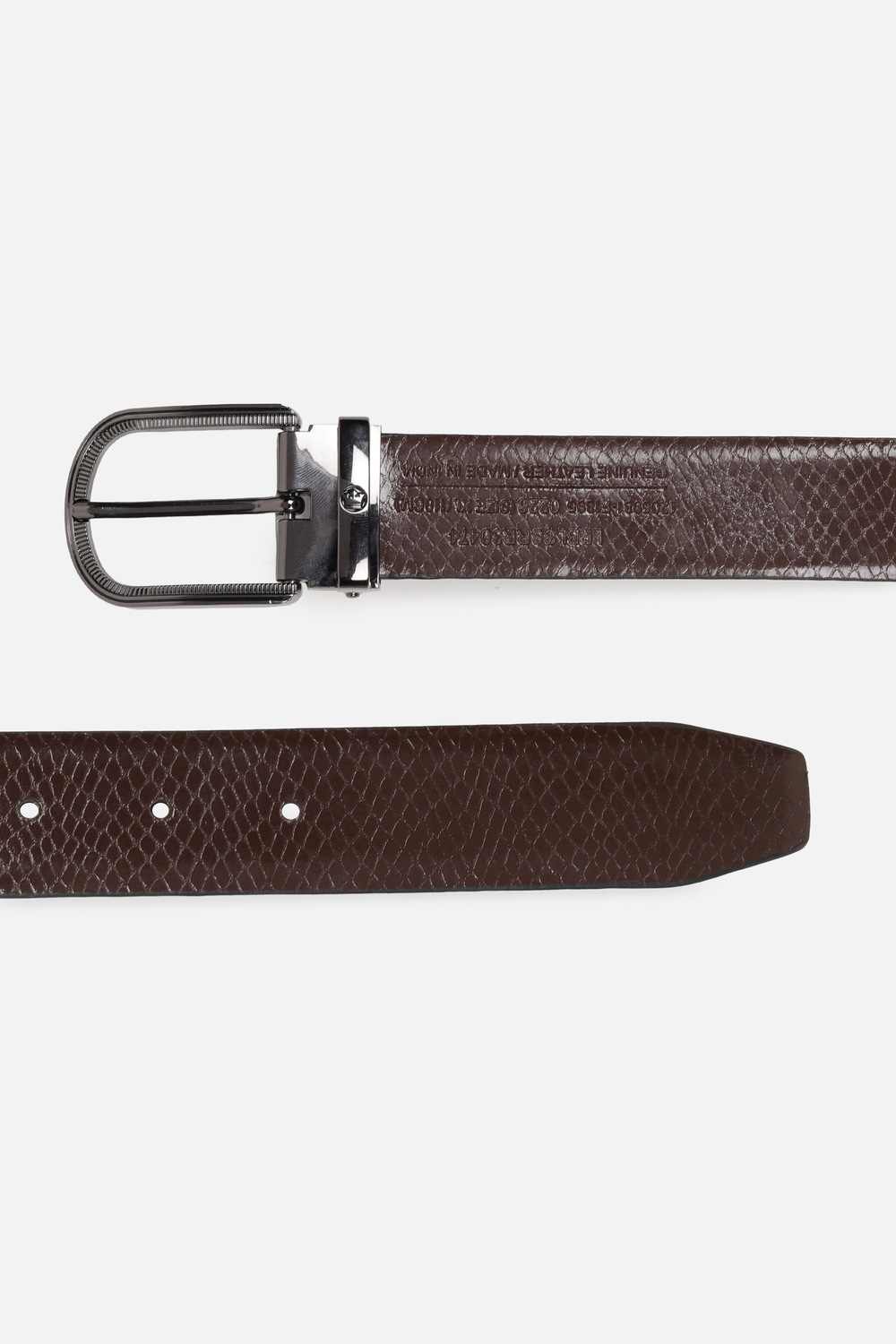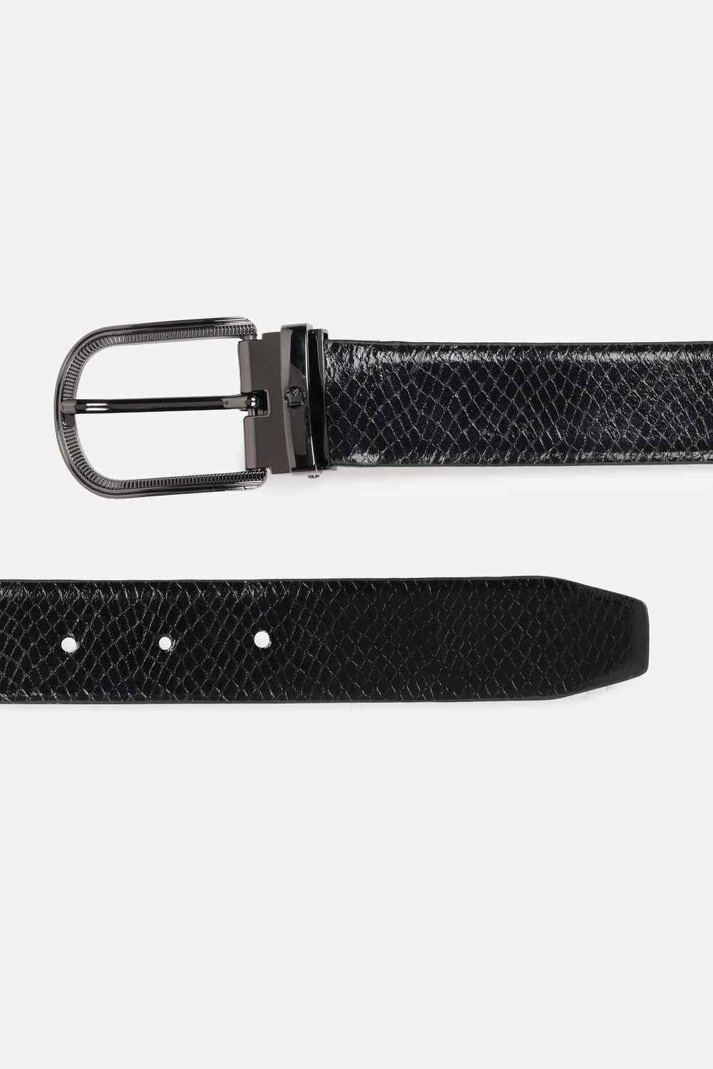 Crafted from exquisite leather, this black belt by Louis Philippe exudes a sophisticated charm, making it an essential accessory for formal occasions. The textured pattern adds a distinctive flair, ensuring your ensemble stands out with subtle elegance. Designed to enhance every tailored look, this belt seamlessly blends practicality with style, providing the perfect finishing touch to your attire. Elevate your aesthetic and make a lasting impression, draped in rich visuals and refined craftsmanship.