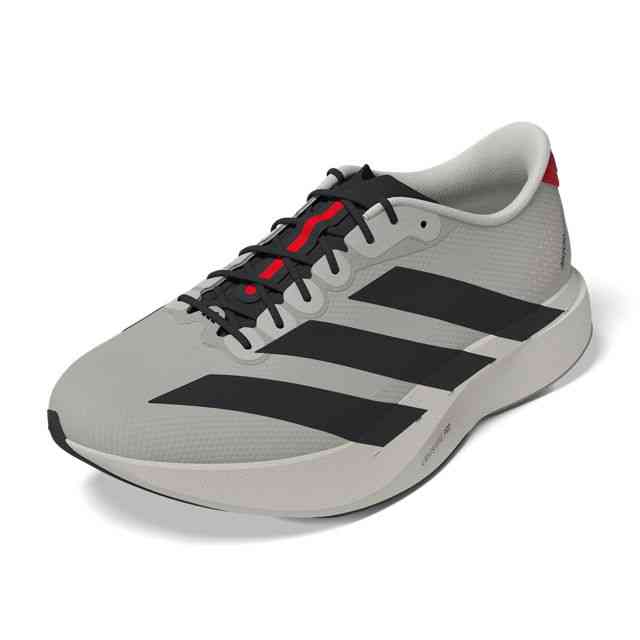 This Adidas shoe is a lightweight and modern sneaker designed for athletic comfort and everyday wear. The upper is constructed from a breathable technical knit, providing a flexible and adaptive fit.