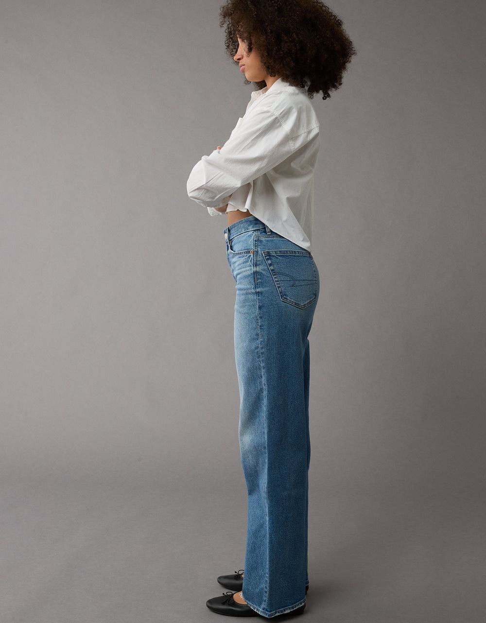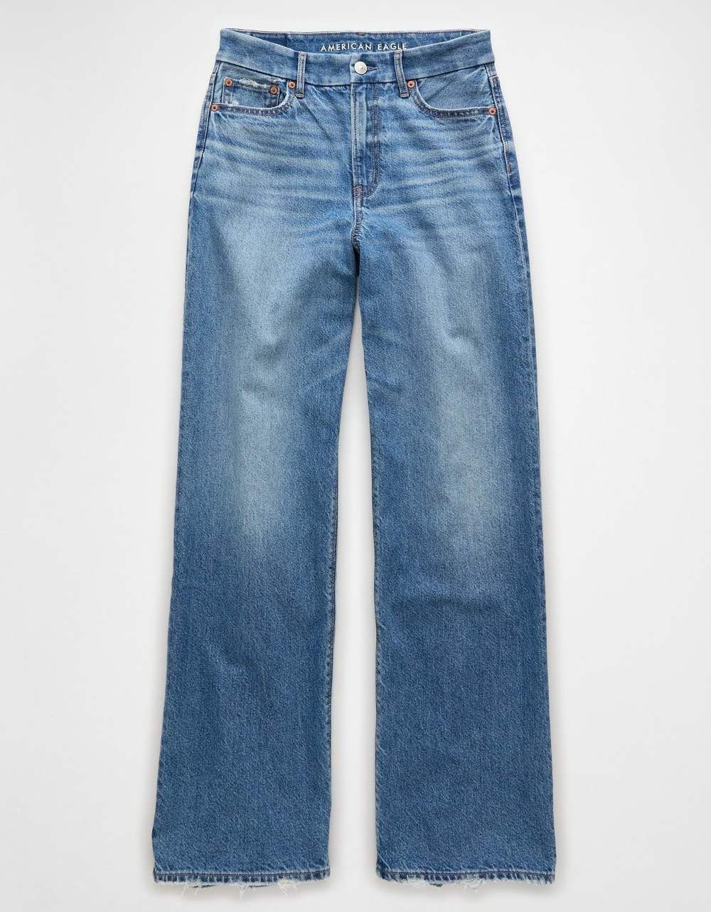 A loose, baggy straight leg jean with extra length to stack at the ankle, in a super high rise.