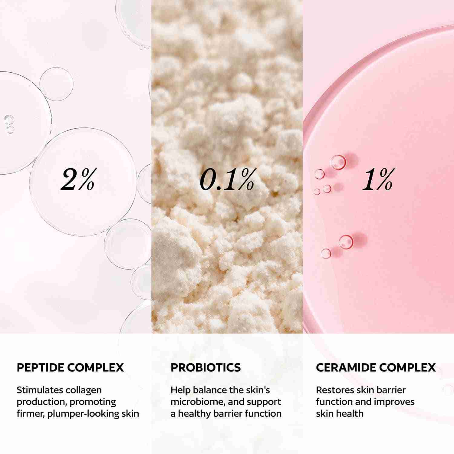 Want to feel like your face is in the clouds? This silky, lightweight formula is just what you need. It sinks into the skin easily, and is packed with nourishing ingredients like probiotics and peptide complex, that reinforce the skin barrier, blur the look of pores and maintain the skin's moisture levels.