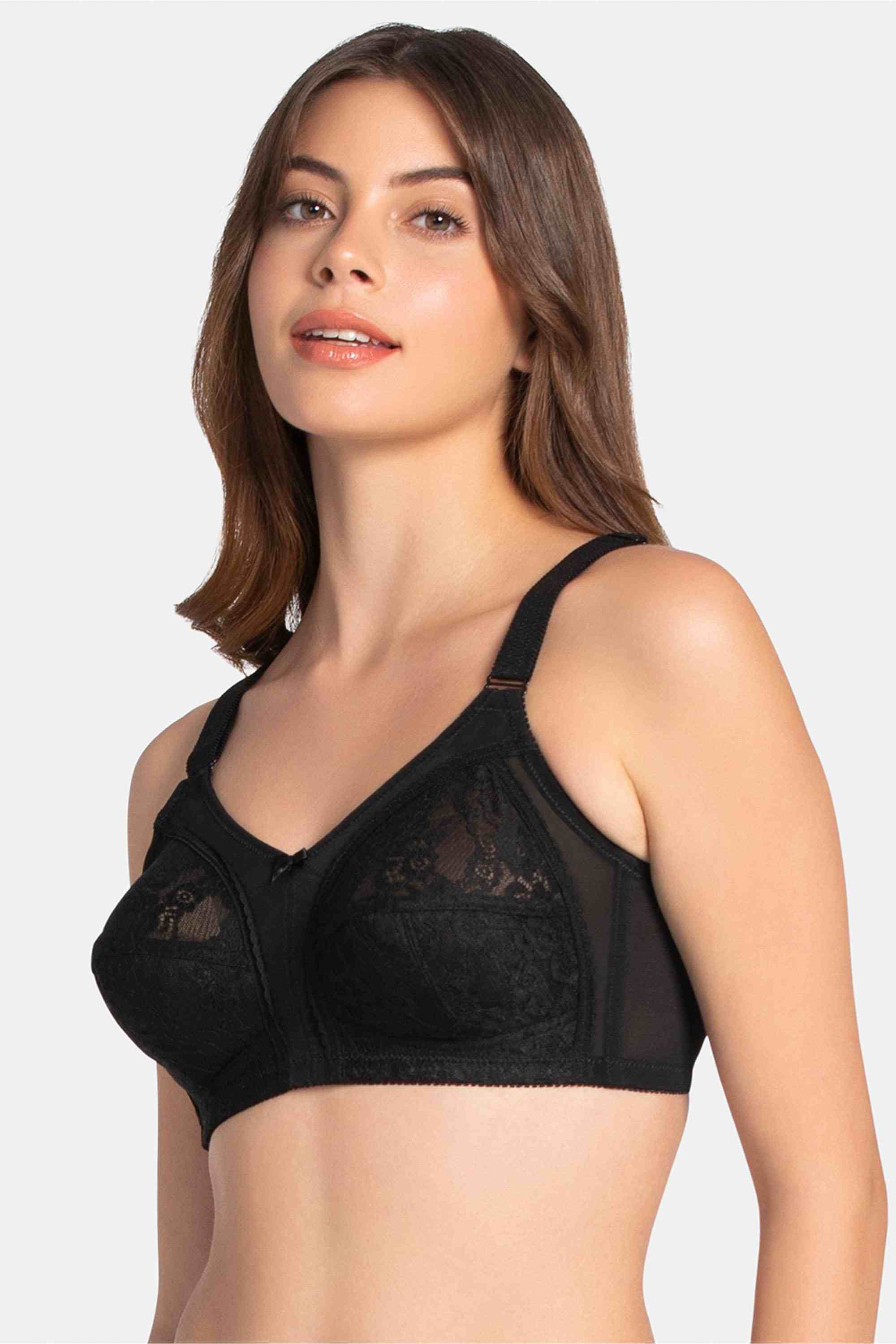 The seamed cups with floral full lace provide for better projection and volume. The power mesh wings and elastics give you the right amount of support so that you always feel confident. The non-wiring and no padding make it suitable for everyday wear as well.