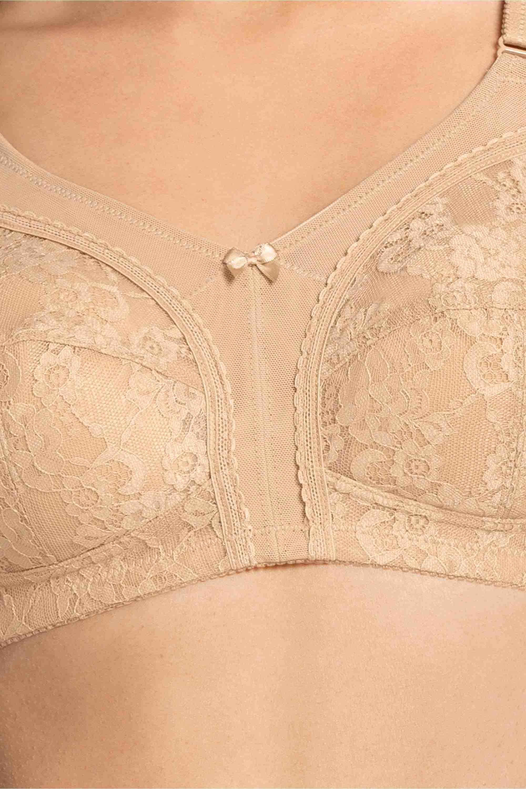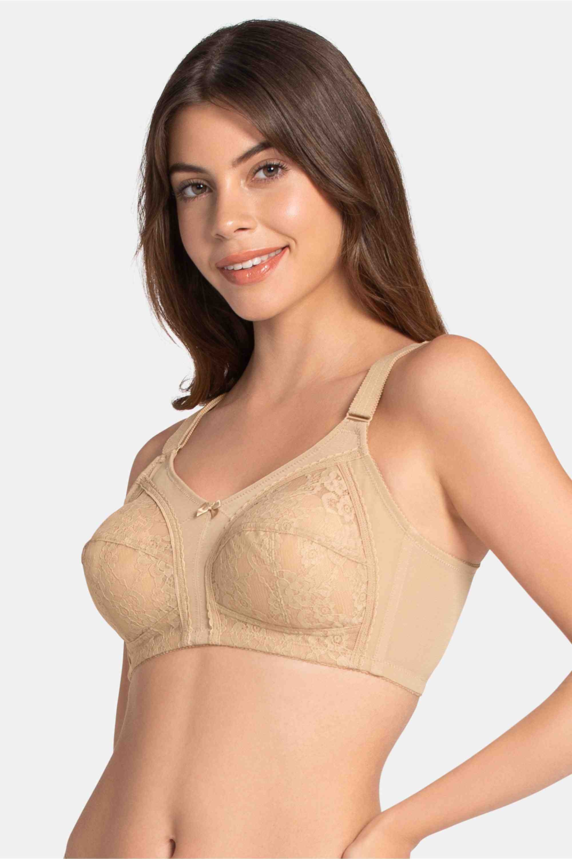 The seamed cups with floral full lace provide for better projection and volume. The power mesh wings and elastics give you the right amount of support so that you always feel confident. The non-wiring and no padding make it suitable for everyday wear as well.