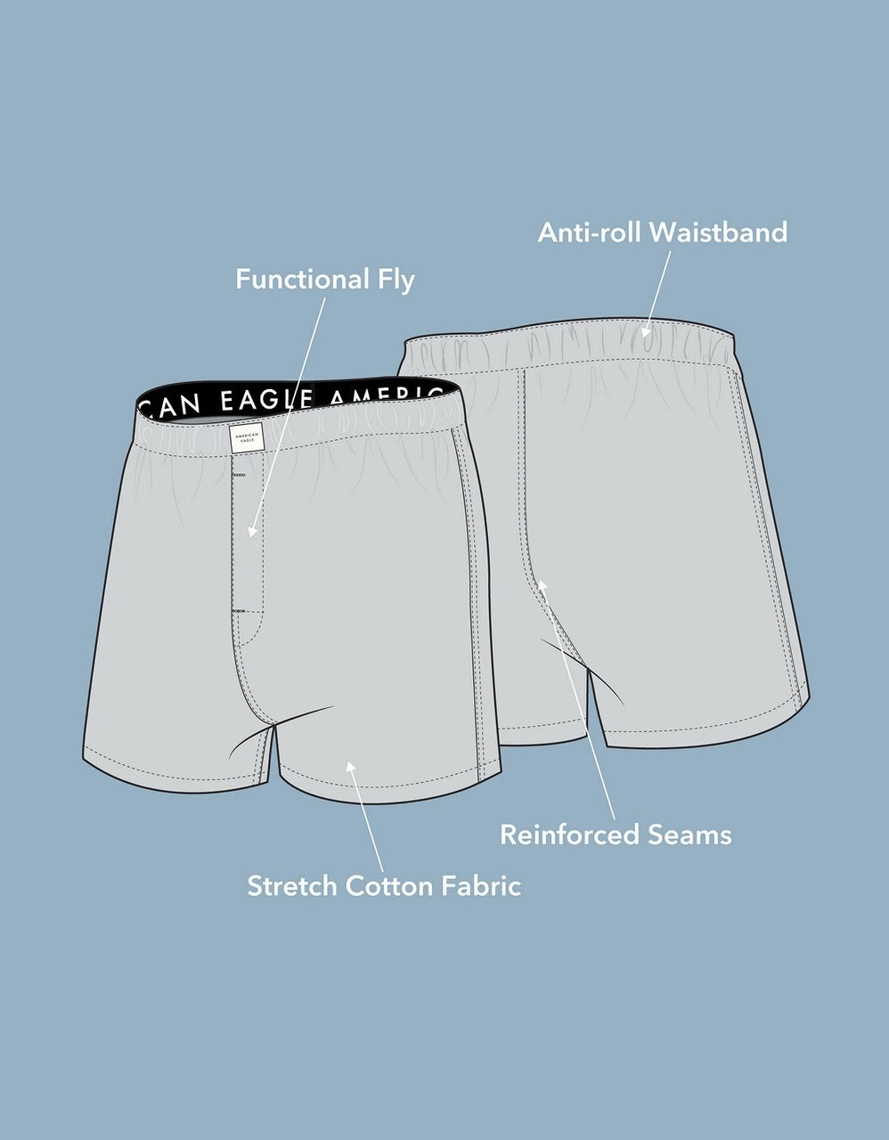 97% Cotton and 3% Elastane,AEO Stretch Boxer Short Multipack
