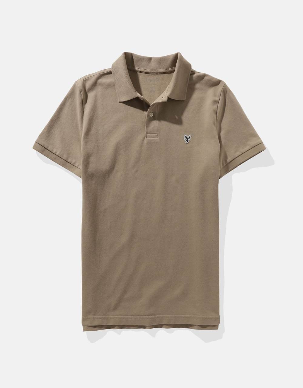 This American Eagle polo shirt offers a refined and casual look, crafted from a soft cotton and elastane blend for a comfortable slim fit. The short sleeves and classic polo neck elevate your style, making it perfect for laid-back occasions. With its versatile beige color, this shirt seamlessly pairs with any bottom, enhancing your everyday wardrobe with effortless sophistication. Embrace a relaxed yet polished vibe with this essential piece.