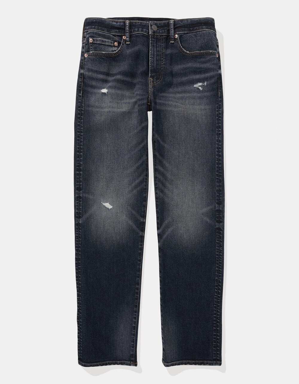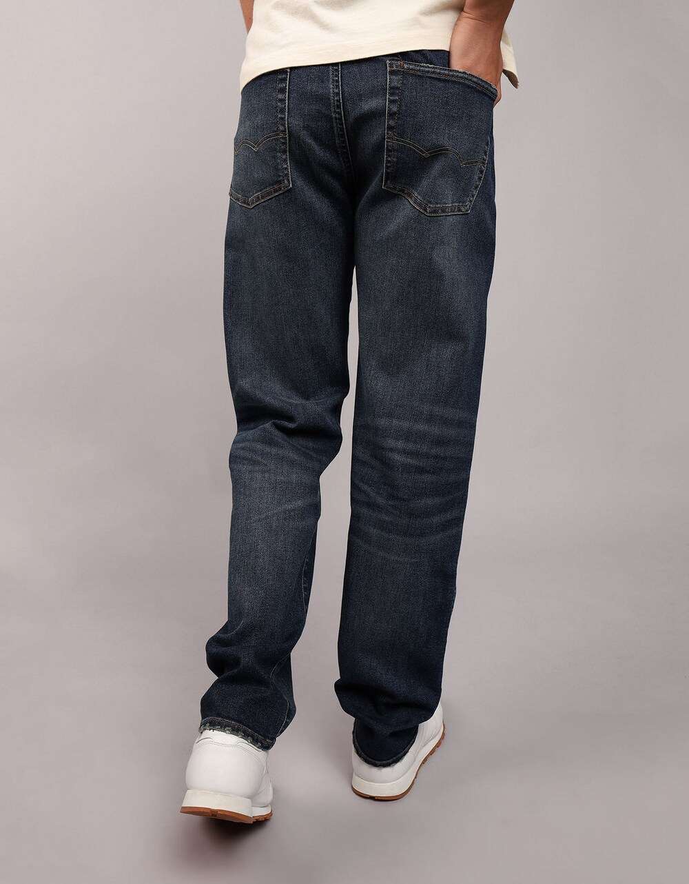 Elevate your casual wardrobe with the American Eagle original straight jeans in a classic navy hue. Crafted from a blend of cotton, recycled cotton, polyester, lyocell, rayon, and elastane, these jeans provide both comfort and style. The dark wash adds a polished touch, making them perfect for everyday wear. Experience the perfect balance of durability and flexibility, designed to fit seamlessly into your lifestyle. Embrace everyday elegance with these must-have jeans.