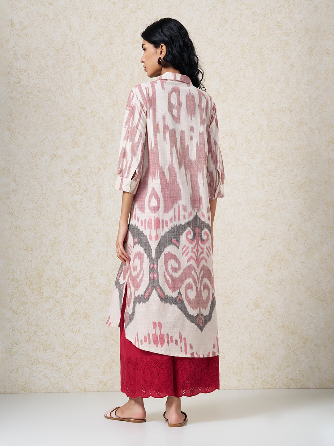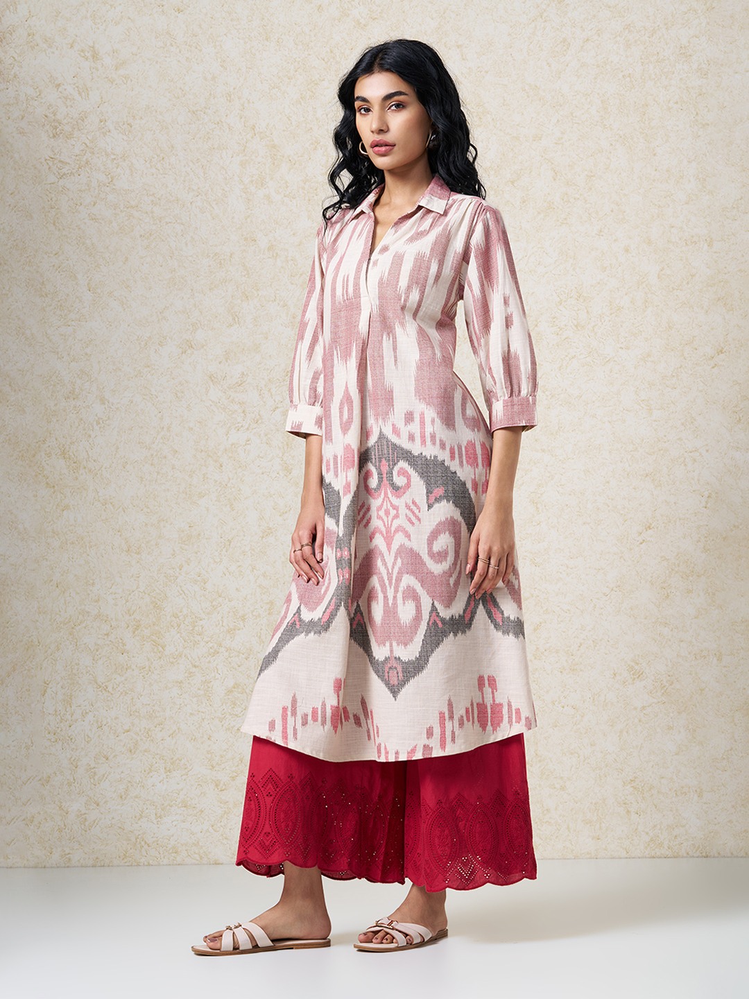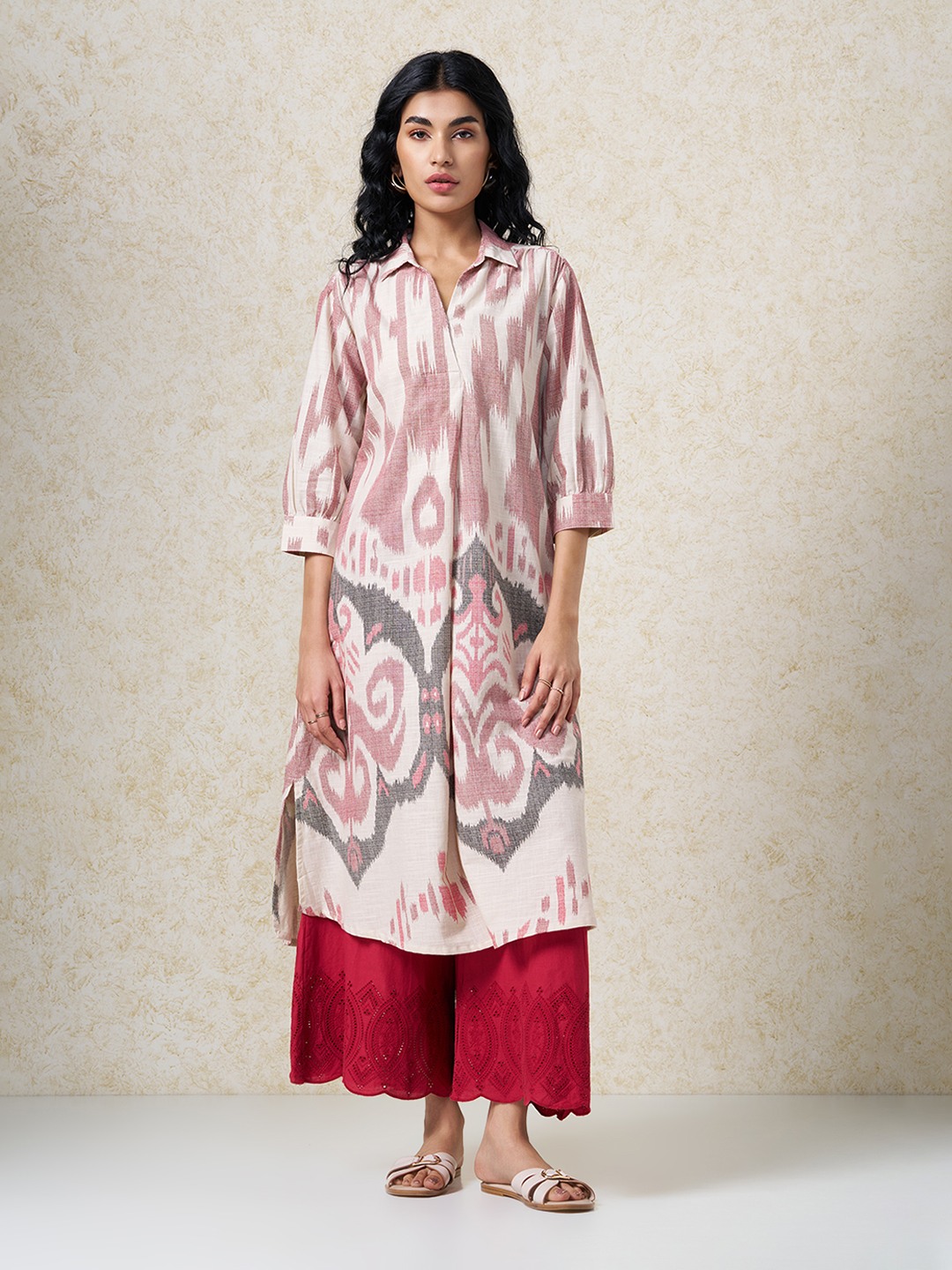 Home/Kurtas/RANGMANCH by Pantaloons/beige ikat-inspired print collared kurta