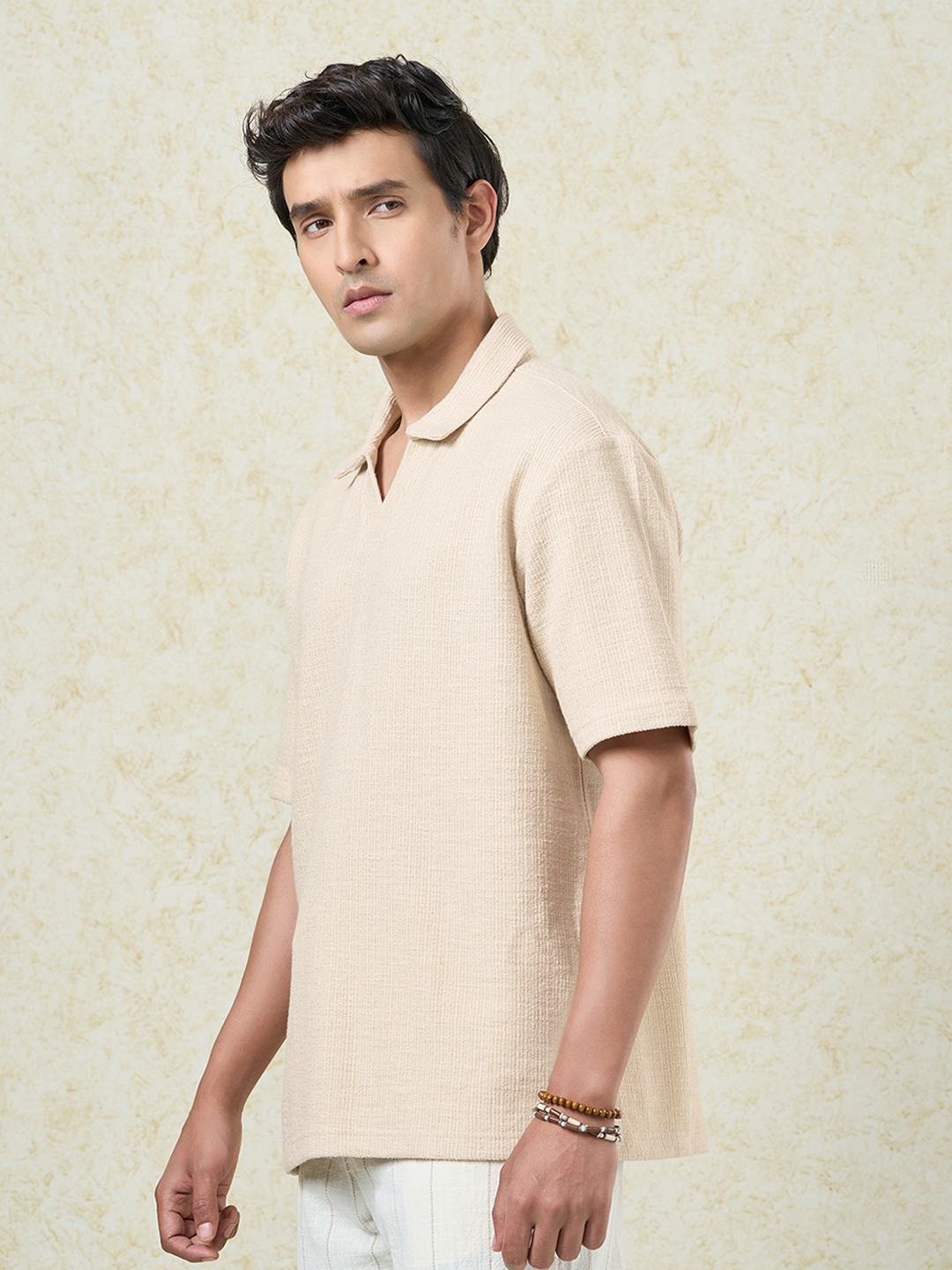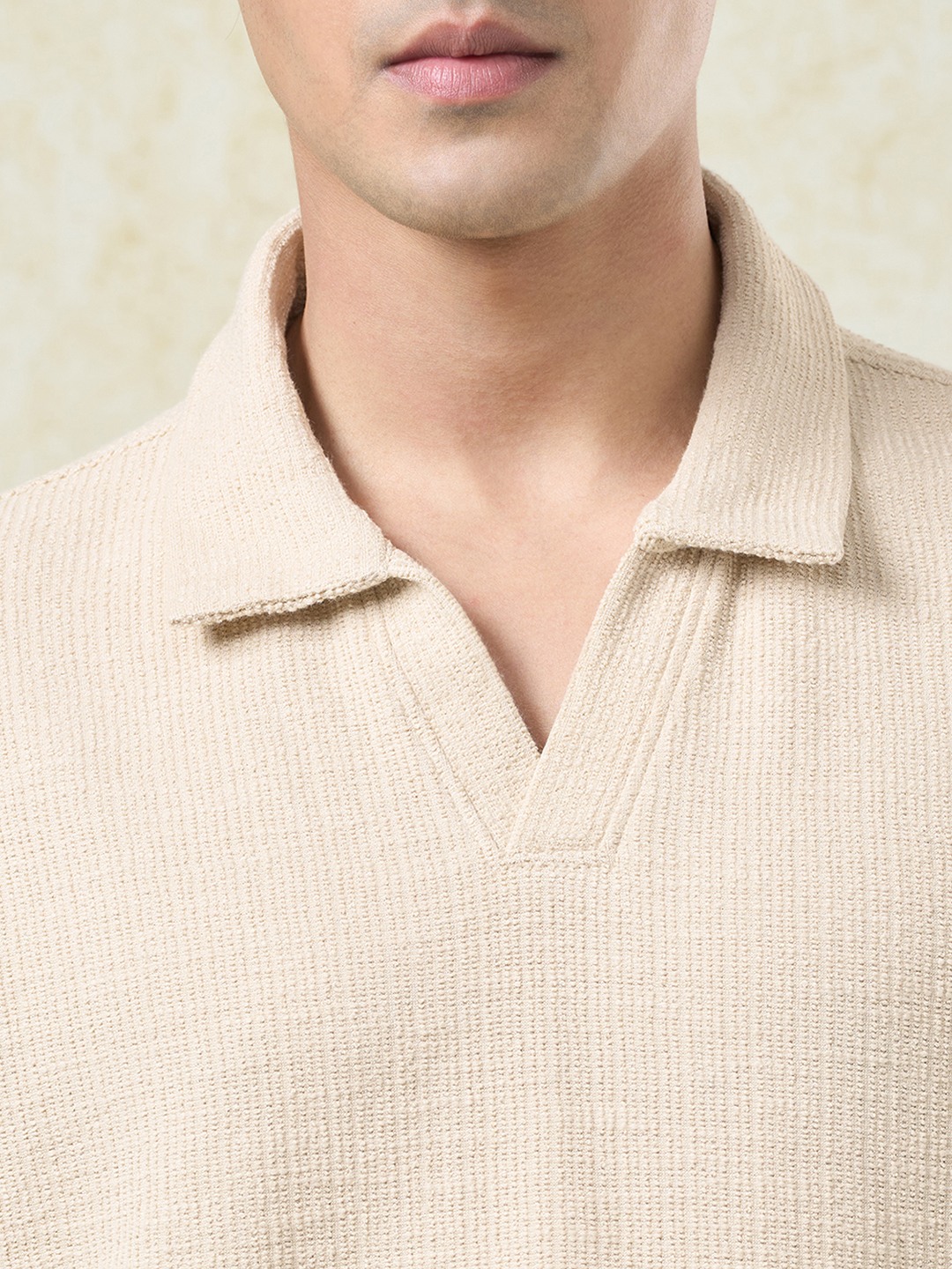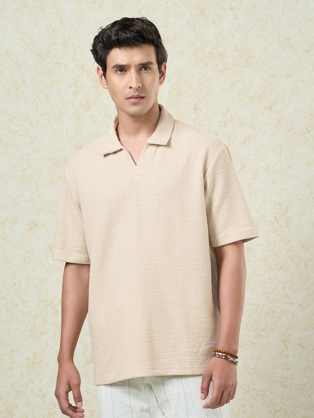 This Johnny polo brings a relaxed yet considered feel to everyday dressing. Cut with a Johnny collar, half sleeves and a relaxed silhouette, it’s finished in a lightly textured knit that adds depth. The soft structure keeps the look polished while staying breathable and easy.
