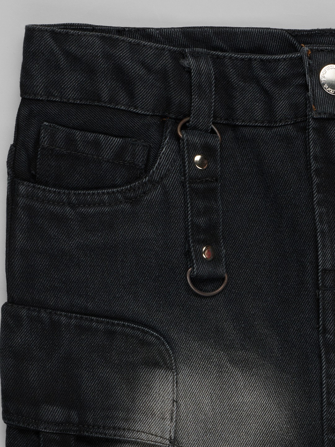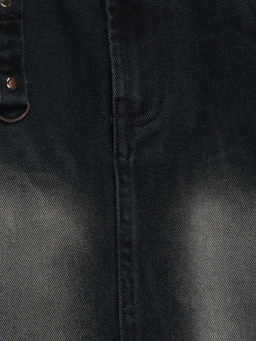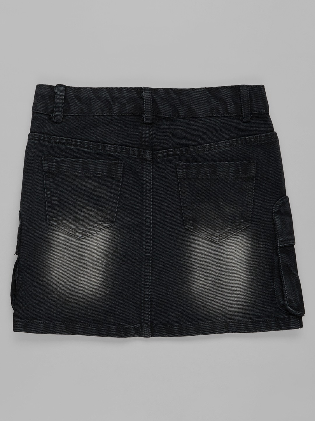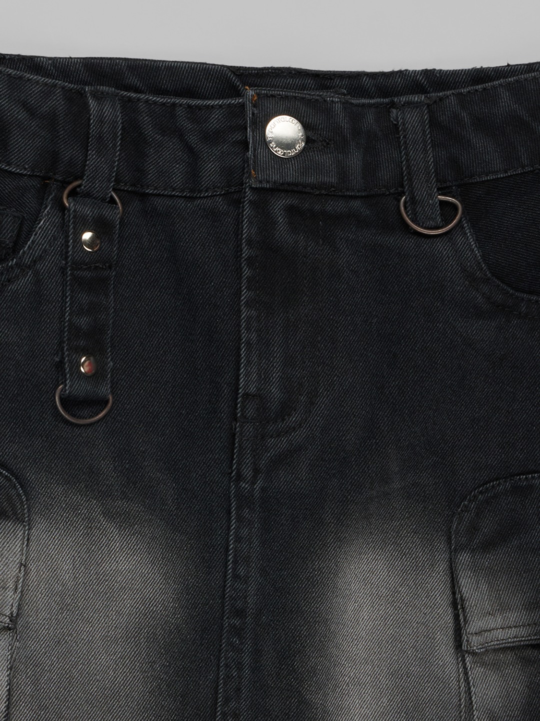 Utility-inspired details give this denim skirt a cool, contemporary edge. Designed in an A-line silhouette, it features a faded wash, front button closure, belt loops, and flap cargo pockets with metal ring and rivet accents for a structured look. The sturdy denim construction keeps it comfortable while holding its shape through active days.