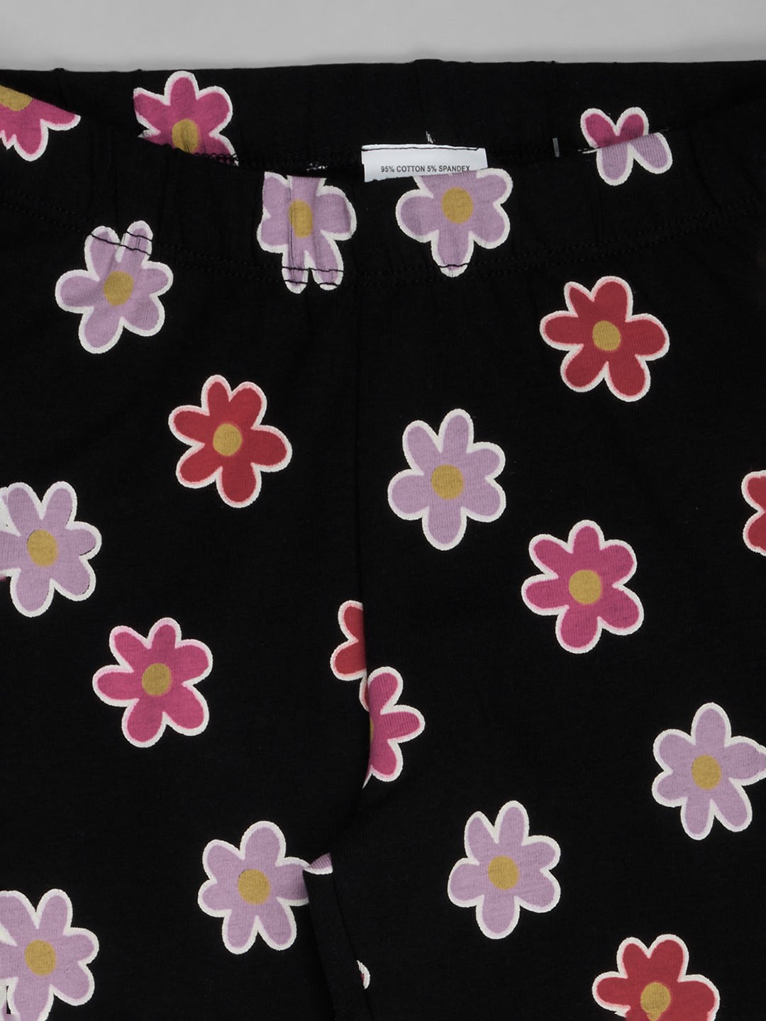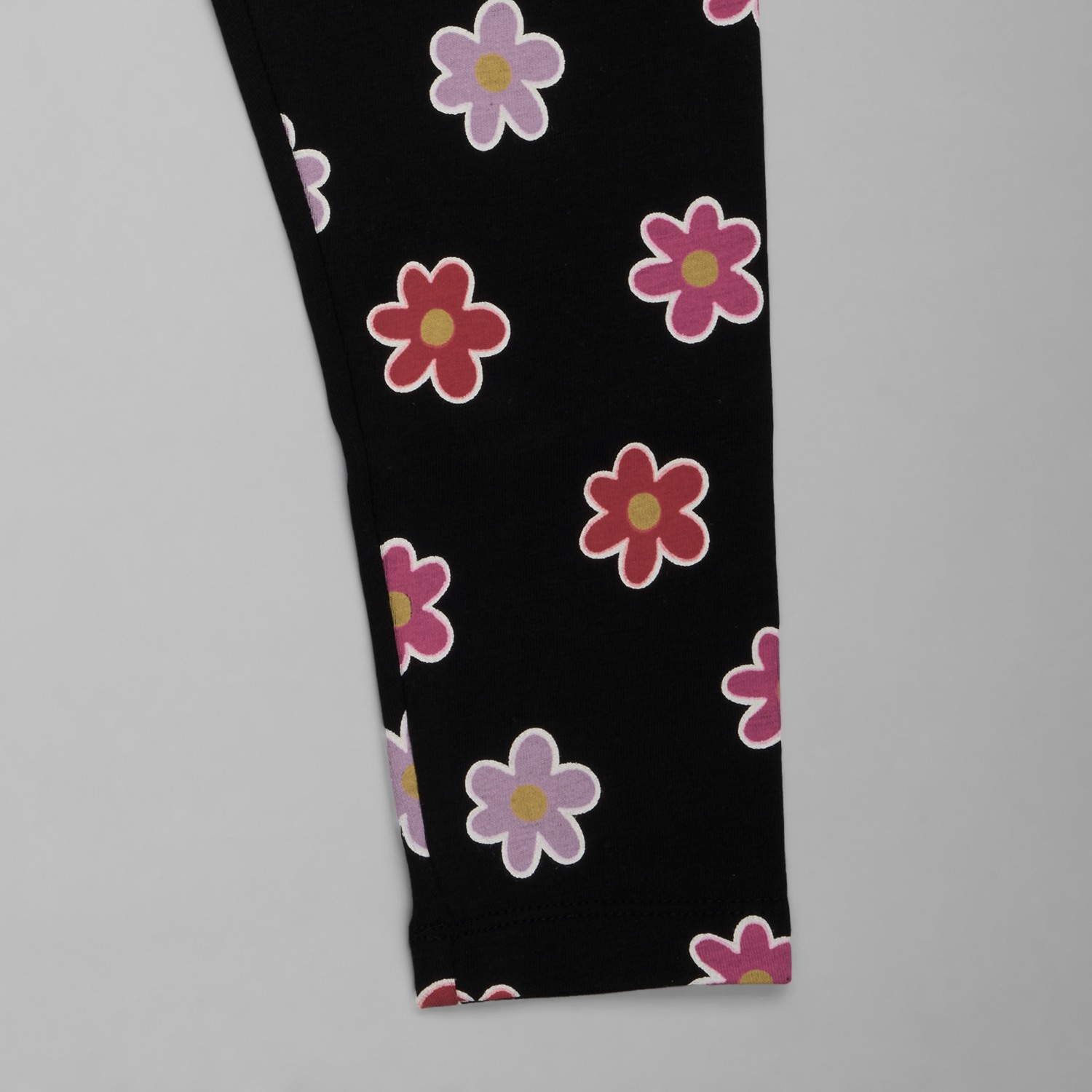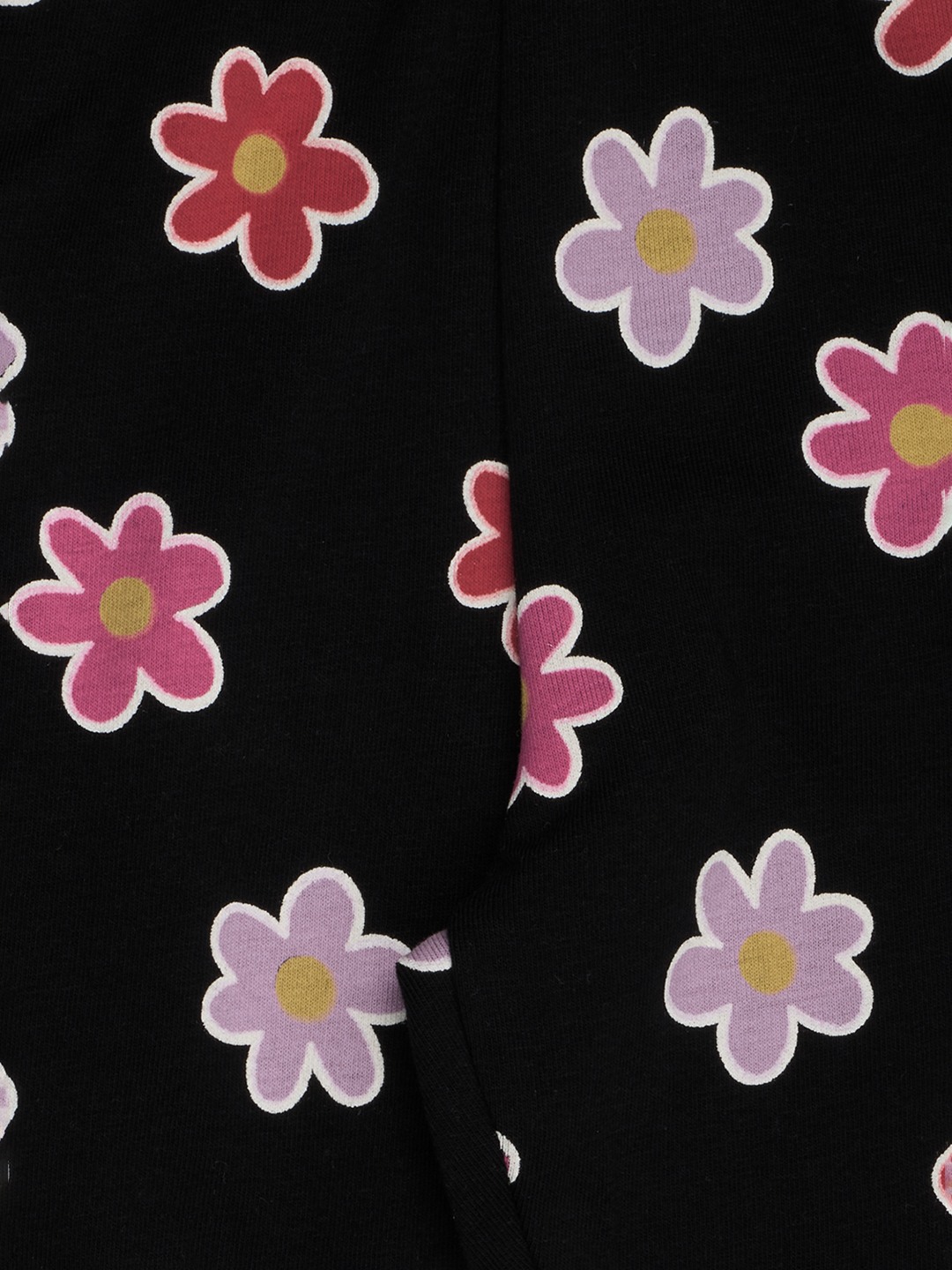 Bright florals bring a playful pop to this everyday essential. Designed with a comfortable elasticated waistband, these leggings feature a soft stretch fit and an all-over floral print that stands out beautifully against the dark base. Easy to move in and gentle on the skin, they’re perfect for sunny days and casual outings.