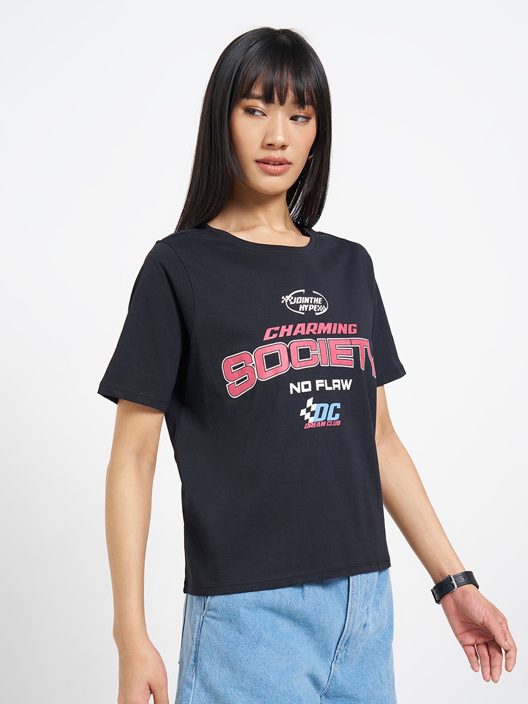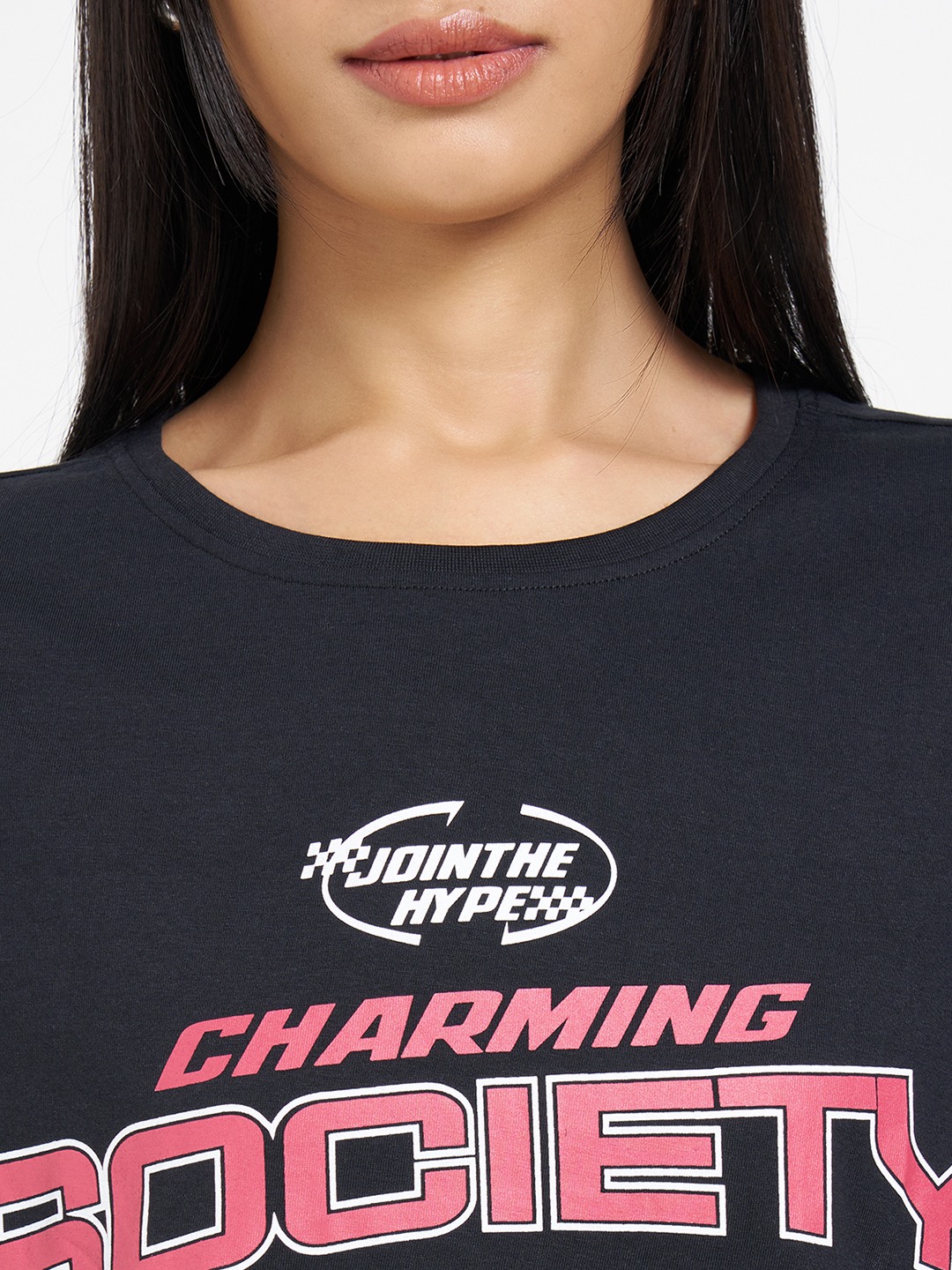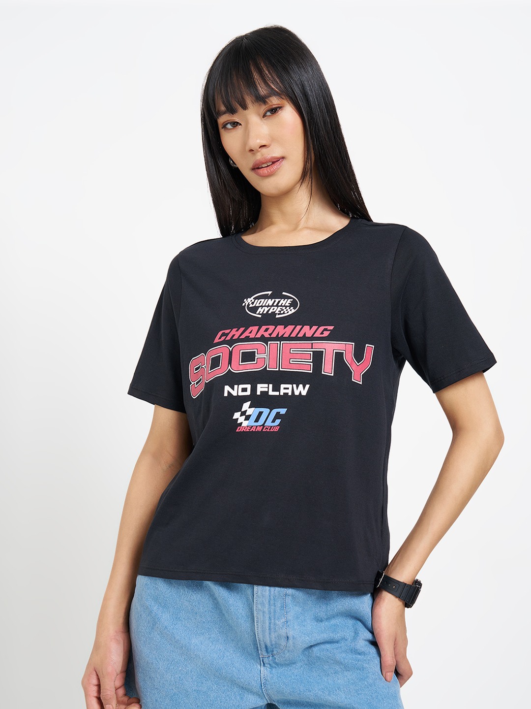 Graphic-led and unapologetically bold. Designed with a classic crew neck and half sleeves, it features a front slogan print with layered typography and a relaxed fit. Soft knit construction offers a breathable, comfortable feel.