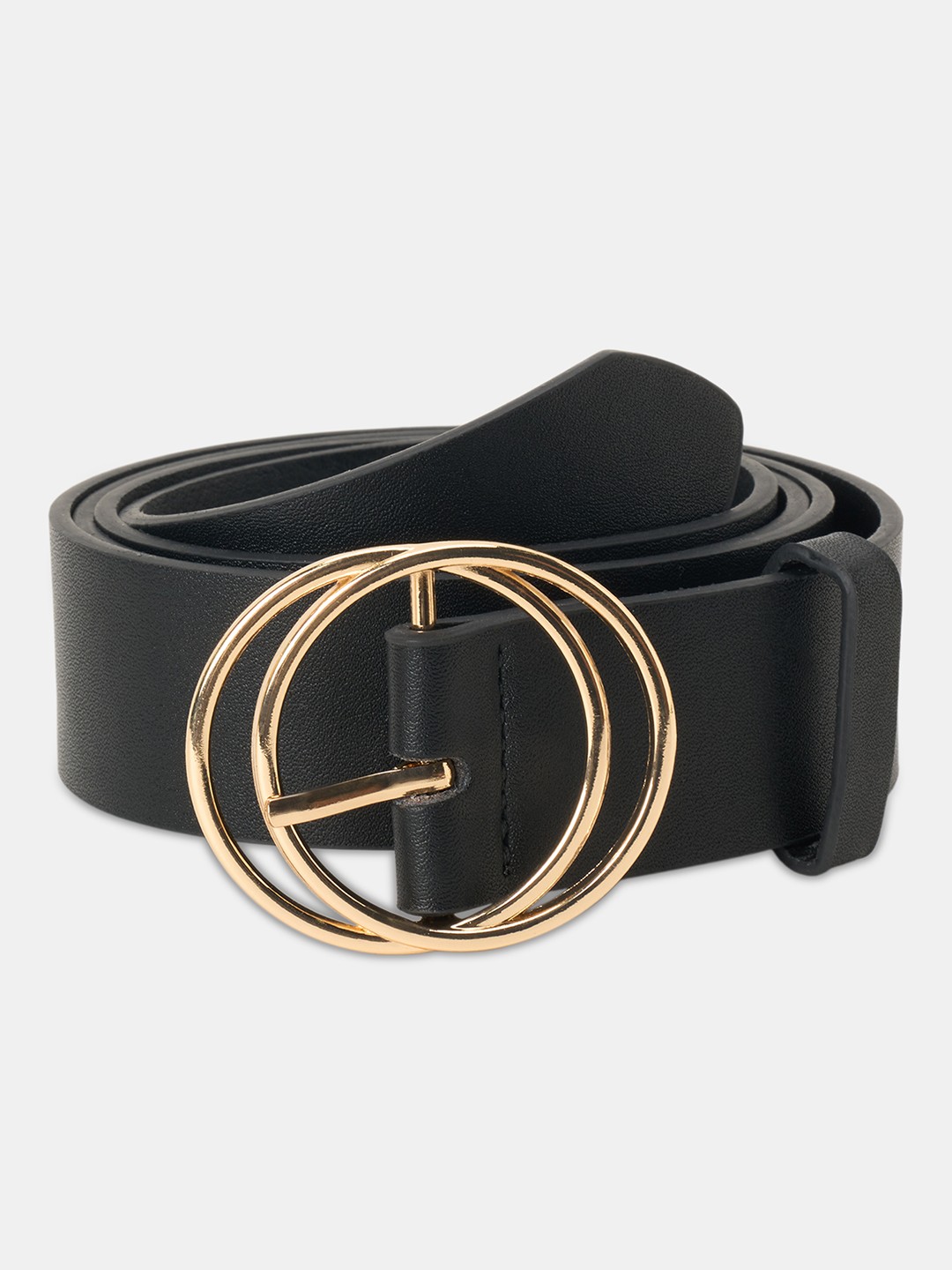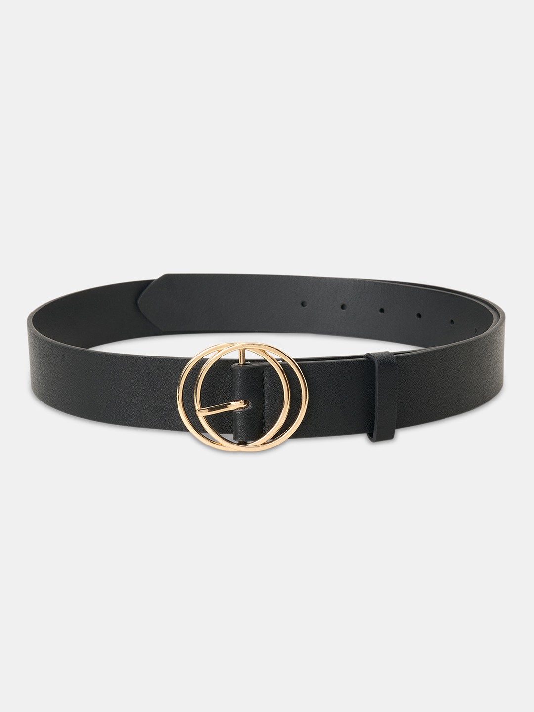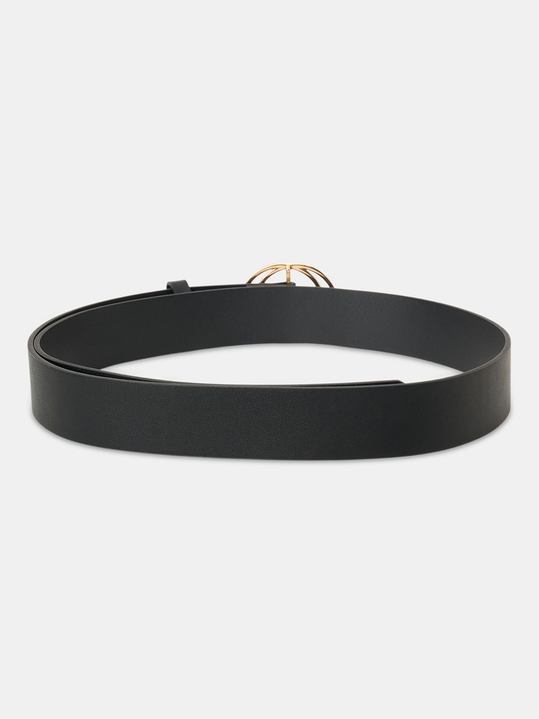 Graphic hardware takes centre stage in this sharp waist piece. The black strap is finished with an interlinked gold buckle, creating a sculptural focal point that adds depth and movement without overwhelming the silhouette. Designed to lie flat and articulate with the body, it refines the waist while preserving clean, uninterrupted lines.