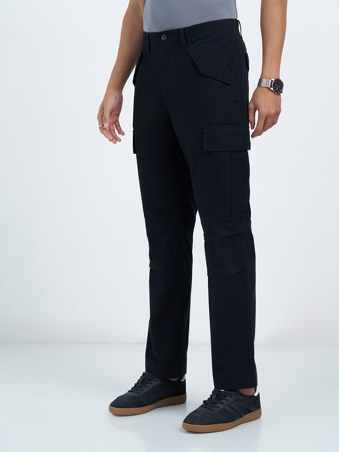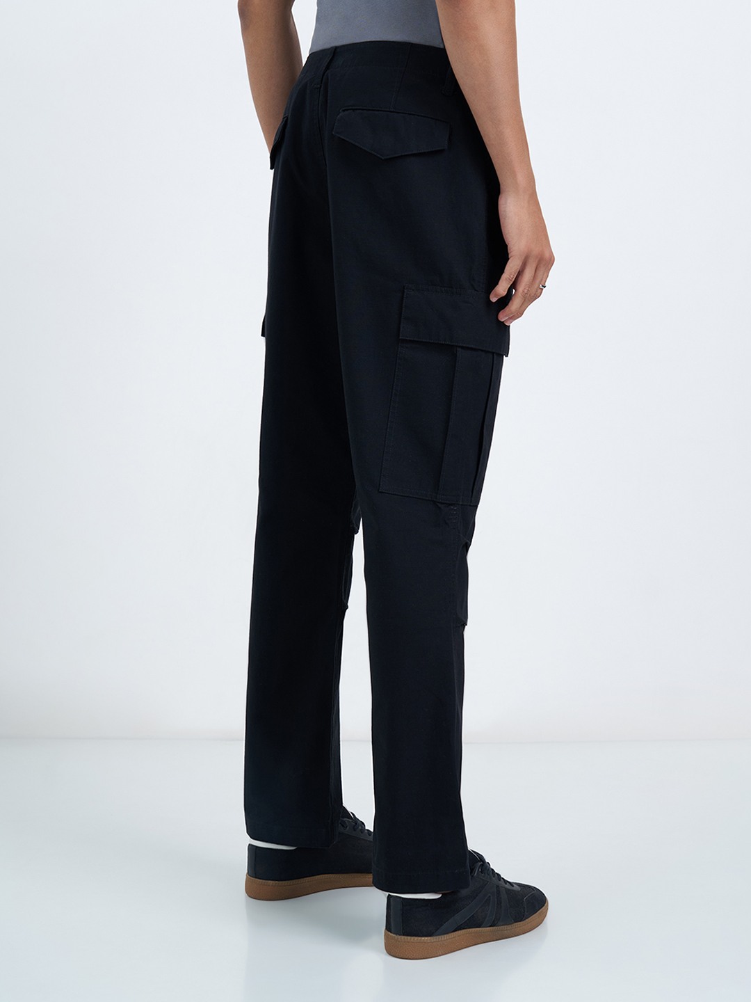 Utility detailing meets a clean, modern silhouette in these refined cargo pants. Designed with a flat front, belt loops, functional cargo pockets and a slim tapered leg, they balance structure with everyday ease. The smooth, structured fabric keeps the look sharp while retaining a contemporary, understated edge.