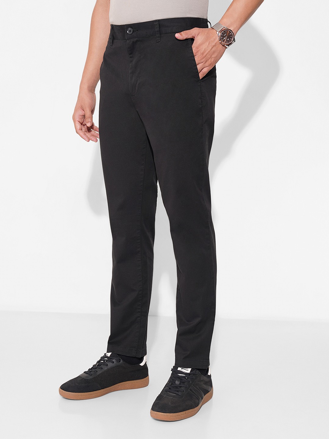 Home/Trousers/Peregrine by Pantaloons/black solid slim chino pants