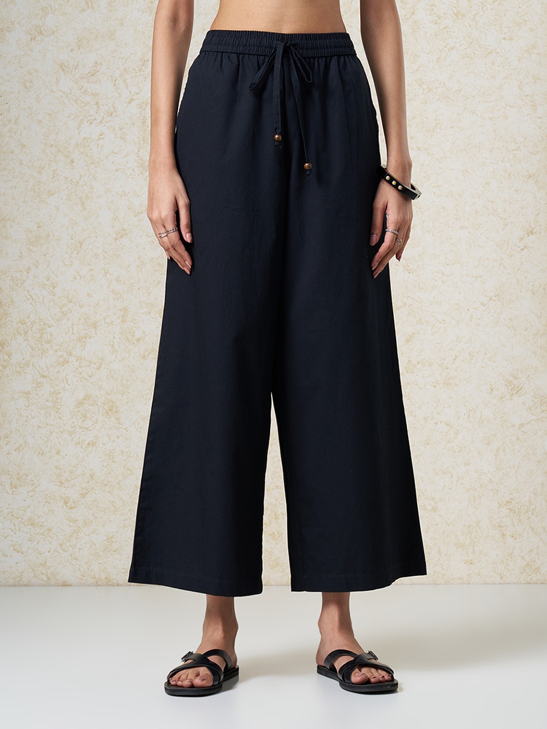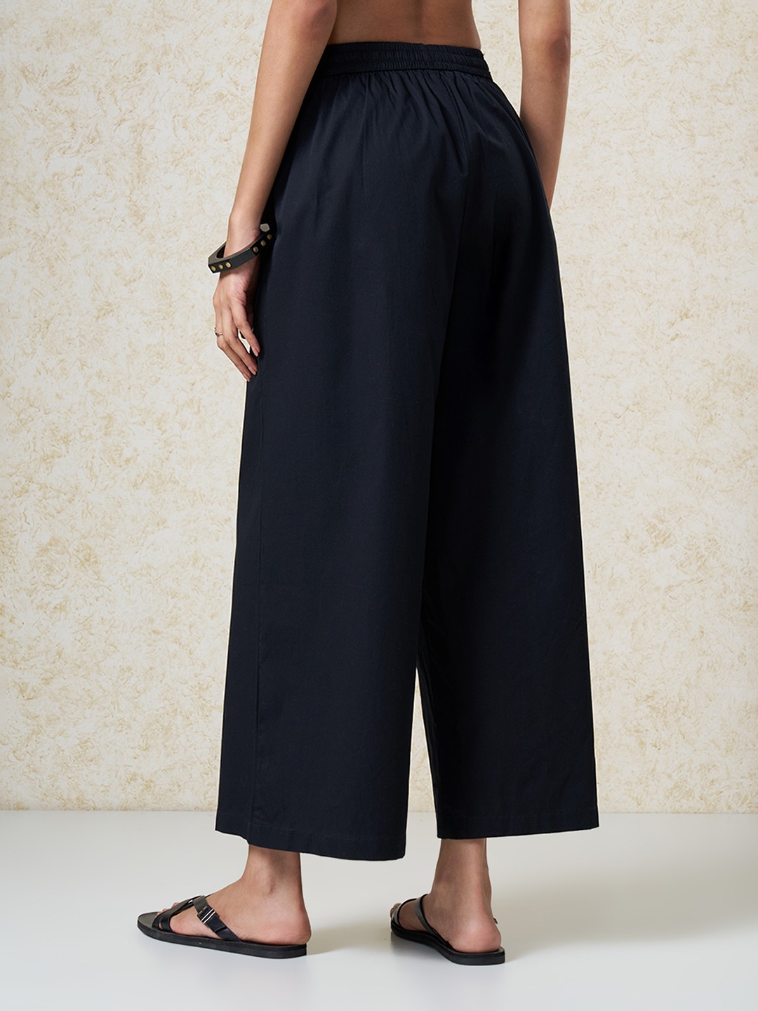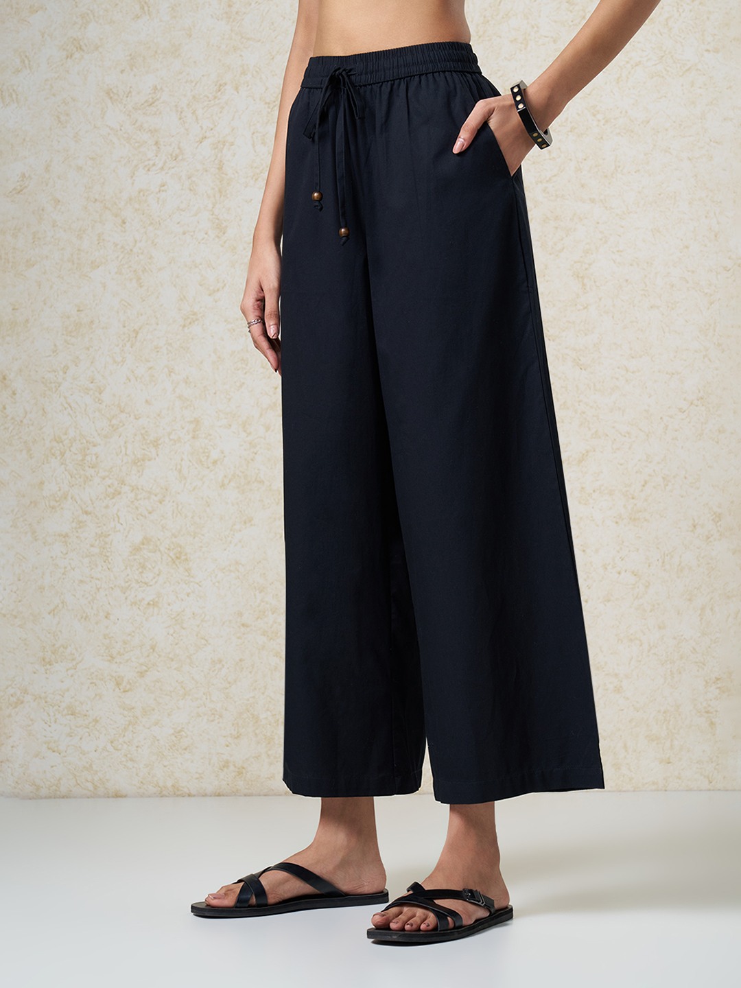 Relaxed volume meets clean minimal structure in a fluid silhouette. Designed with an elasticated waistband and adjustable drawstring, falling into a wide-leg cut for effortless movement. Lightweight woven construction offers a breathable hand feel with a soft, easy drape.