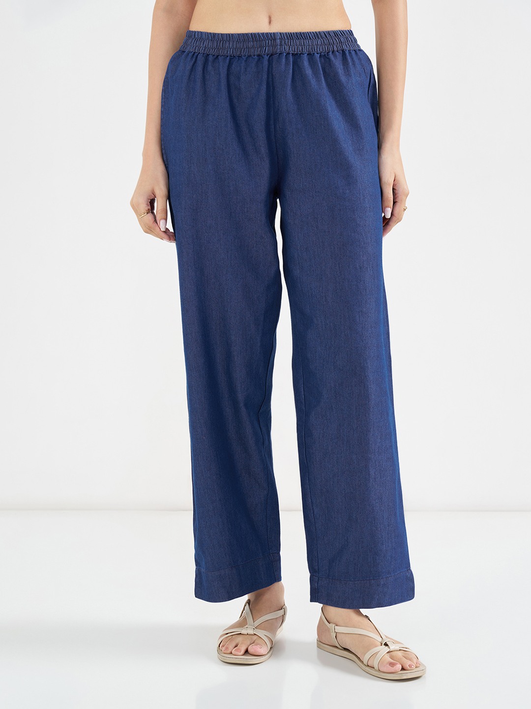 Update your look with our elegant pants collection. The style has an elasticated waistband and a relaxed silhouette. Crafted out of a breezy woven fabric that provides exceptional breathability and ease of wear.