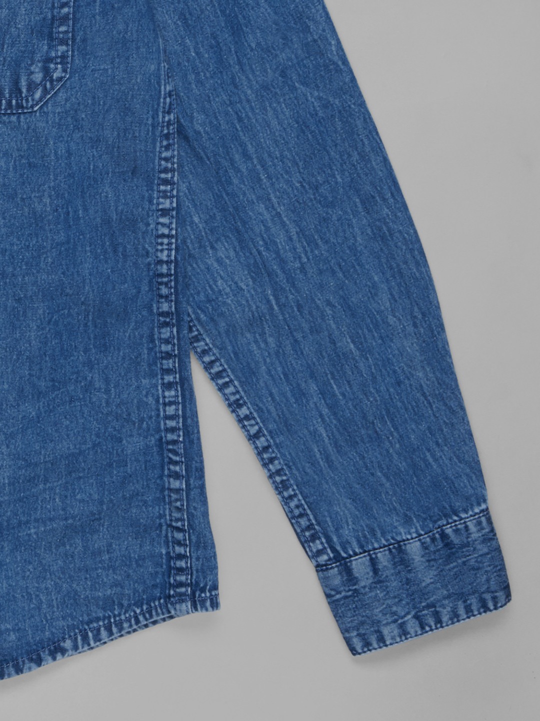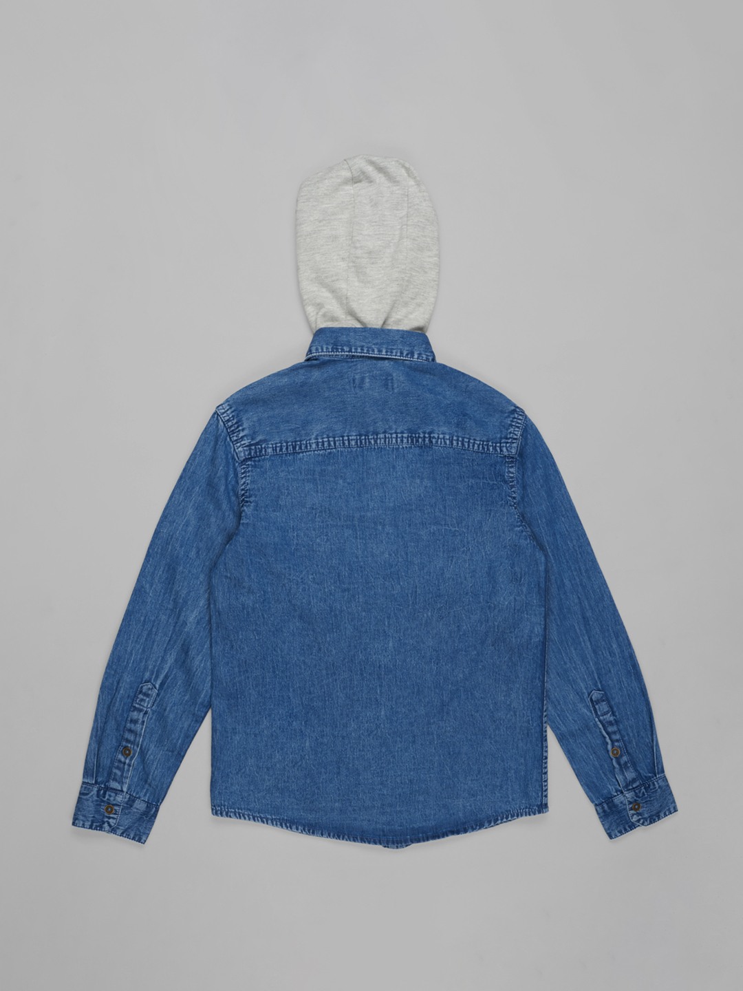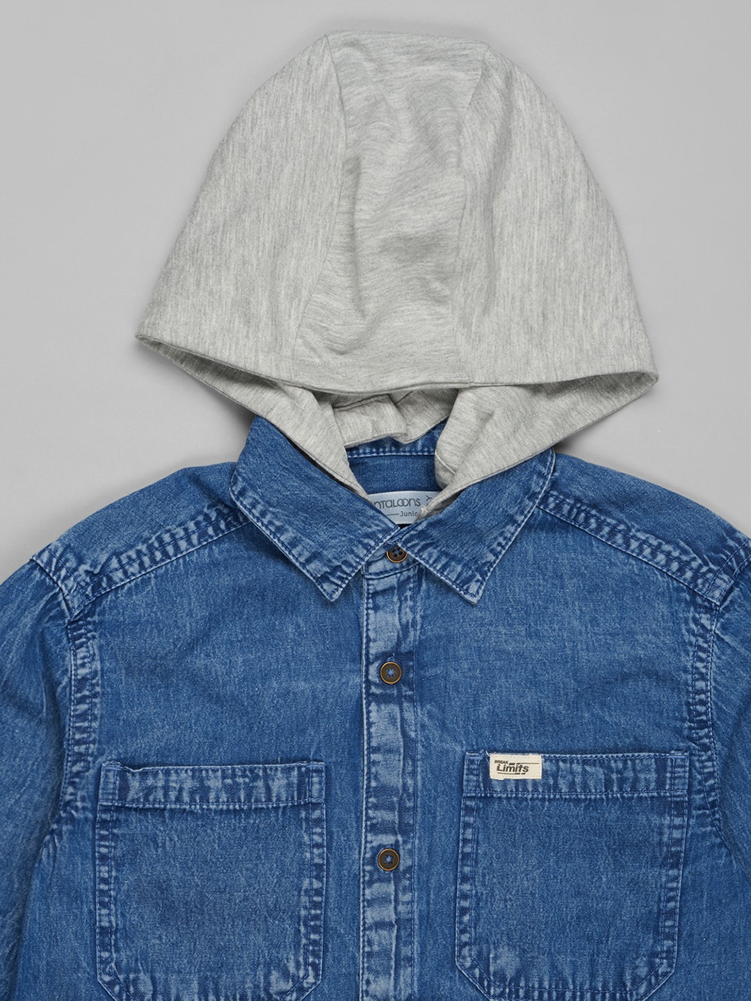 Utility-inspired styling meets everyday comfort in this cool denim shirt. Designed with a classic collar, full sleeves, flap chest pockets and a button-up front, it features a detachable soft hood and subtle text print detail for a sporty edge. The sturdy denim fabric feels durable yet comfortable, making it ideal for layering through changing seasons.