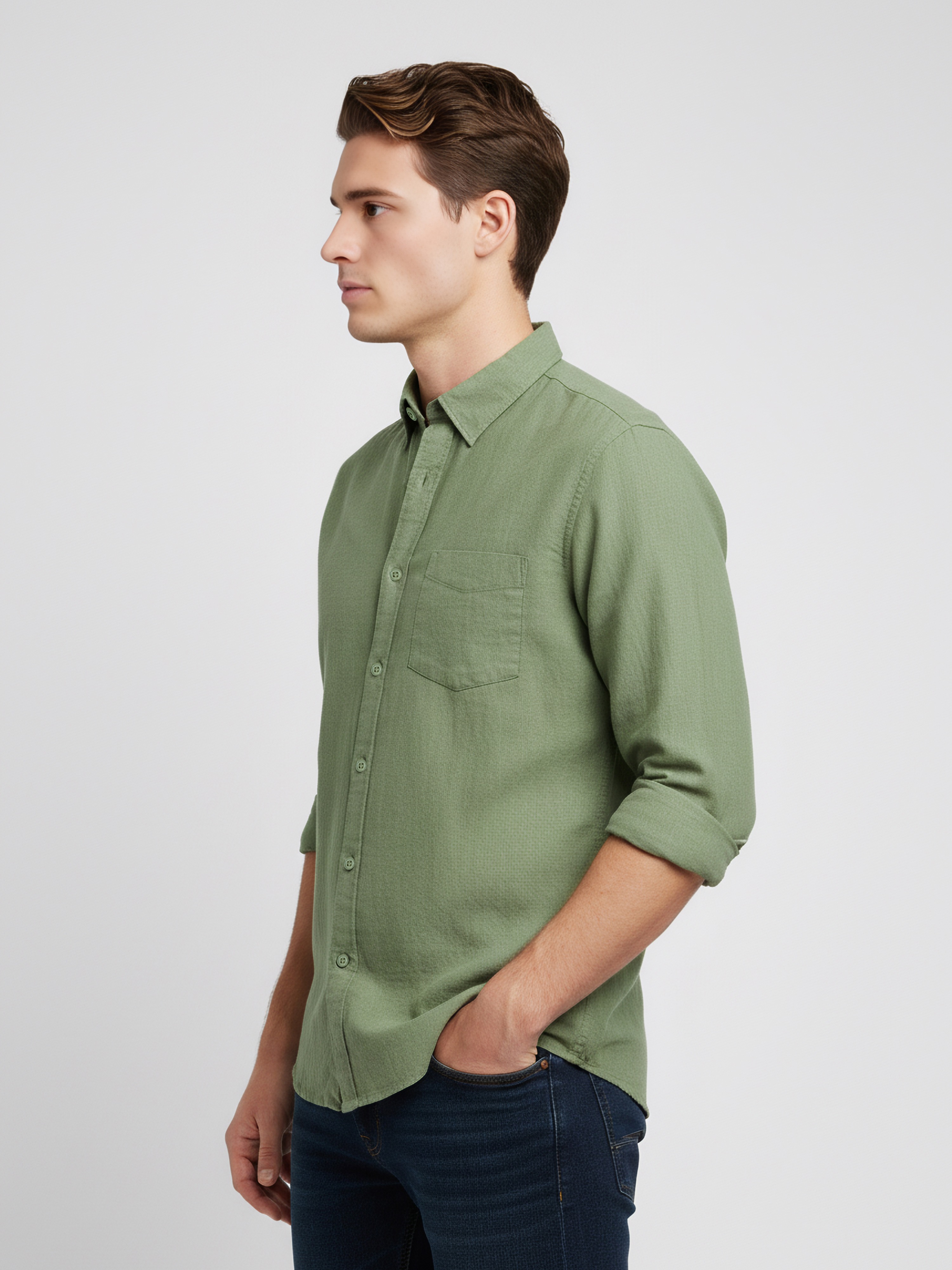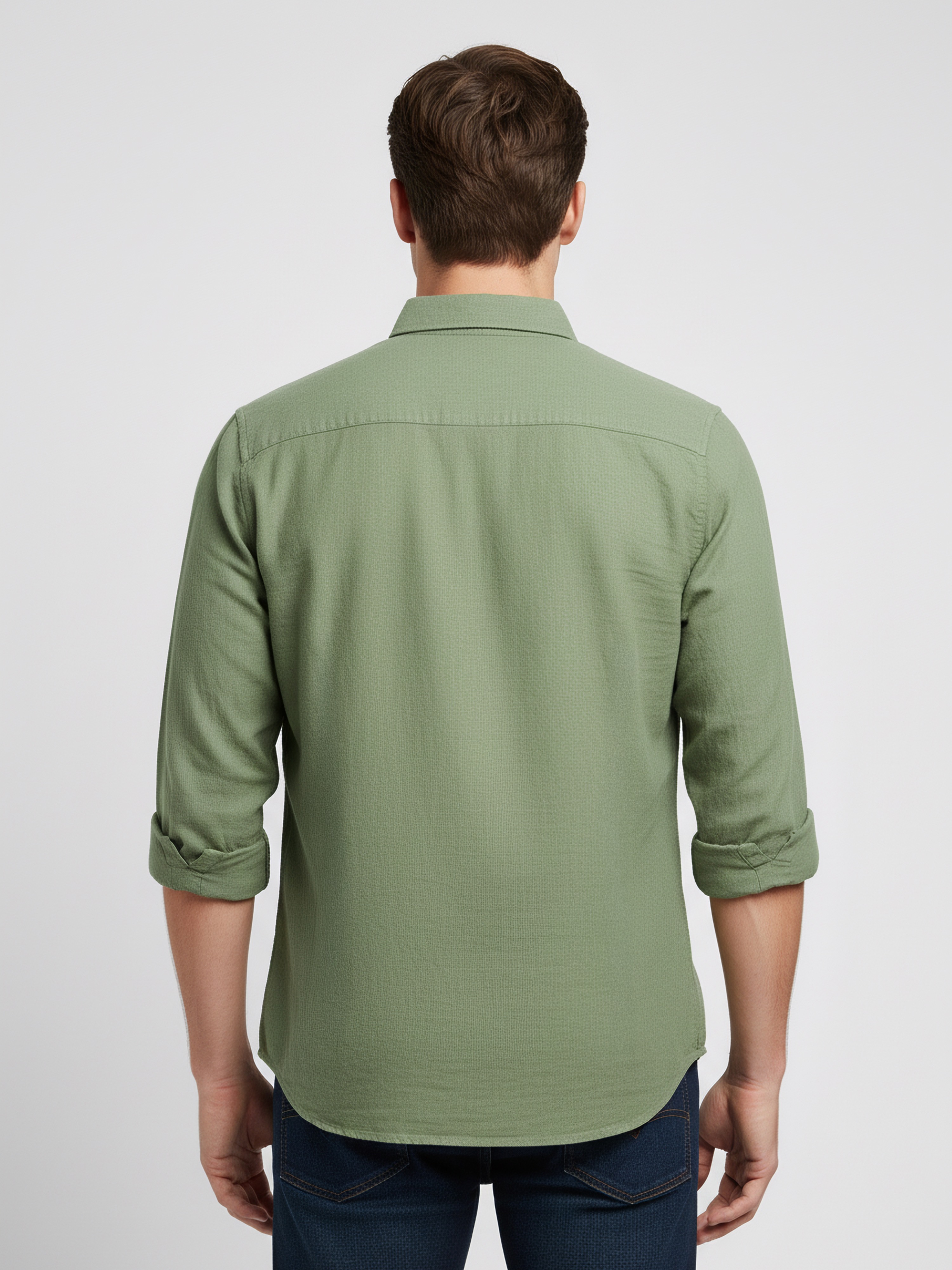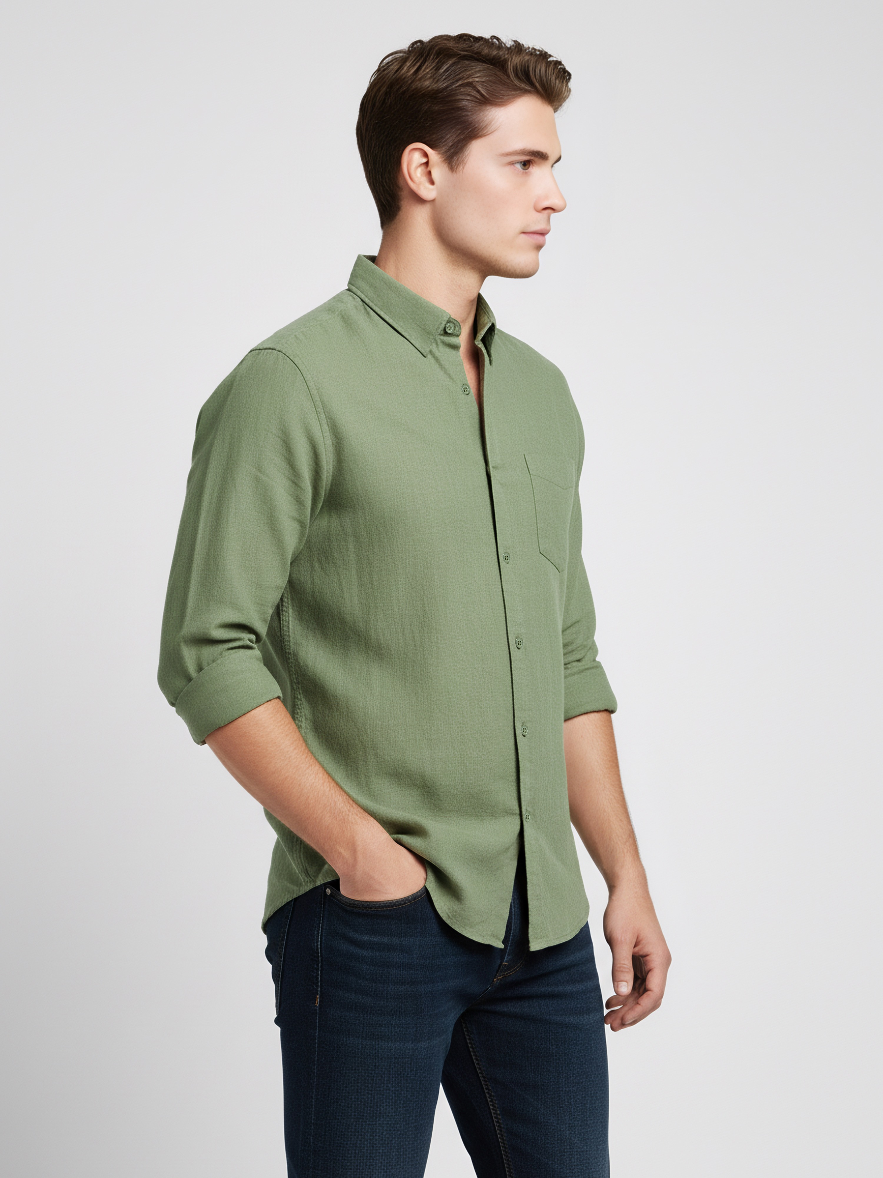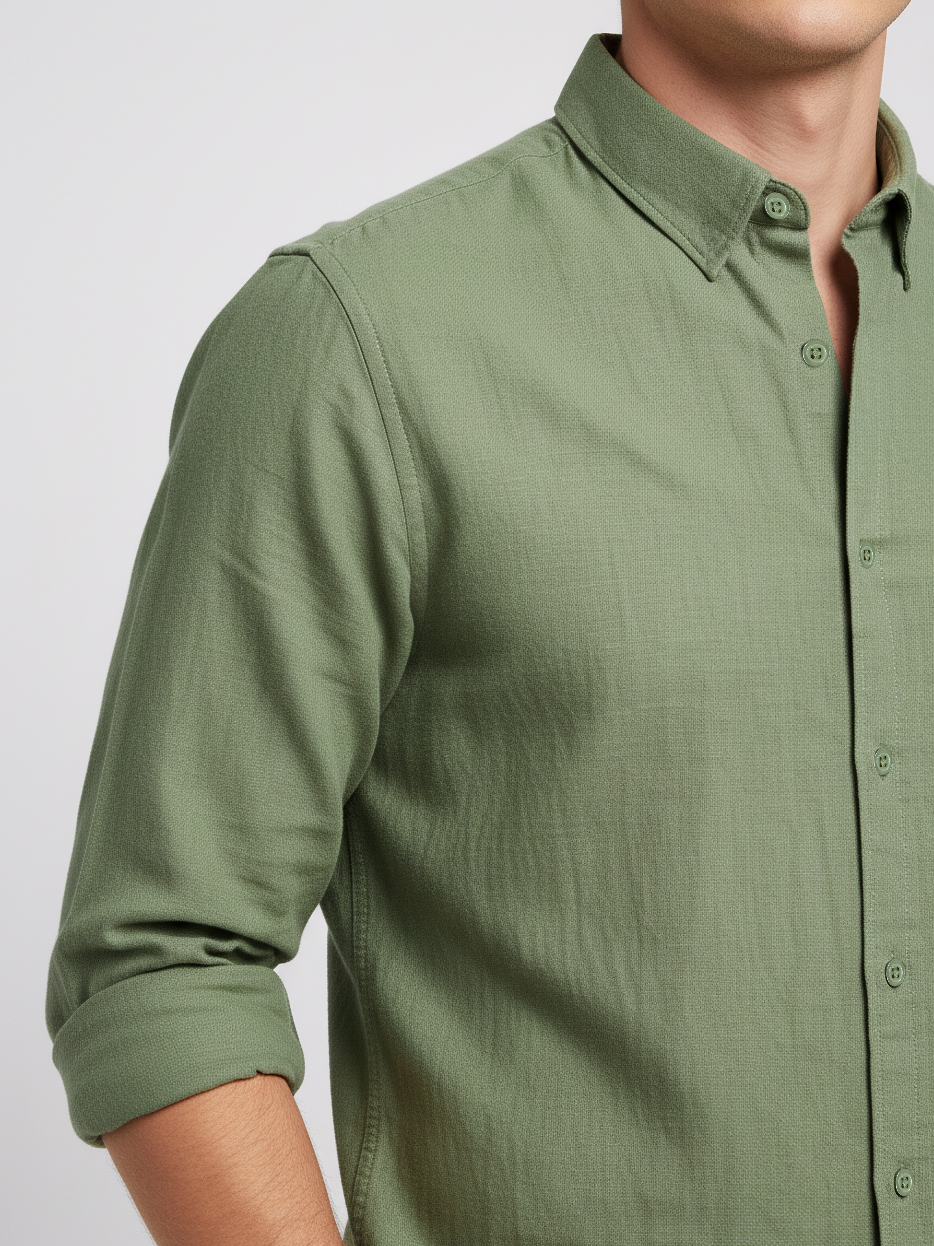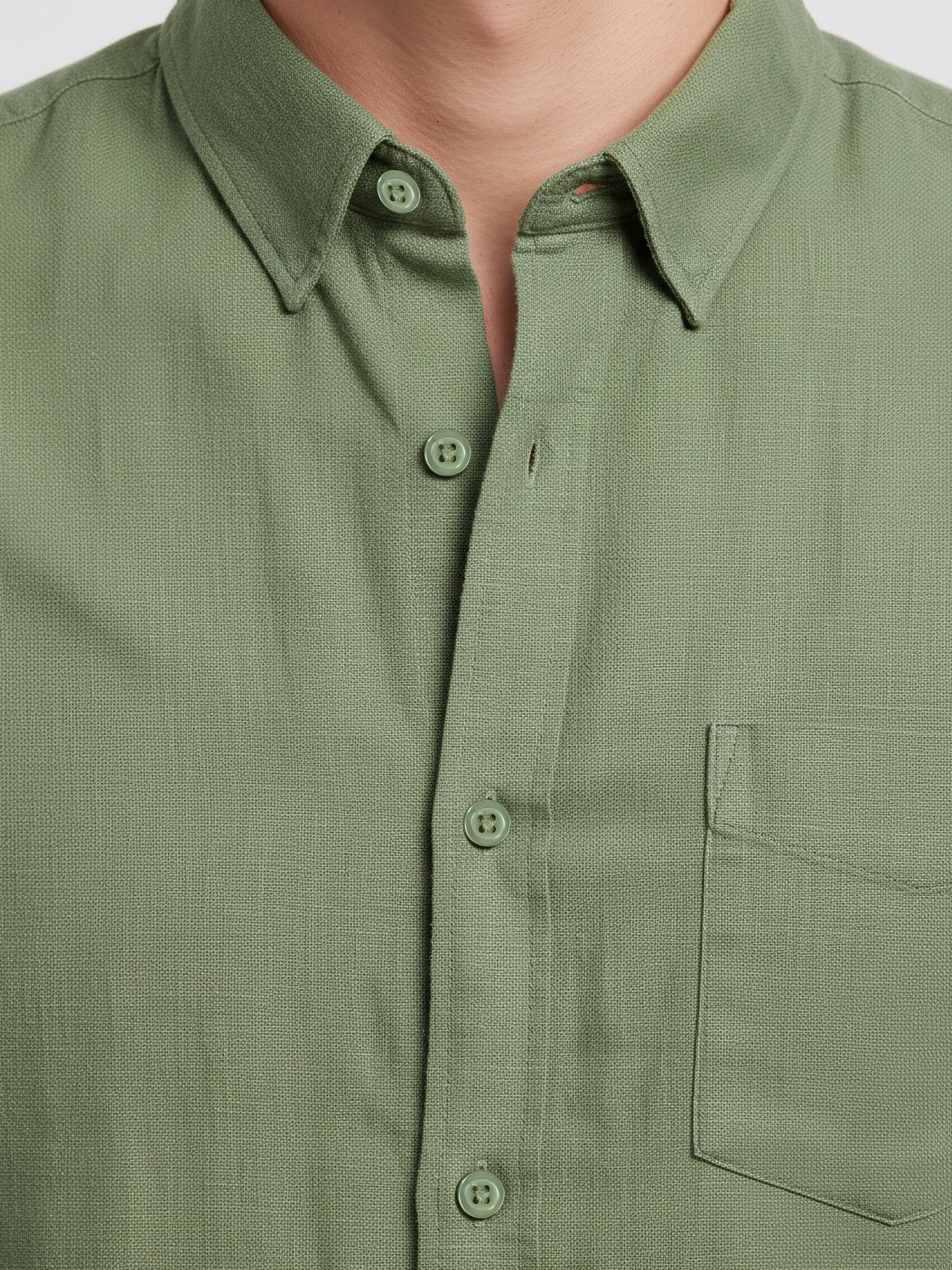 Elevate your casual wardrobe with the Celio Men's Olive Solid Linen Shirt. Featuring roll-up sleeves, this regular fit shirt is perfect for a stylish yet relaxed look.