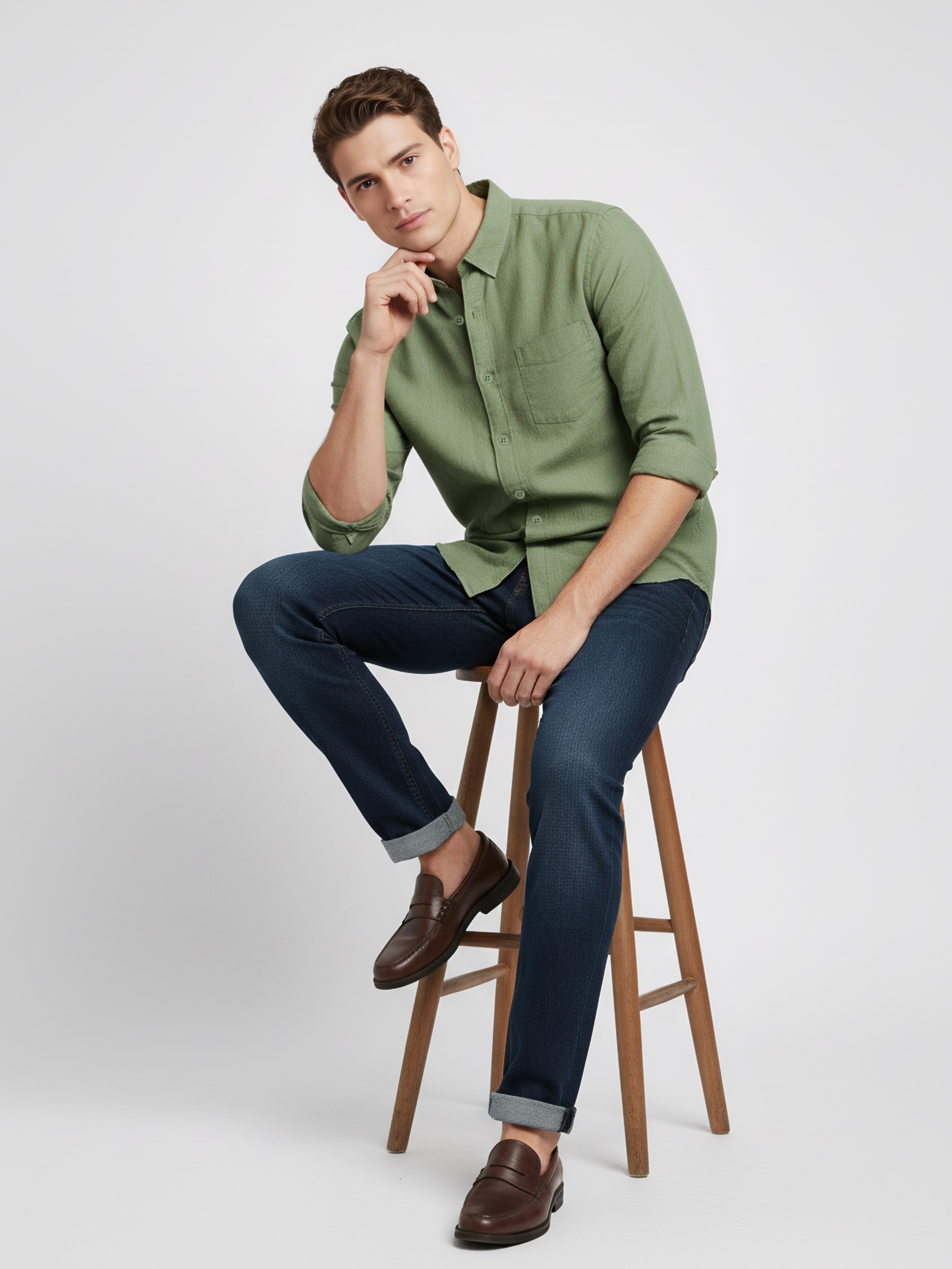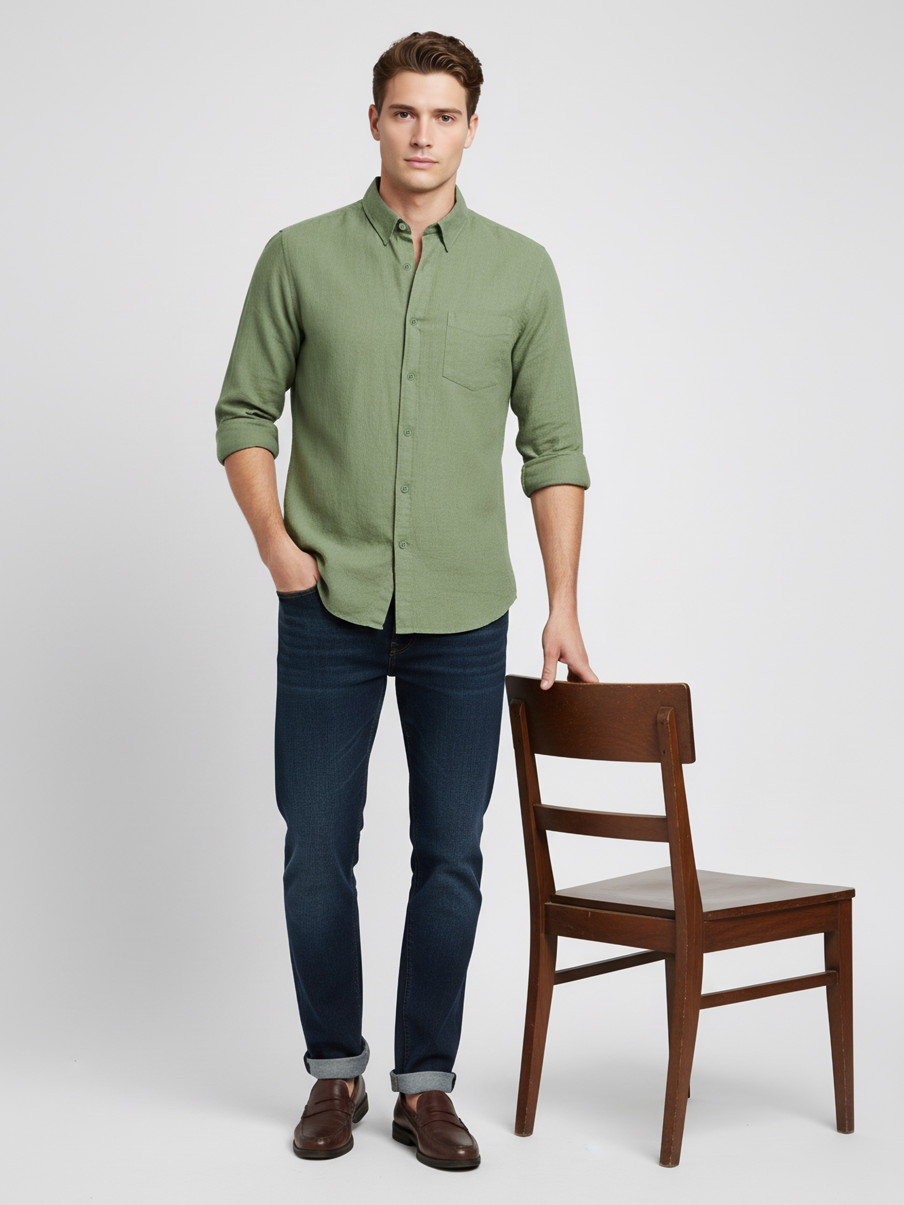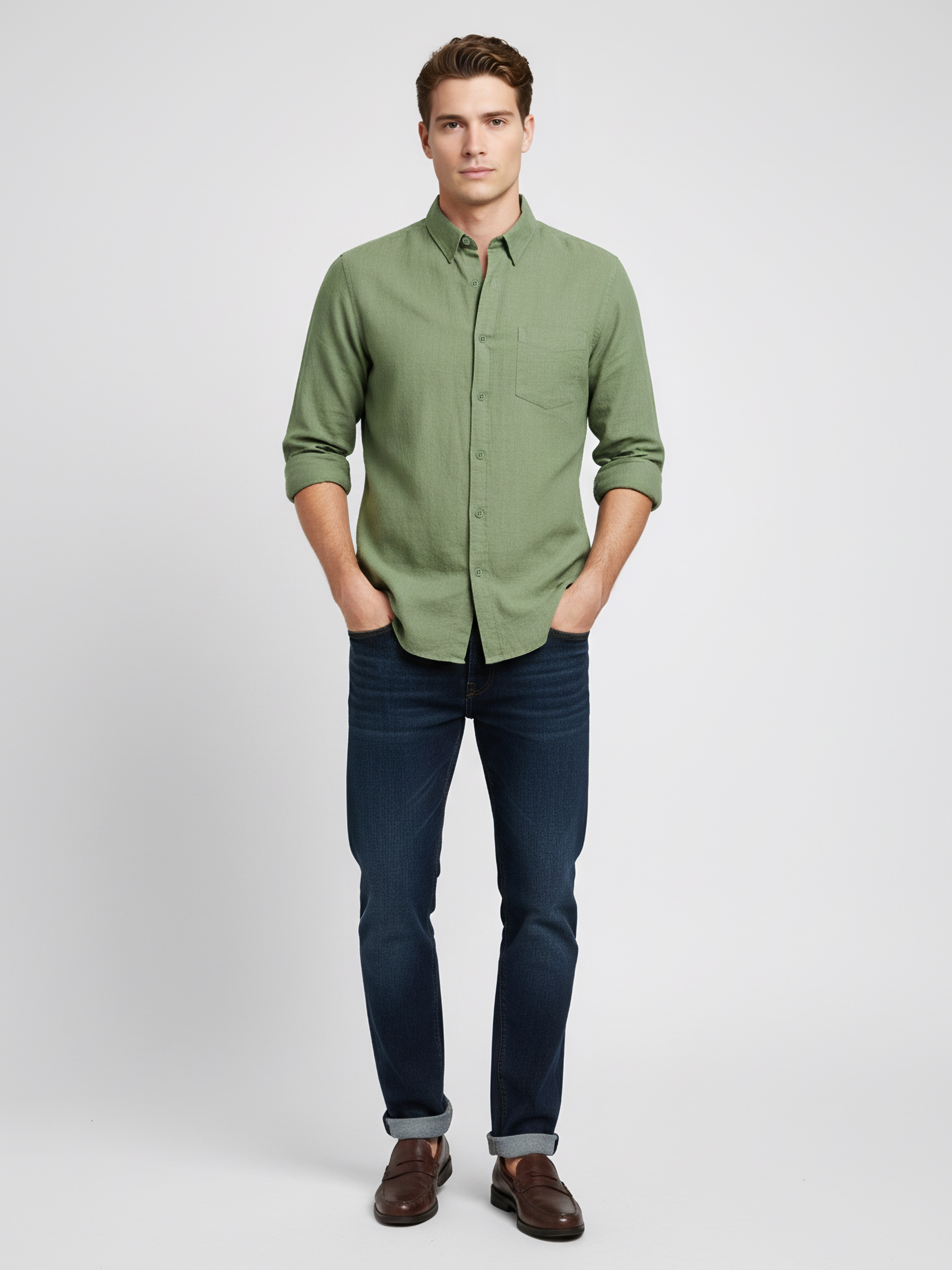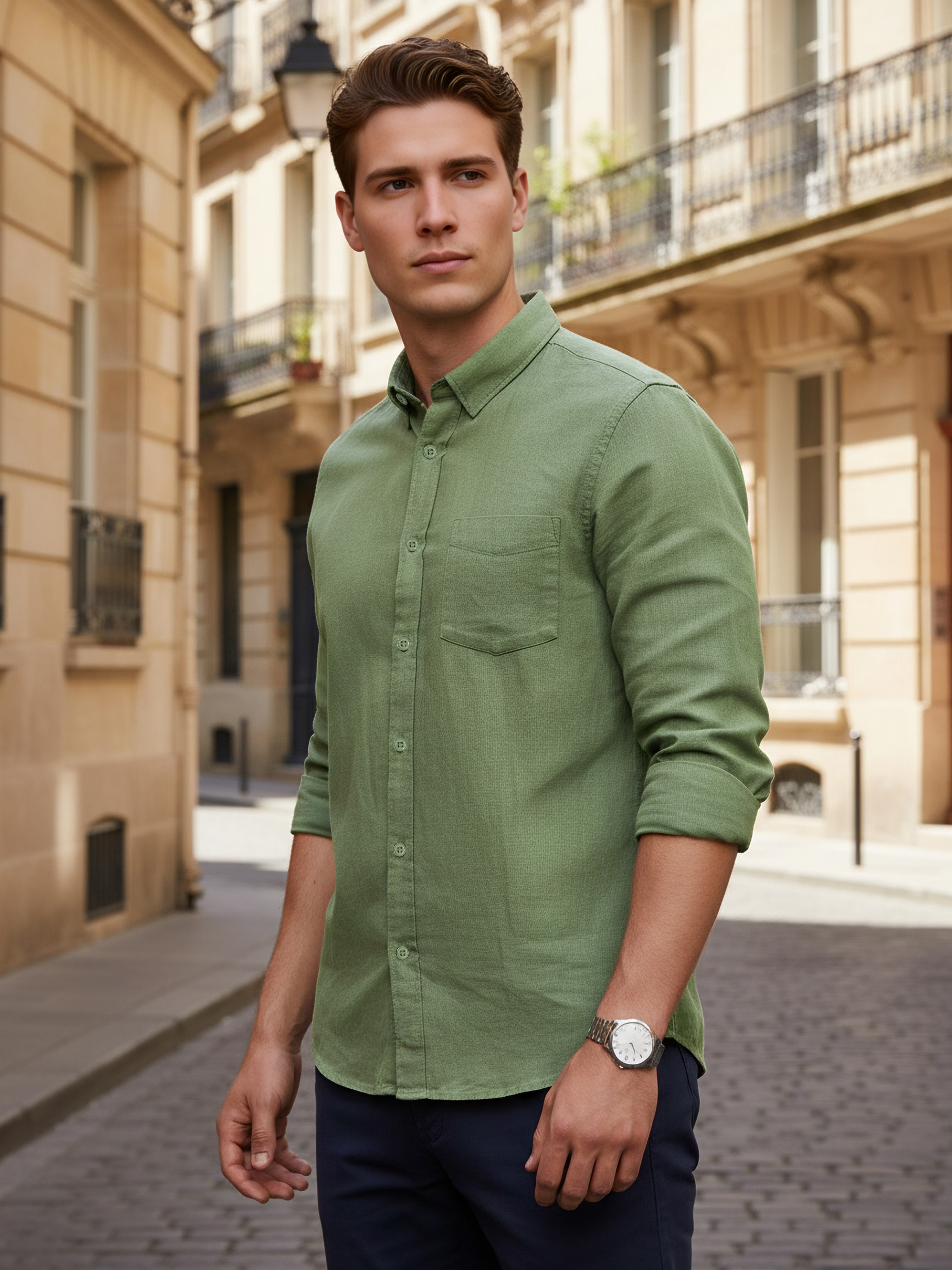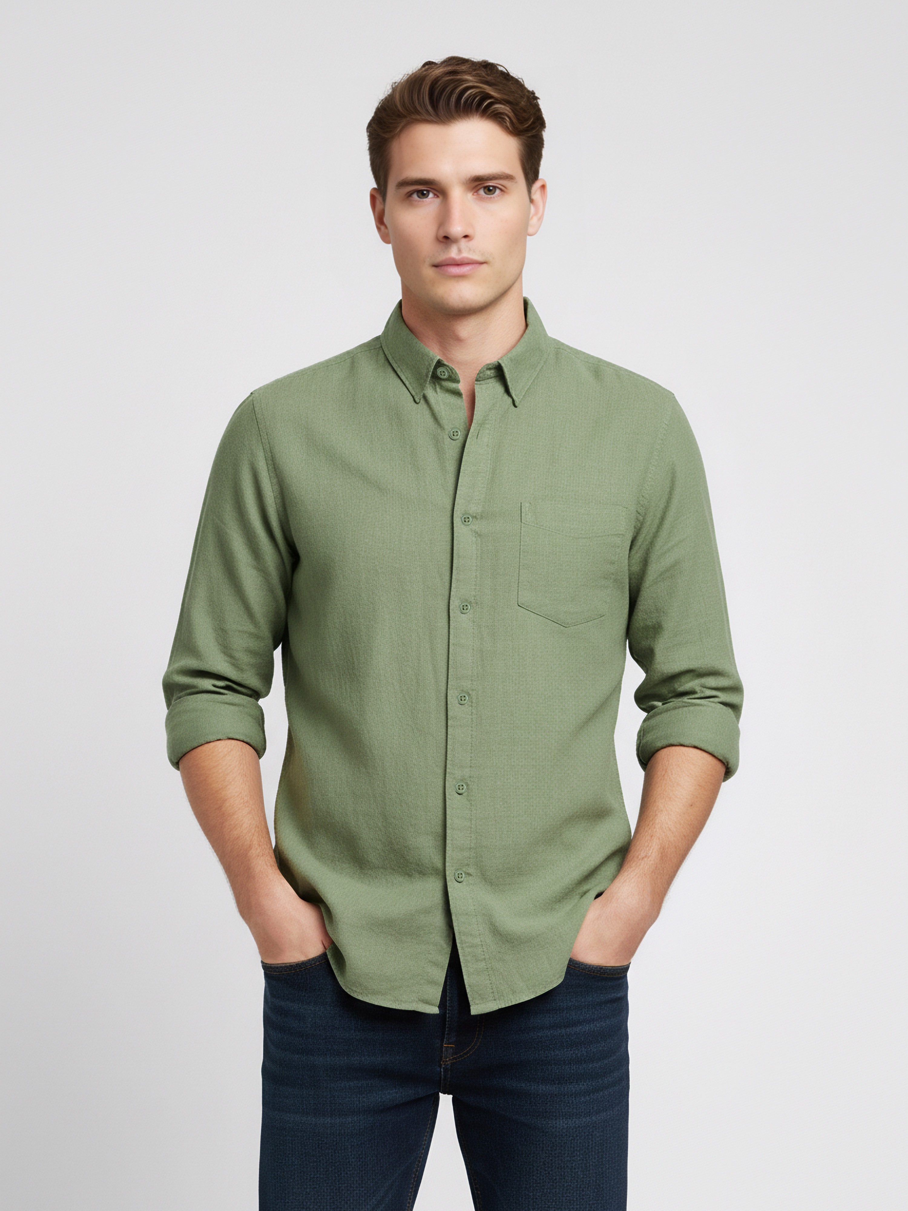 Elevate your casual wardrobe with the Celio Men's Olive Solid Linen Shirt. Featuring roll-up sleeves, this regular fit shirt is perfect for a stylish yet relaxed look.