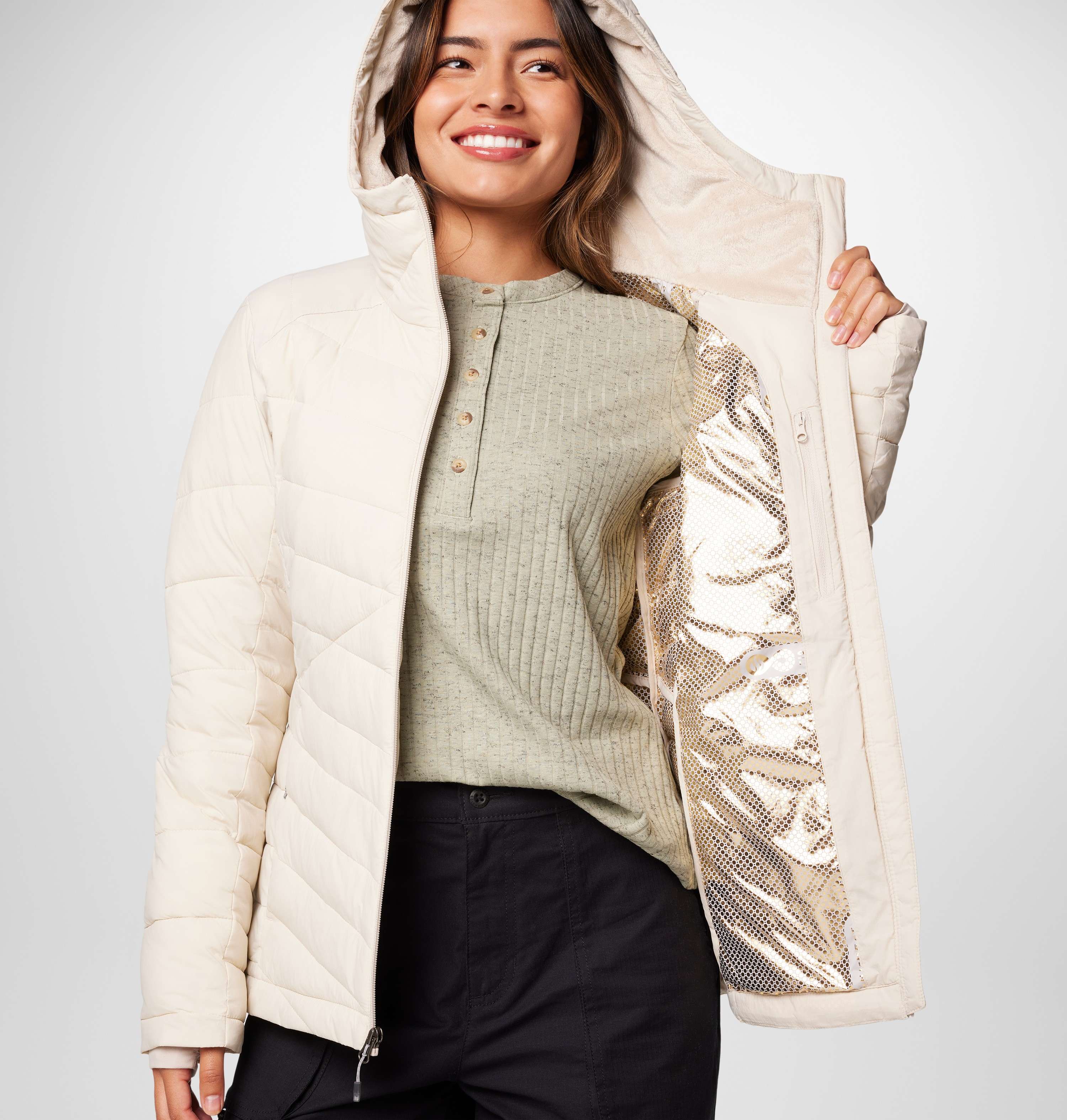Home/Activewear Jackets/Columbia/women beige omniheat infinity joy peak ii down jacket