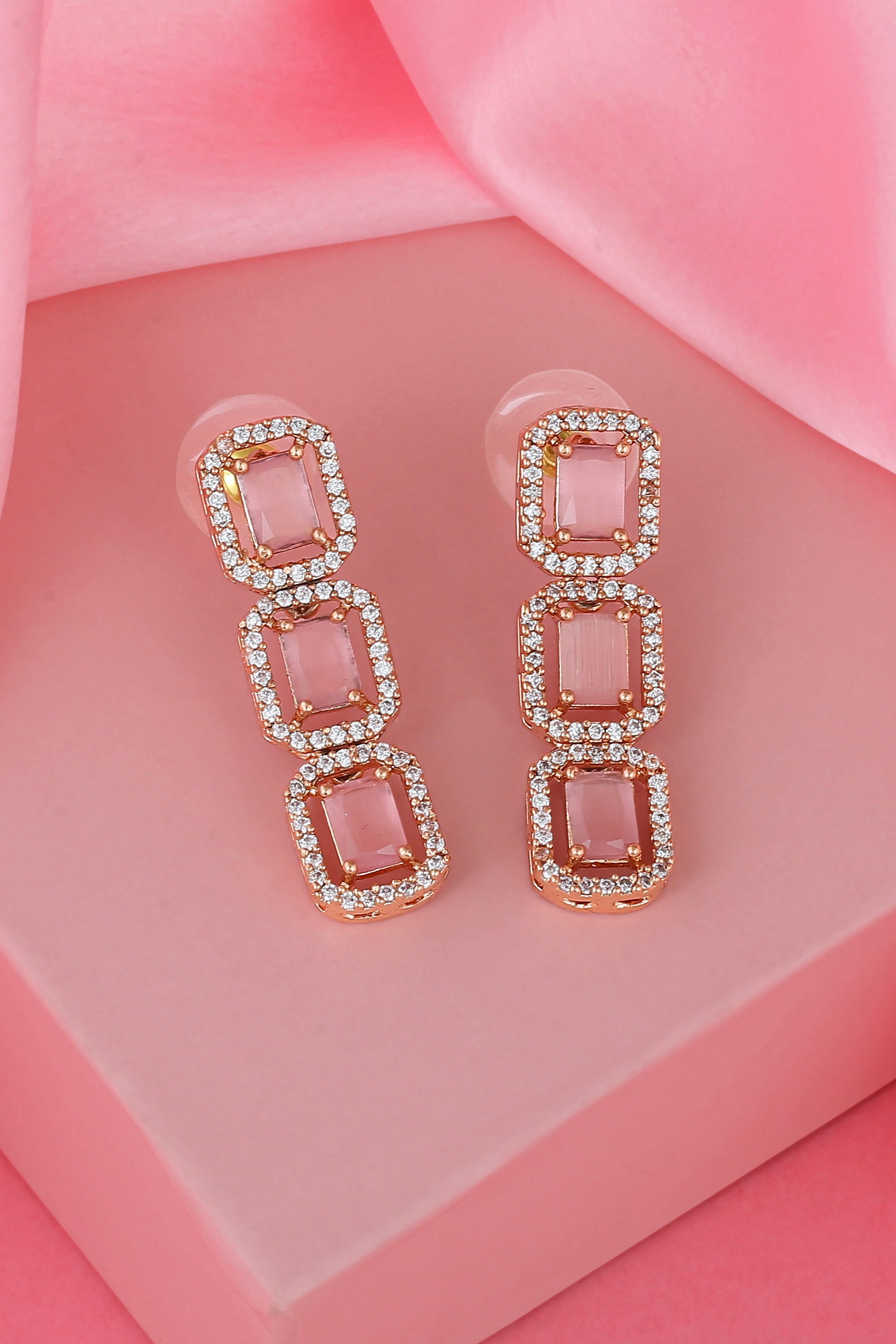 Shine bright as you flaunt these earrings from Estele. These earrings are studded with supreme quality cubic zirconia stones for the gleam. Style yours with an elegant outfit to be the cynosure of all eyes.