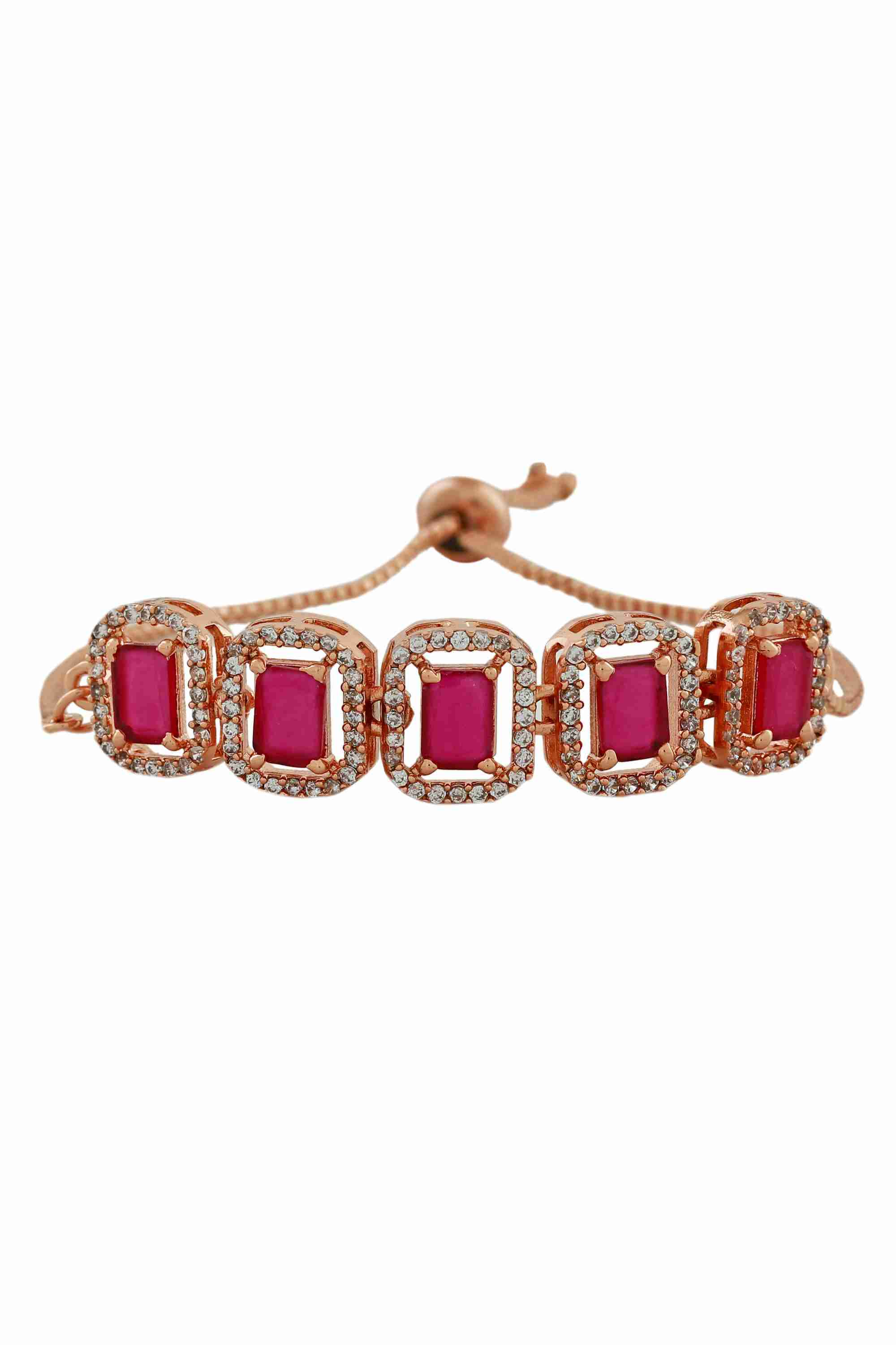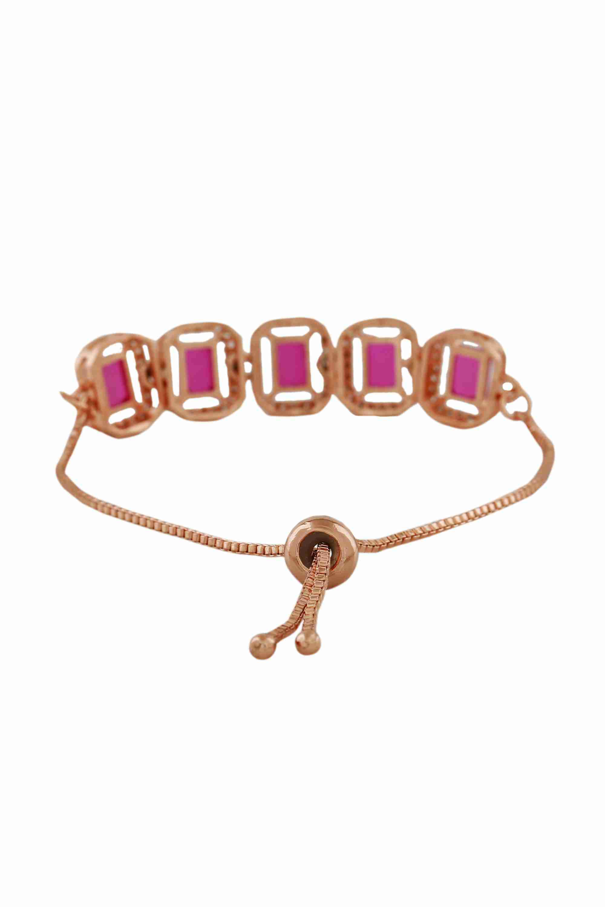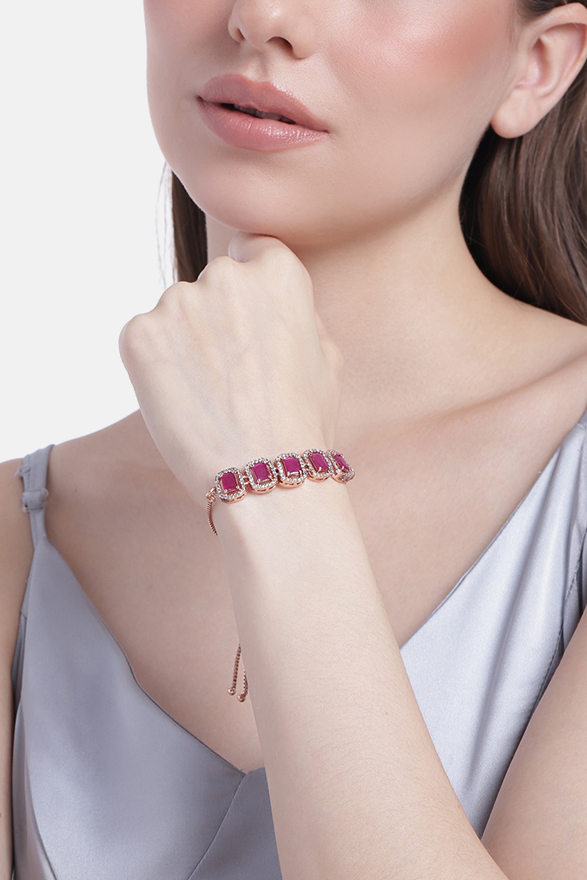 Bring out your distinct personality in a creative way with this awesome octagon designer bracelet with pink cubic zirconia stones. Team up the bracelet with your favorite dress and matching heels for a trendy look.