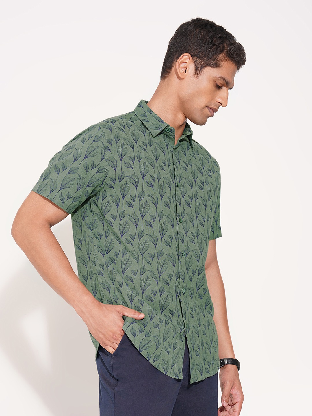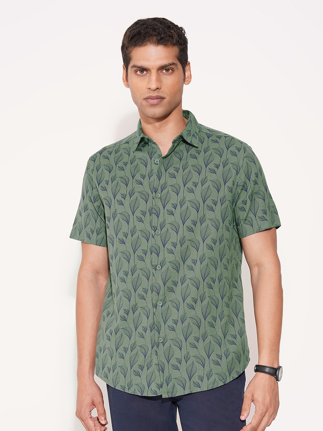 Home/Casual Shirts/Peregrine by Pantaloons/green leaf print button-up shirt