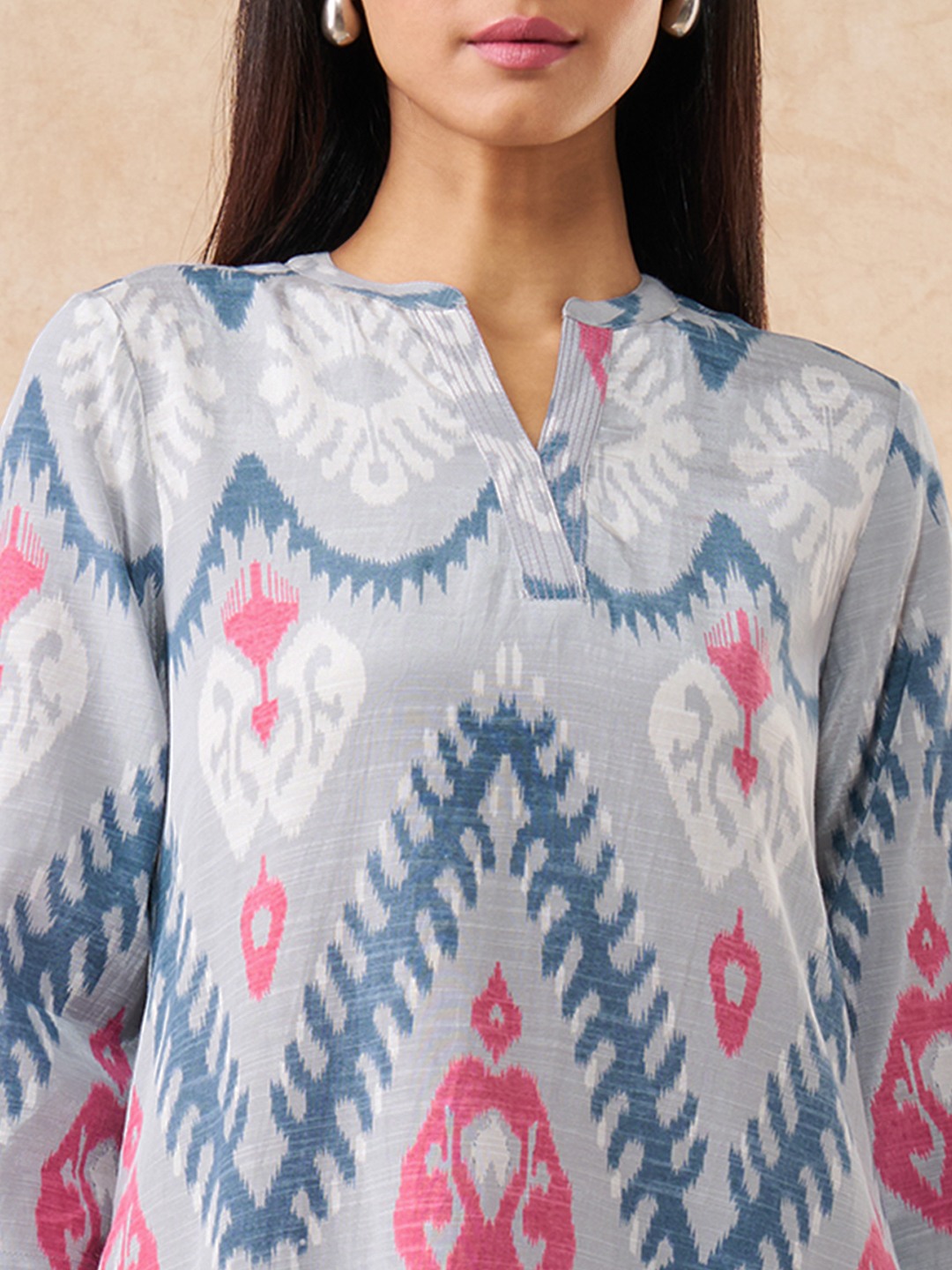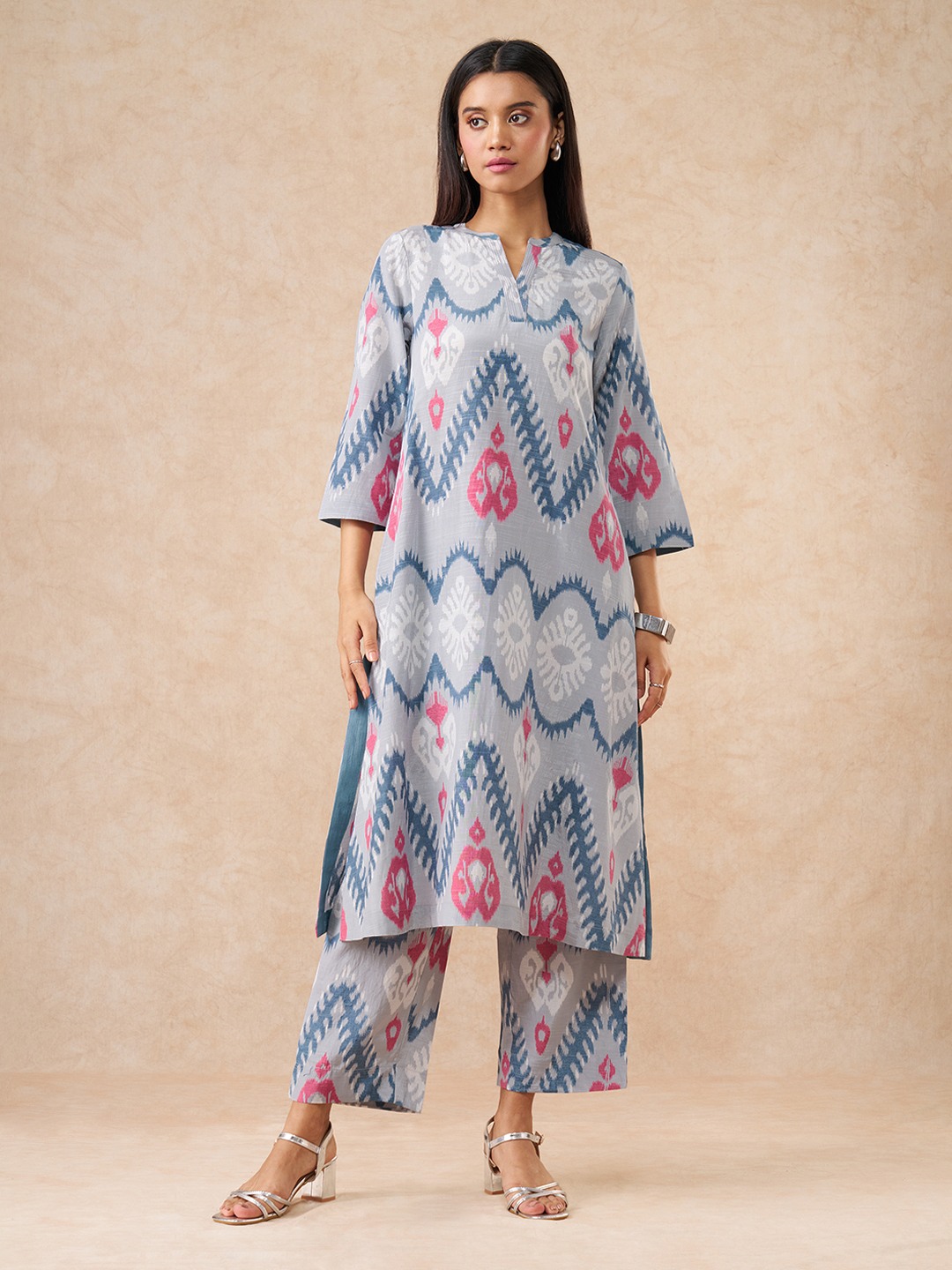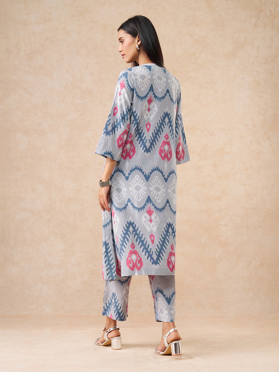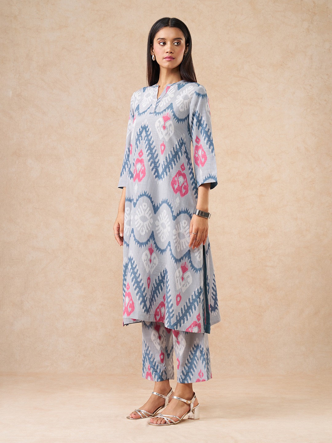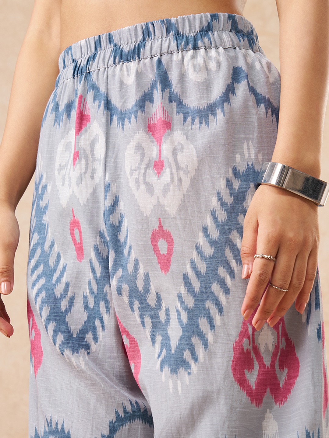 This wholesome, printed kurta set is from our Elevated collection. Featuring styles thoughtfully reimagined for the contemporary woman in the most exquisite fabrics, enriched with refined surface ornamentation, this collection offers versatile pieces that transition effortlessly from day to night. This set comprises a contemporary kurta and a pair of elasticated pants, both featuring a matching all-over print. The comforting character of the cotton-viscose fabric keeps you pleased during your festive events.