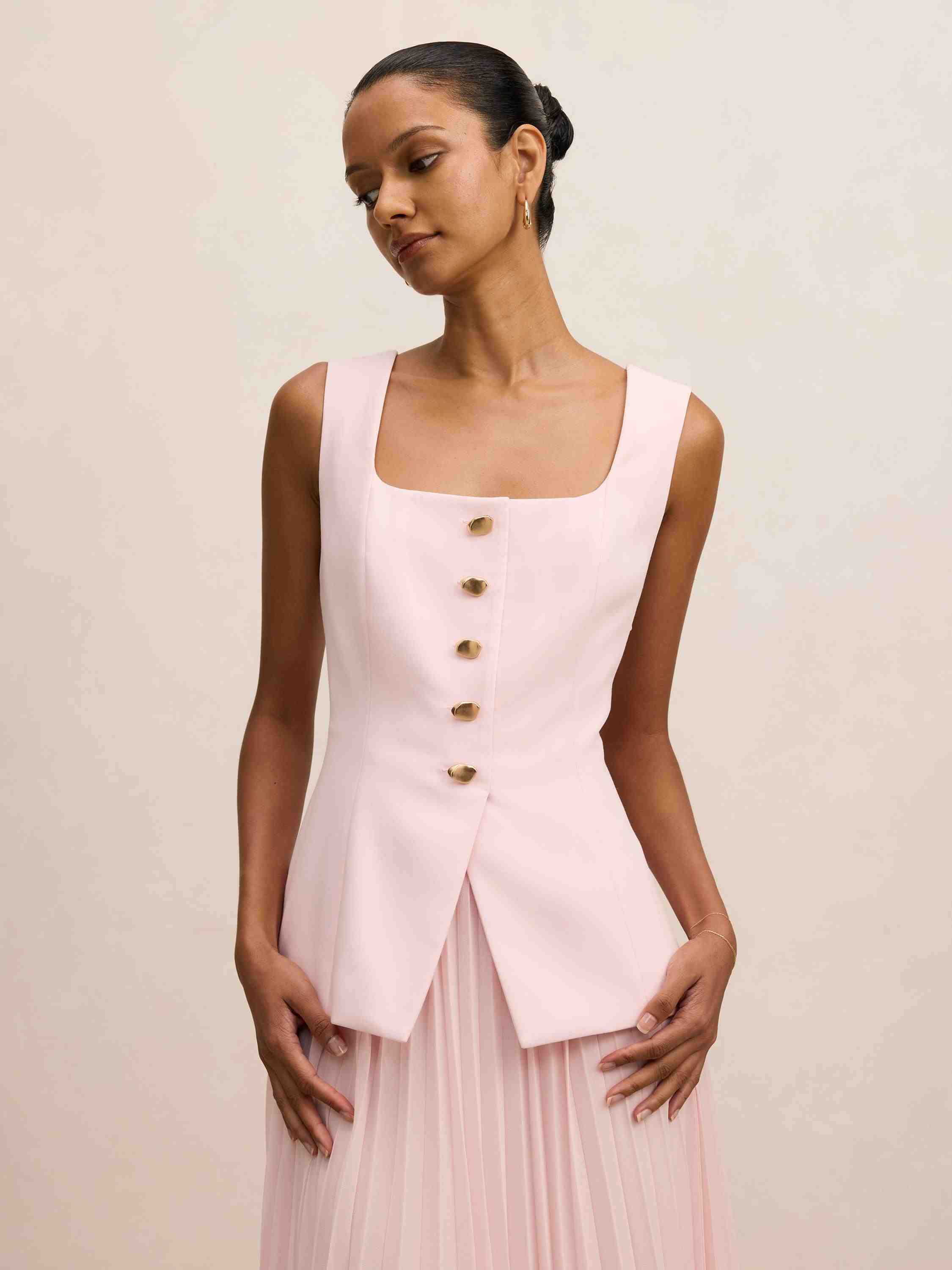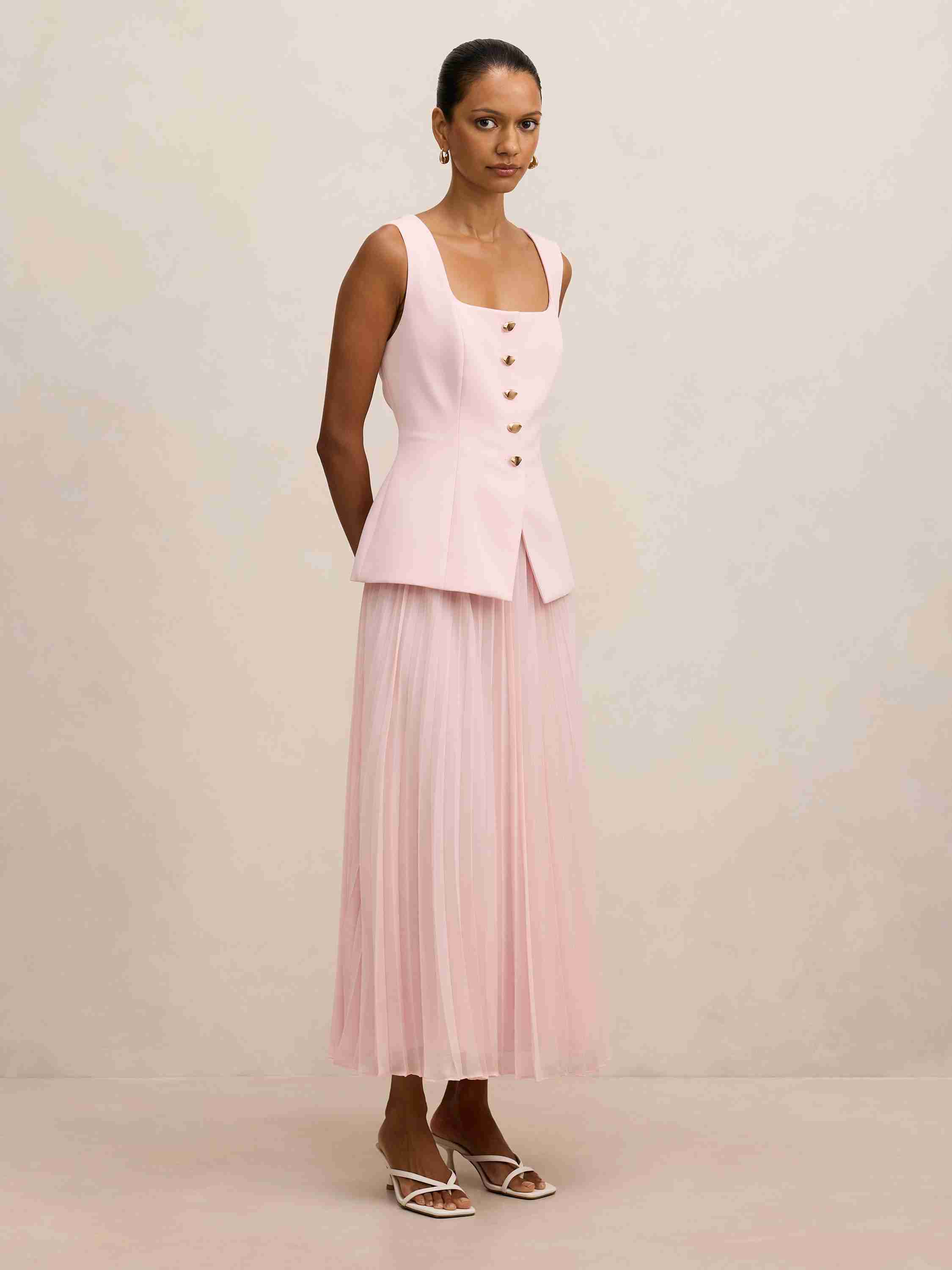 Halsey Petite Pleated Waistcoat Maxi Dress