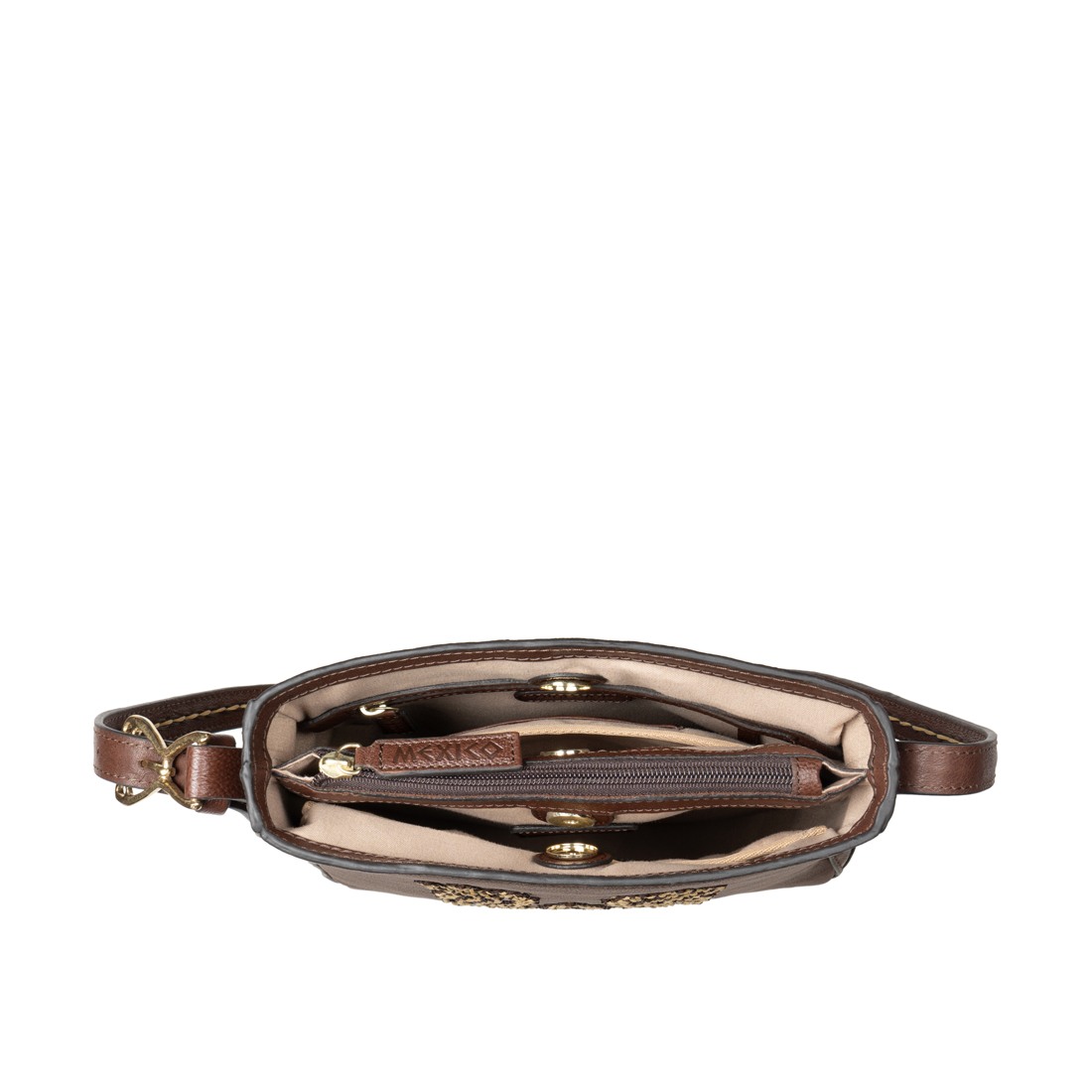 Carry the spirit, wear the craft.Inspired by the vibrant soul of Mexico and the timeless artistry of the Aztecs, this shoulder bag blends everyday ease with understated sophistication. Handcrafted in rich Kalahari leather, it's detailed with hand-woven thread work on the front panel and strap, a mark of true craftsmanship. Finished with shiny brass accents, it's designed for women who value both beauty and function, moving effortlessly from casual outings to evening plans.