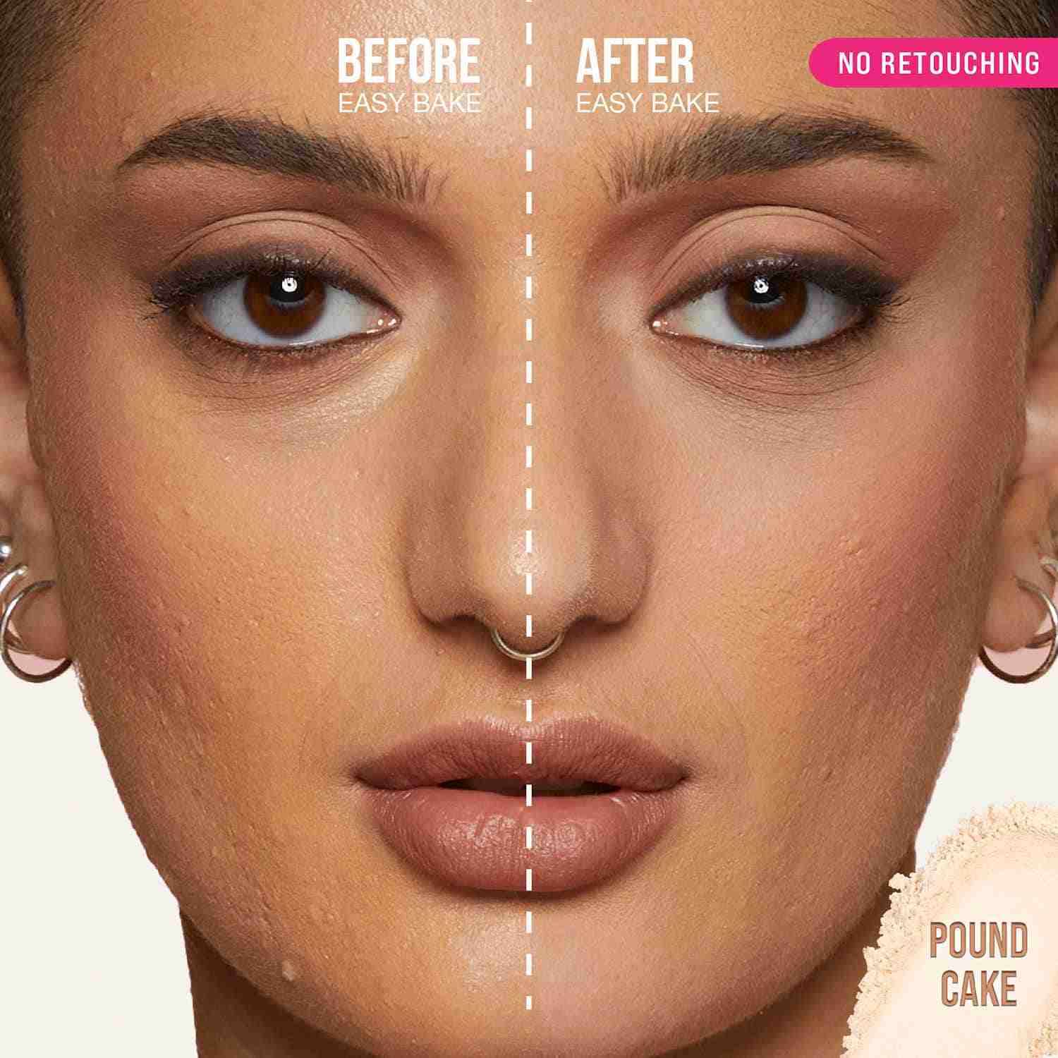The Huda Beauty Easy Bake Loose Baking & Setting Powder - Pound Cake (20g) gives you a flawless, airbrushed finish. This lightweight setting powder blends seamlessly and helps keep the makeup in place. Also, the Huda Beauty setting powder is vegan and dermatologically tested to ensure risk-free use.
