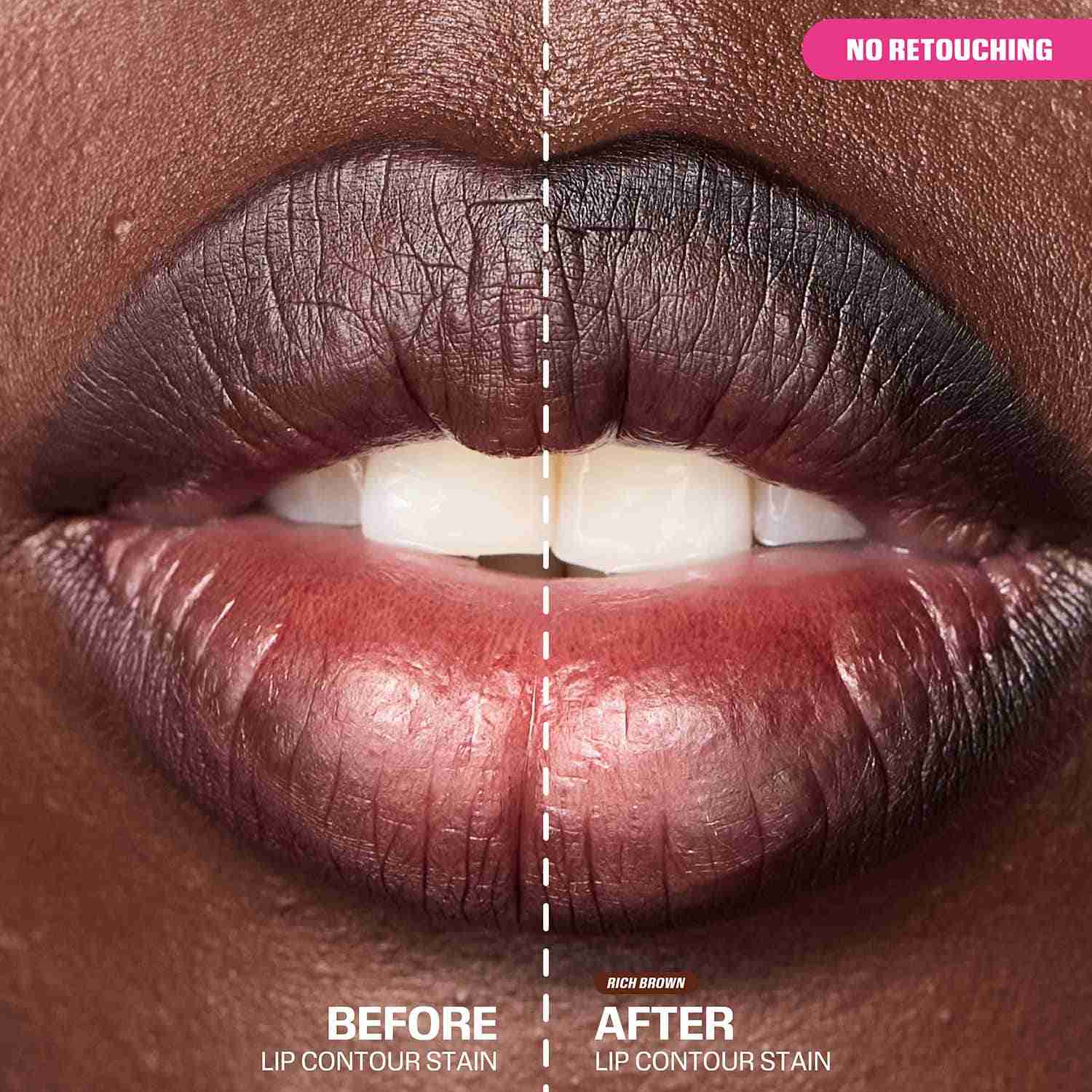 Get ready to steal the spotlight with the Huda Beauty Lip Contour Stain - Rich Brown (1 ml). This innovative lip stain and liner hybrid is a dual-sided felt tip liner that delivers intense color and precise application, while the ultra-pigmented formula lasts up to 12 hours without smudging or fading. Infused with moisturizing argan oil, the Huda Beauty lip stain provides a comfortable matte finish that keeps lips soft and hydrated all day. Perfect for a kissproof, transferproof look, this nourishing lip color stays flawless all day long.