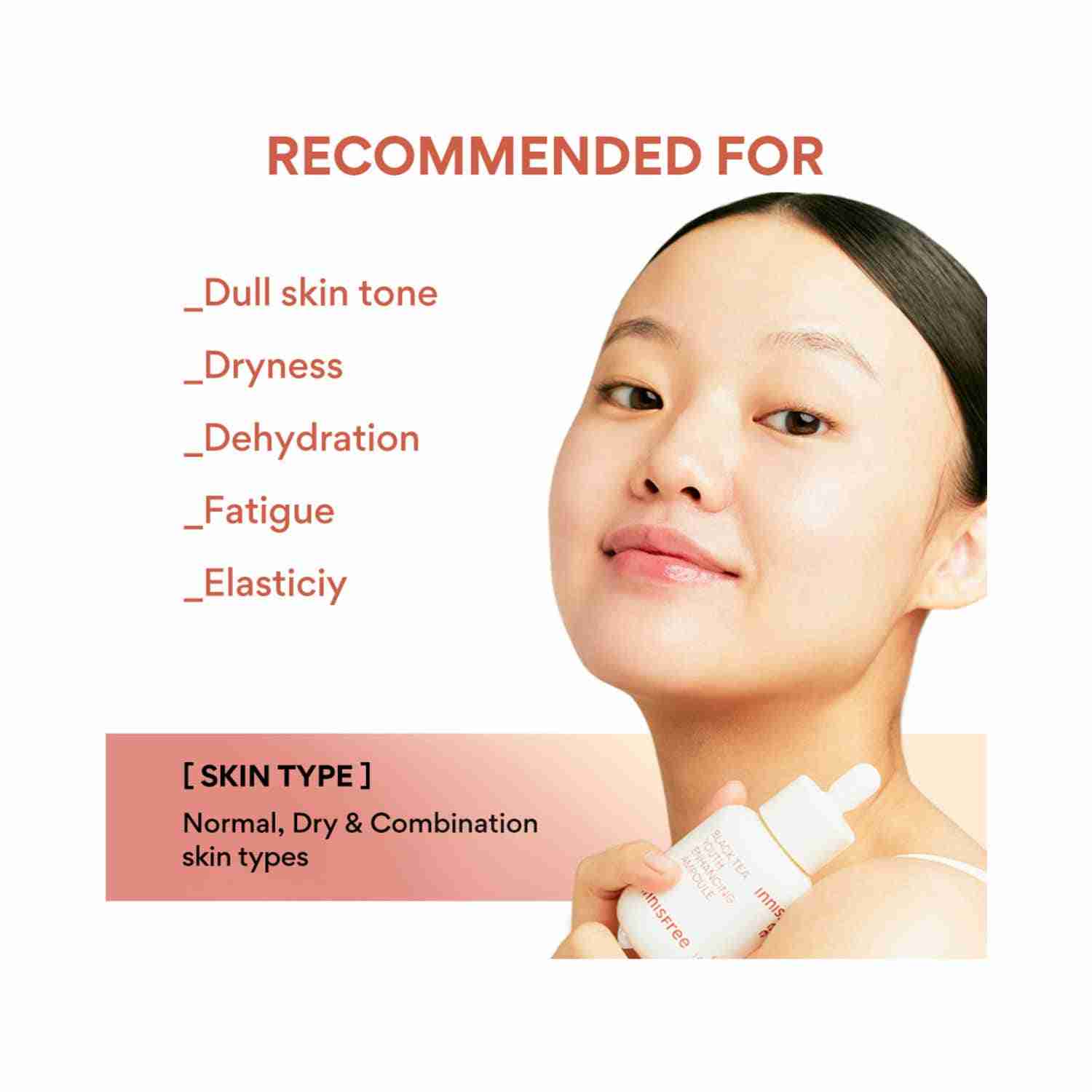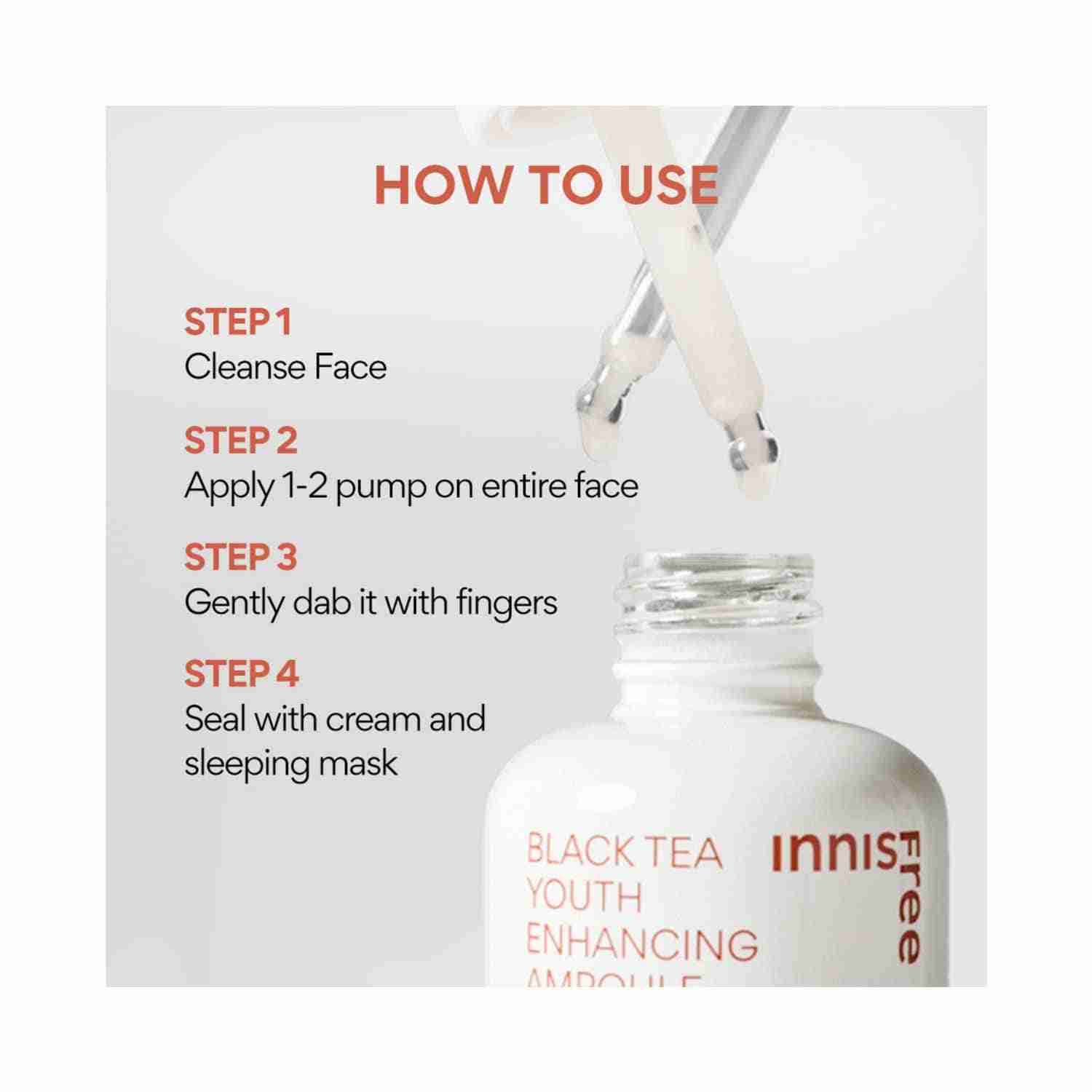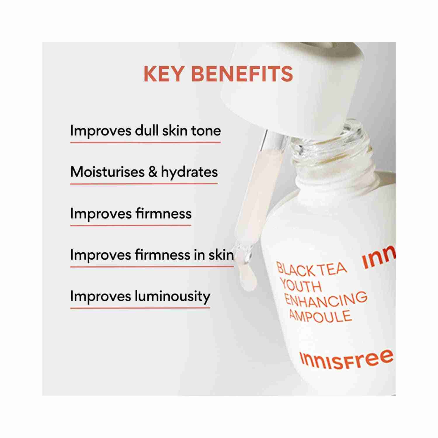 Achieve a refreshed, youthful-looking skin with the Innisfree Black Tea Youth Enhancing Ampoule (30 ml). This conditioning face ampoule contains black tea and antioxidants to combat signs of aging like fine lines and wrinkles. Also, the Innisfree face ampoule works together to nourish your skin from within, promoting a more radiant appearance.