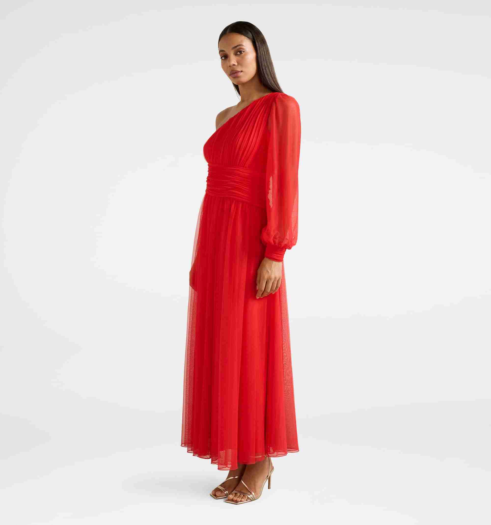 Jennifer One Shoulder Tulle Maxi Dress