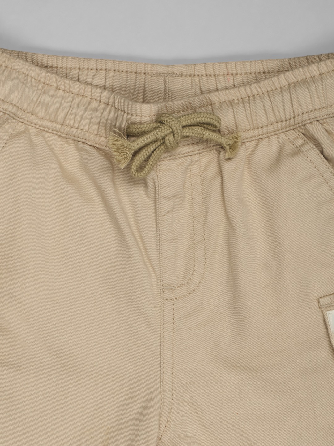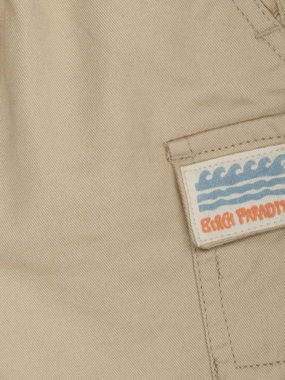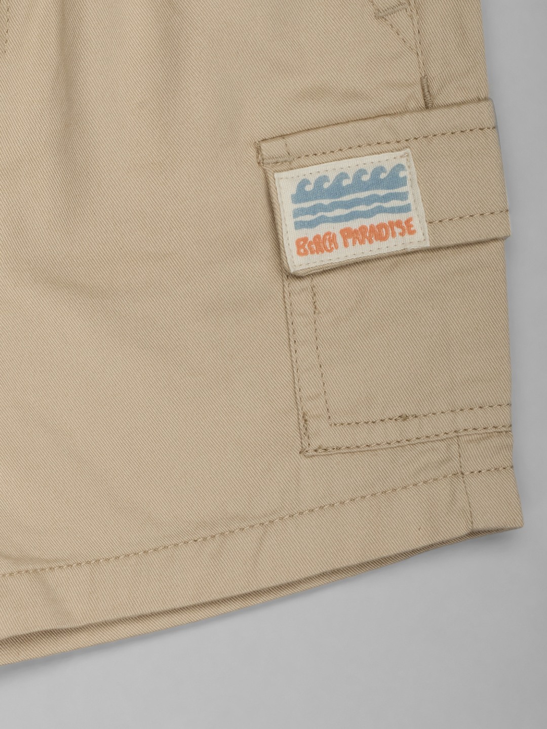 An easy staple designed for fun summer days, these shorts balance comfort with utility-inspired detail. Cut with a relaxed fit, they feature an elasticated waistband with a functional drawstring, side pockets and flap cargo pockets finished with a playful patch accent. Comfortable and easy to move in, they are ideal for everyday play and warm-weather outings.