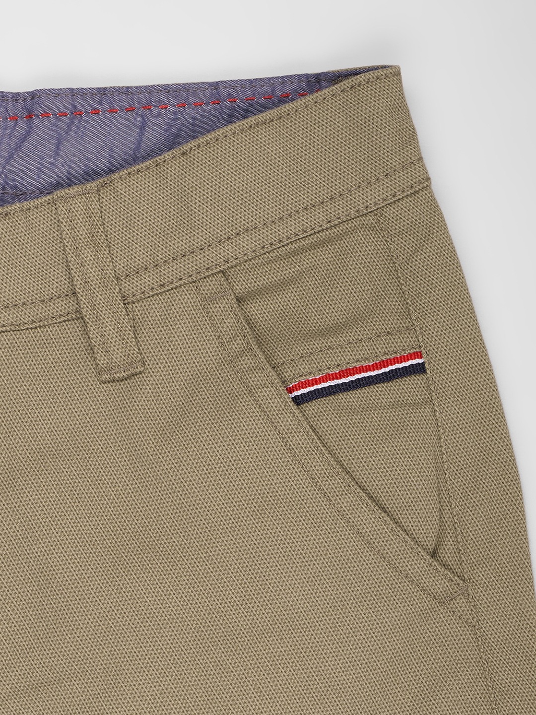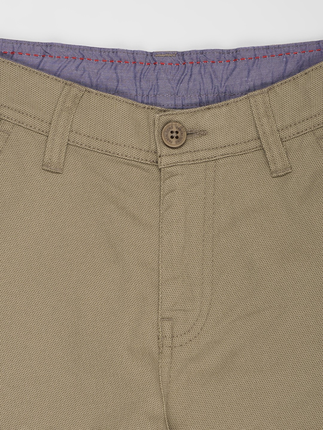 Smart-casual styling with a clean, polished look suited for dressier days. Designed with a buttoned waistband, belt loops, pockets and neat turn-up cuffs finished with subtle tape detailing. Made from smooth woven fabric that stays lightweight and comfortable to wear.