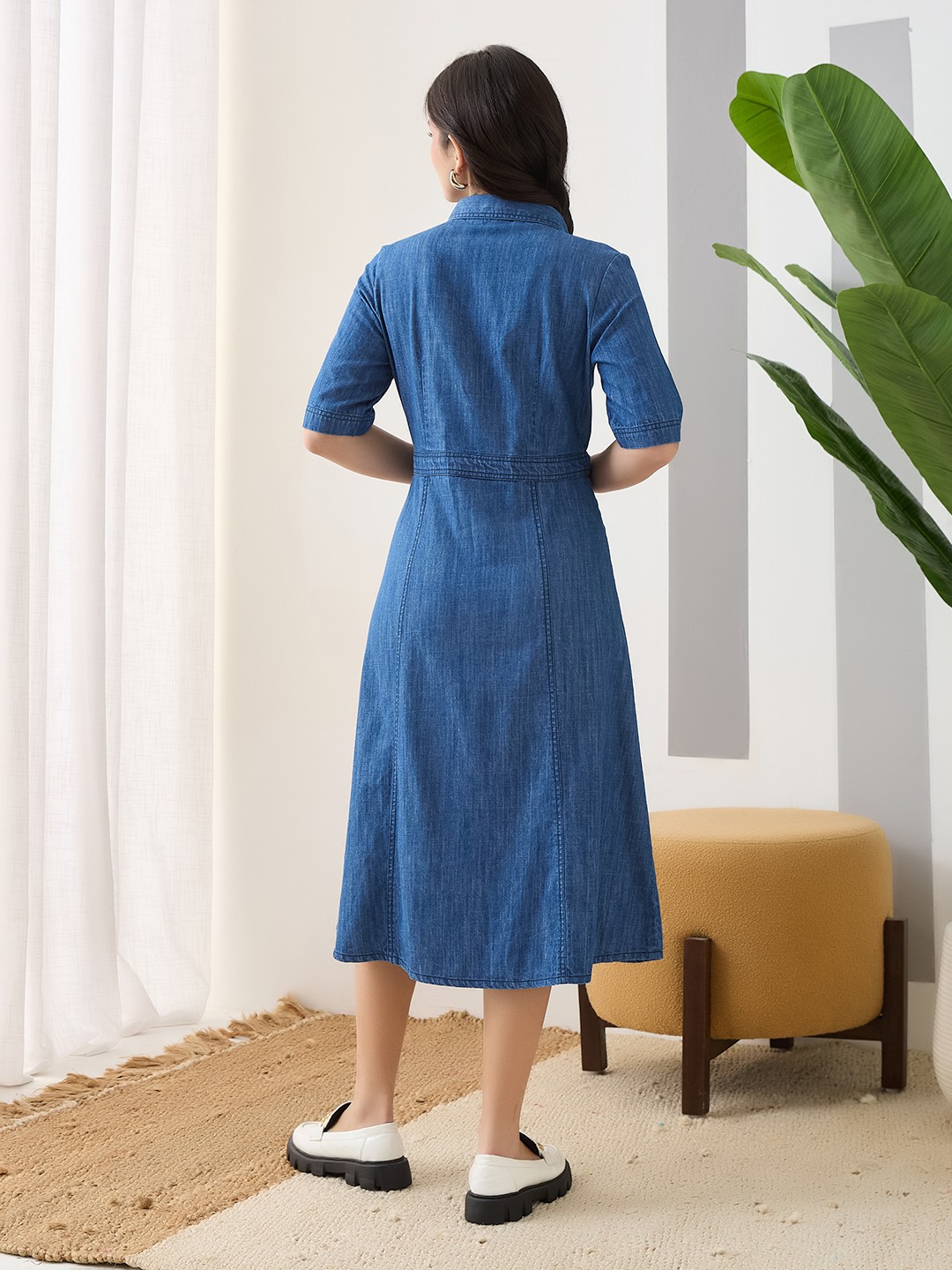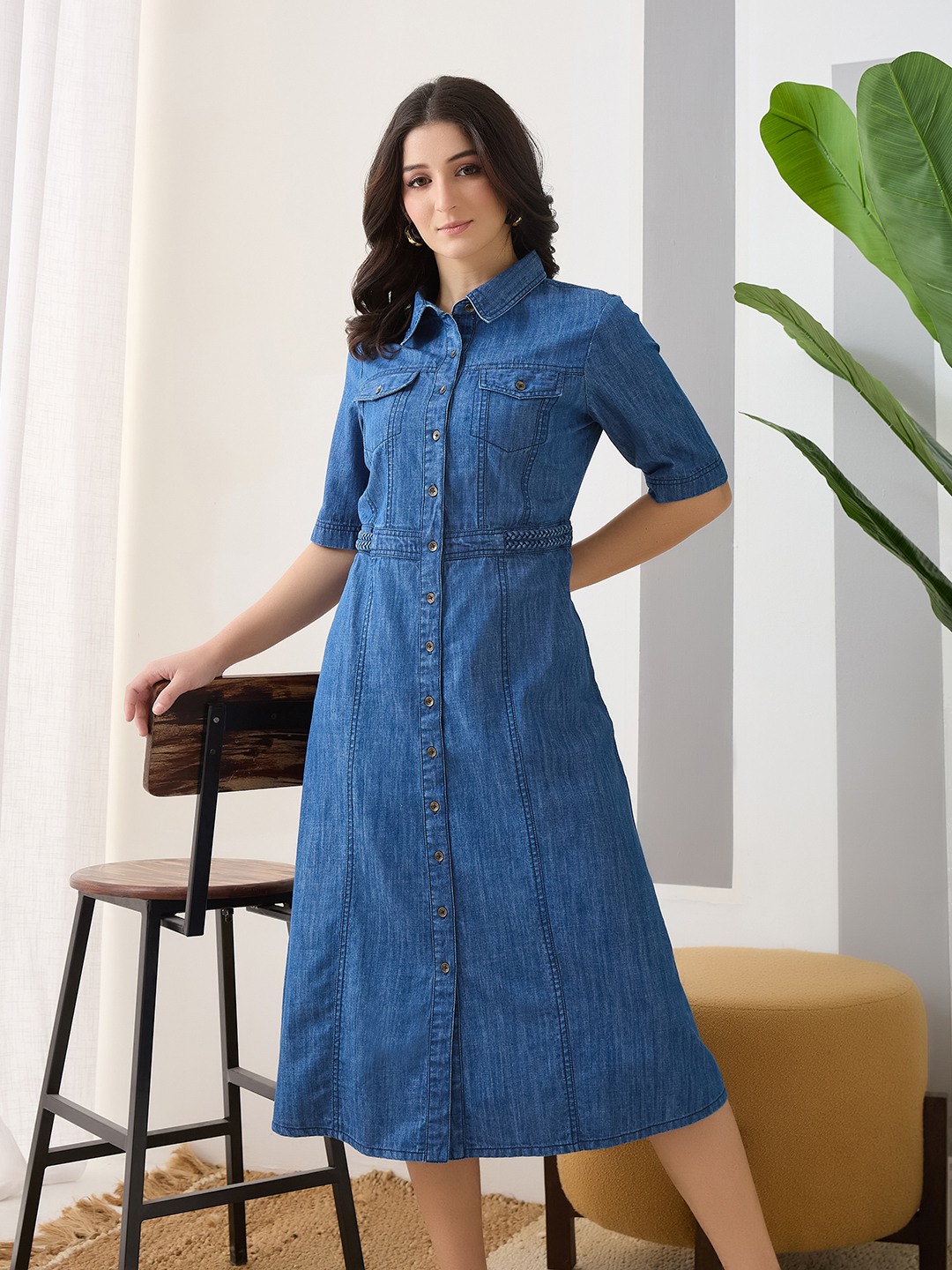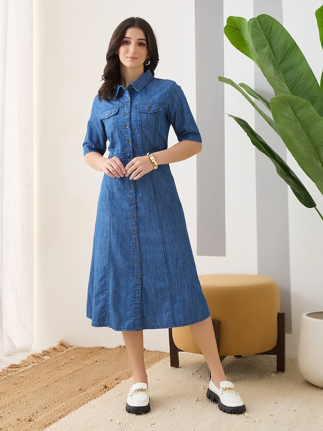 Latin Quarters Women'S Blue Solid Shirt Dress