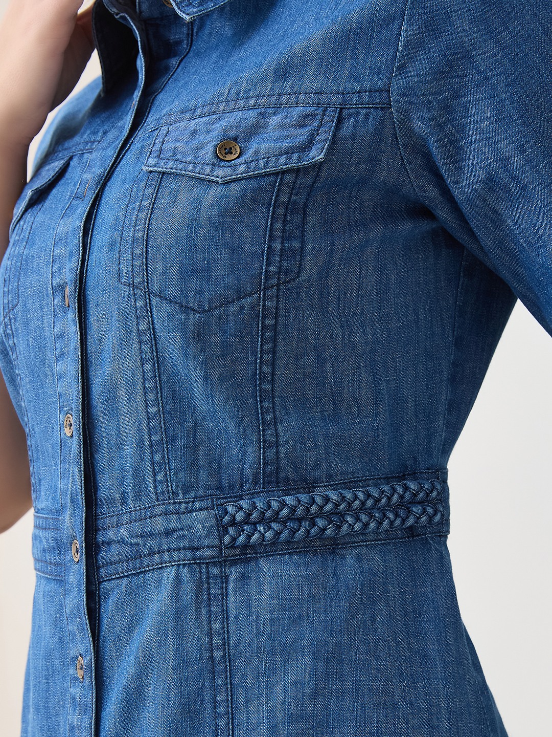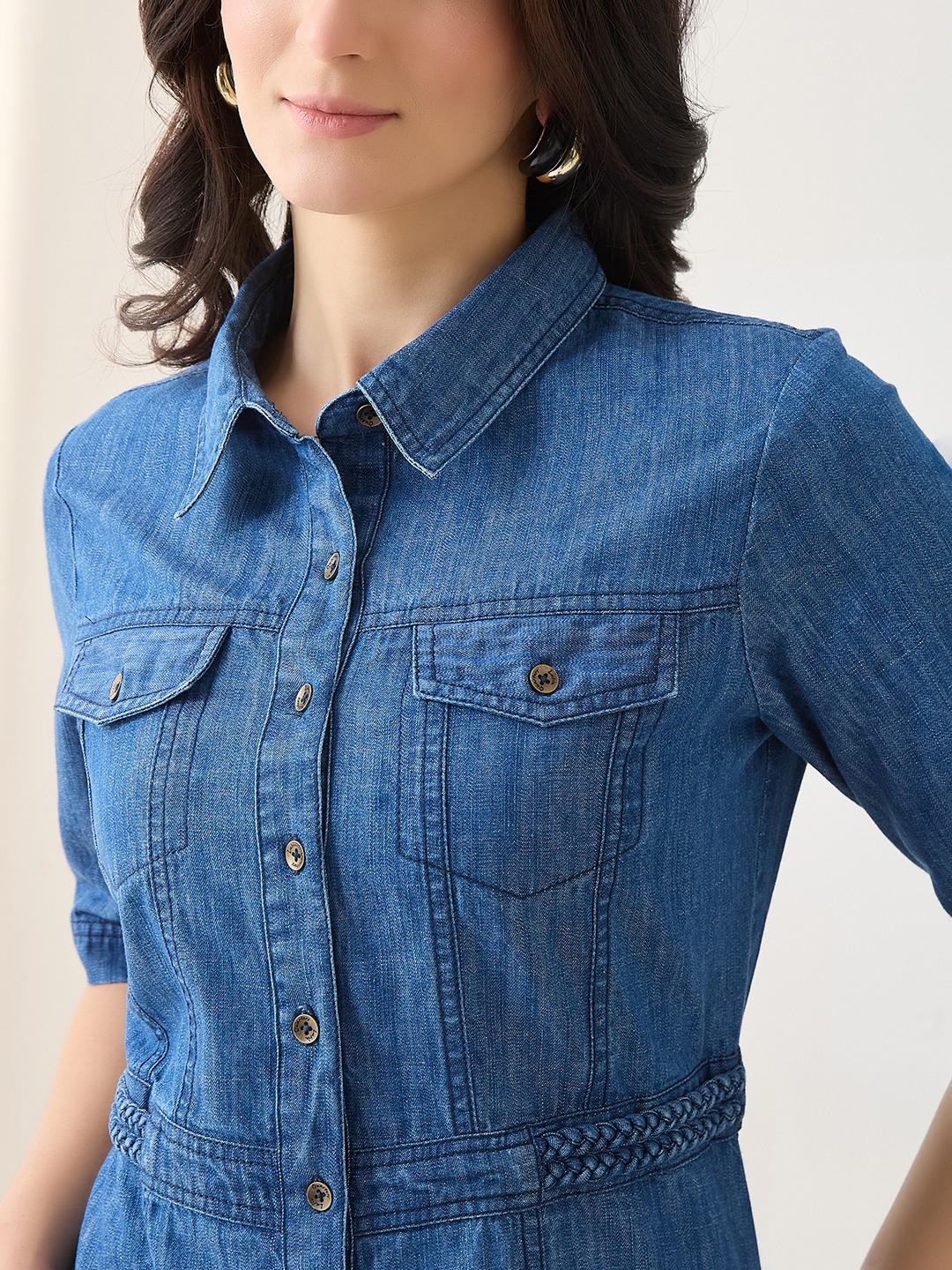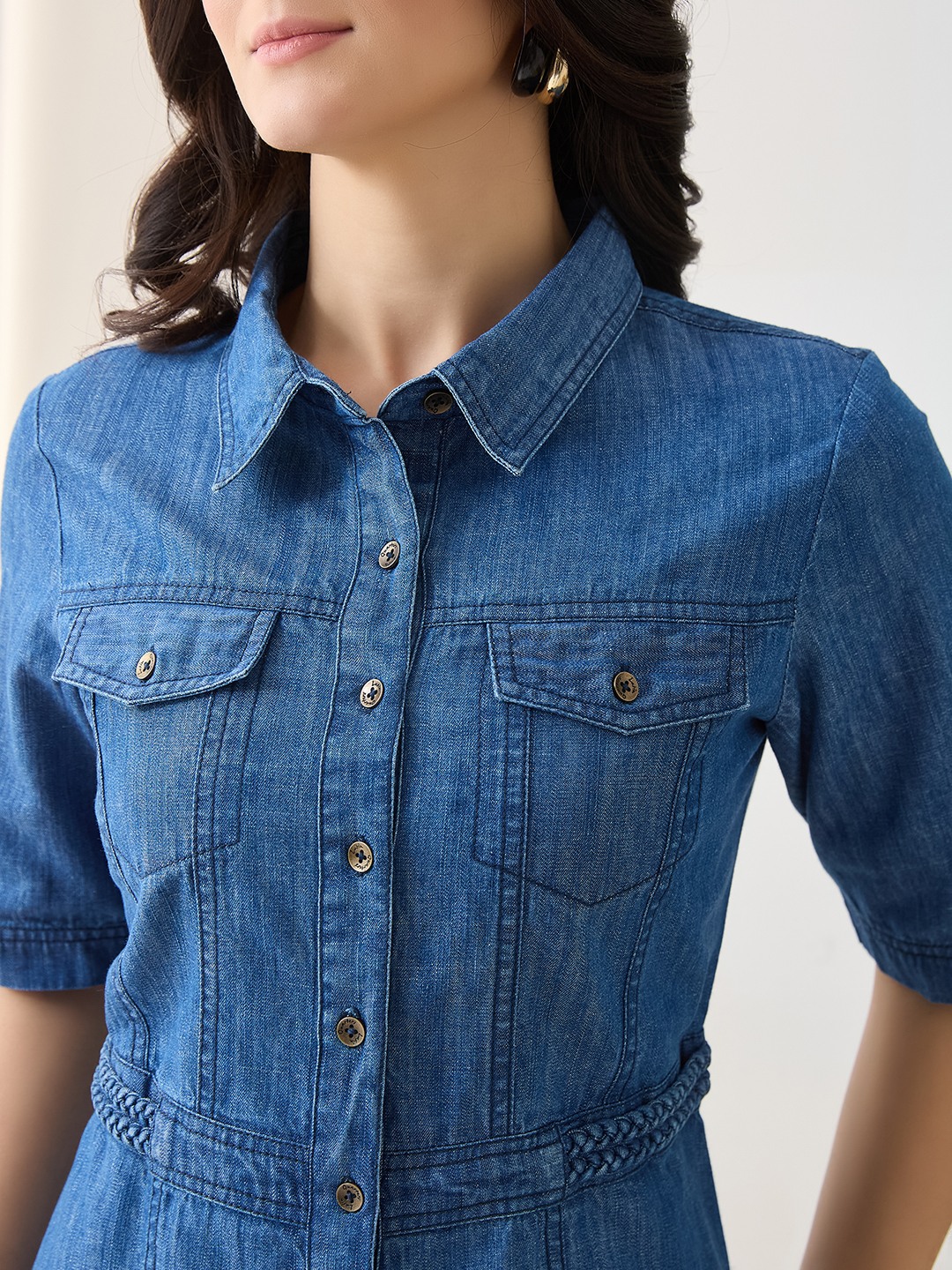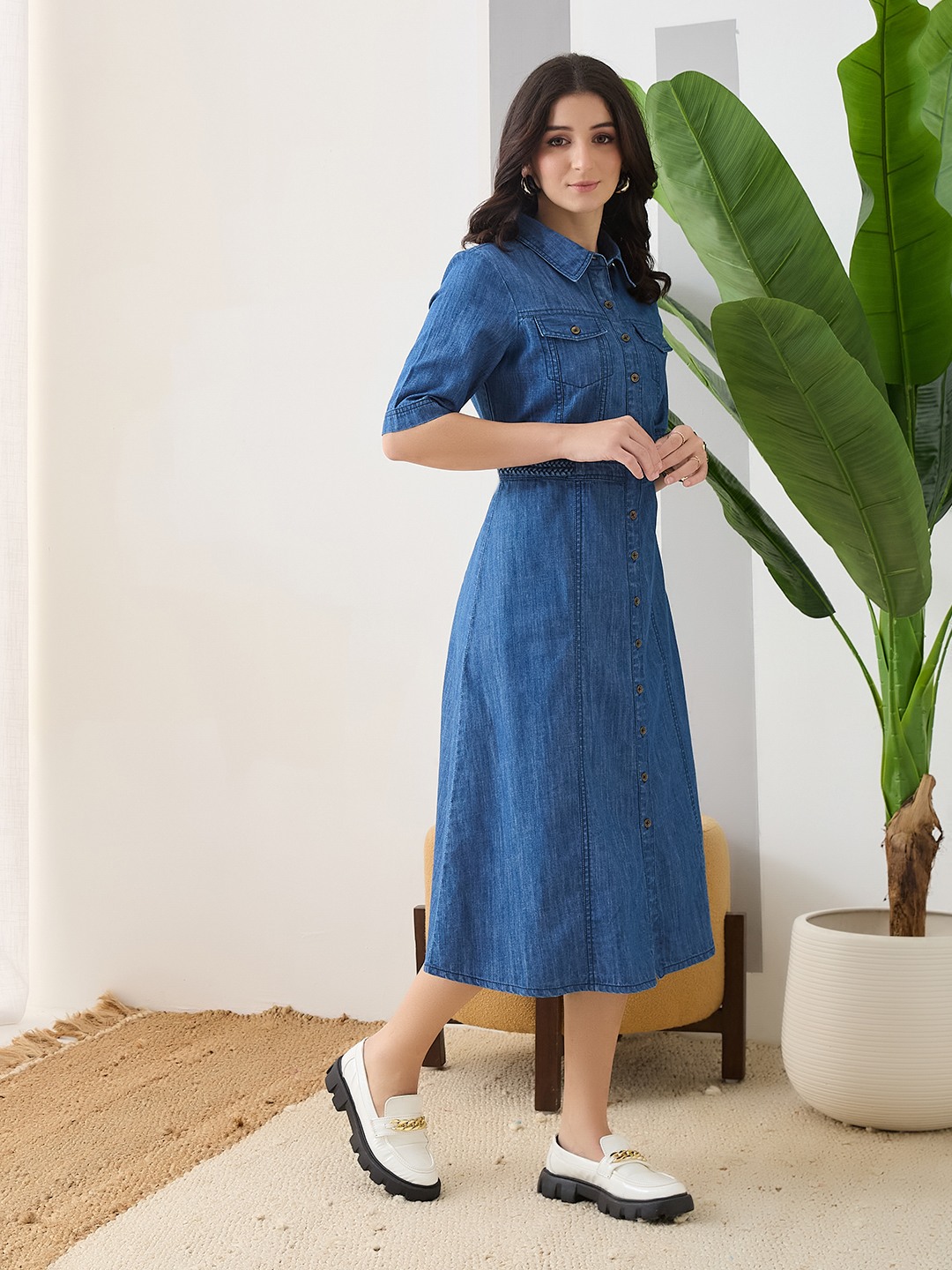 Latin Quarters Women'S Blue Solid Shirt Dress