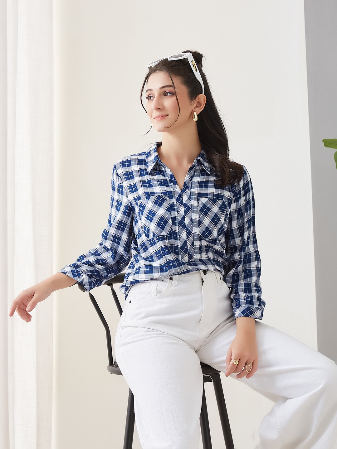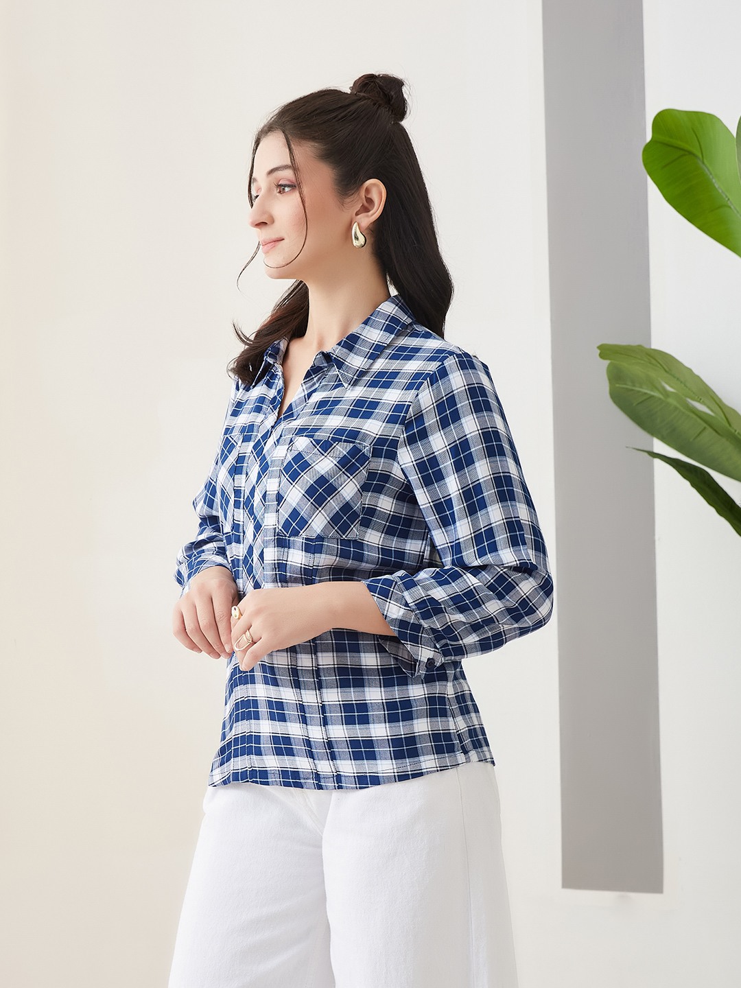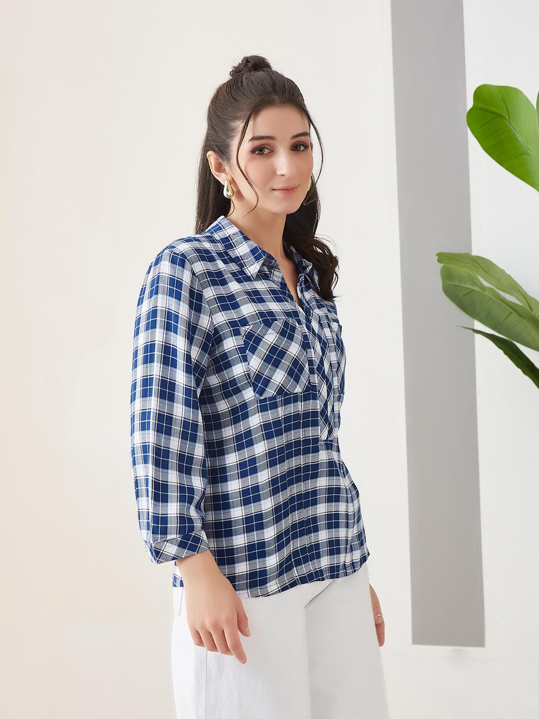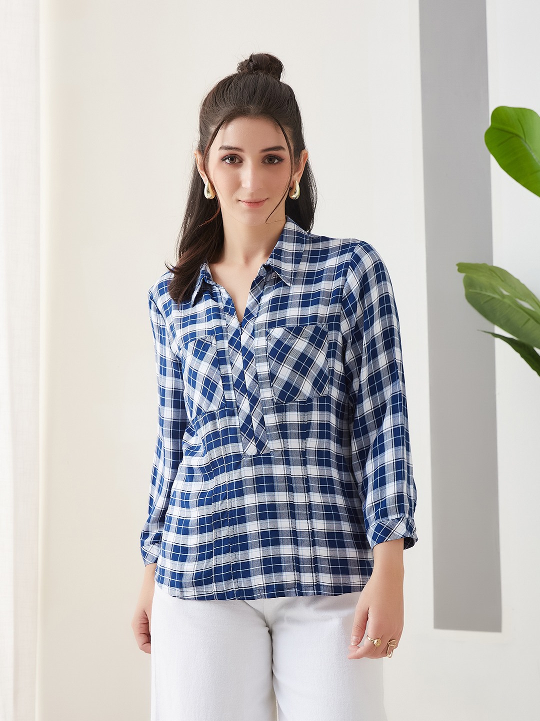 Latin Quarters Women'S Blue Yarn Dyed Top