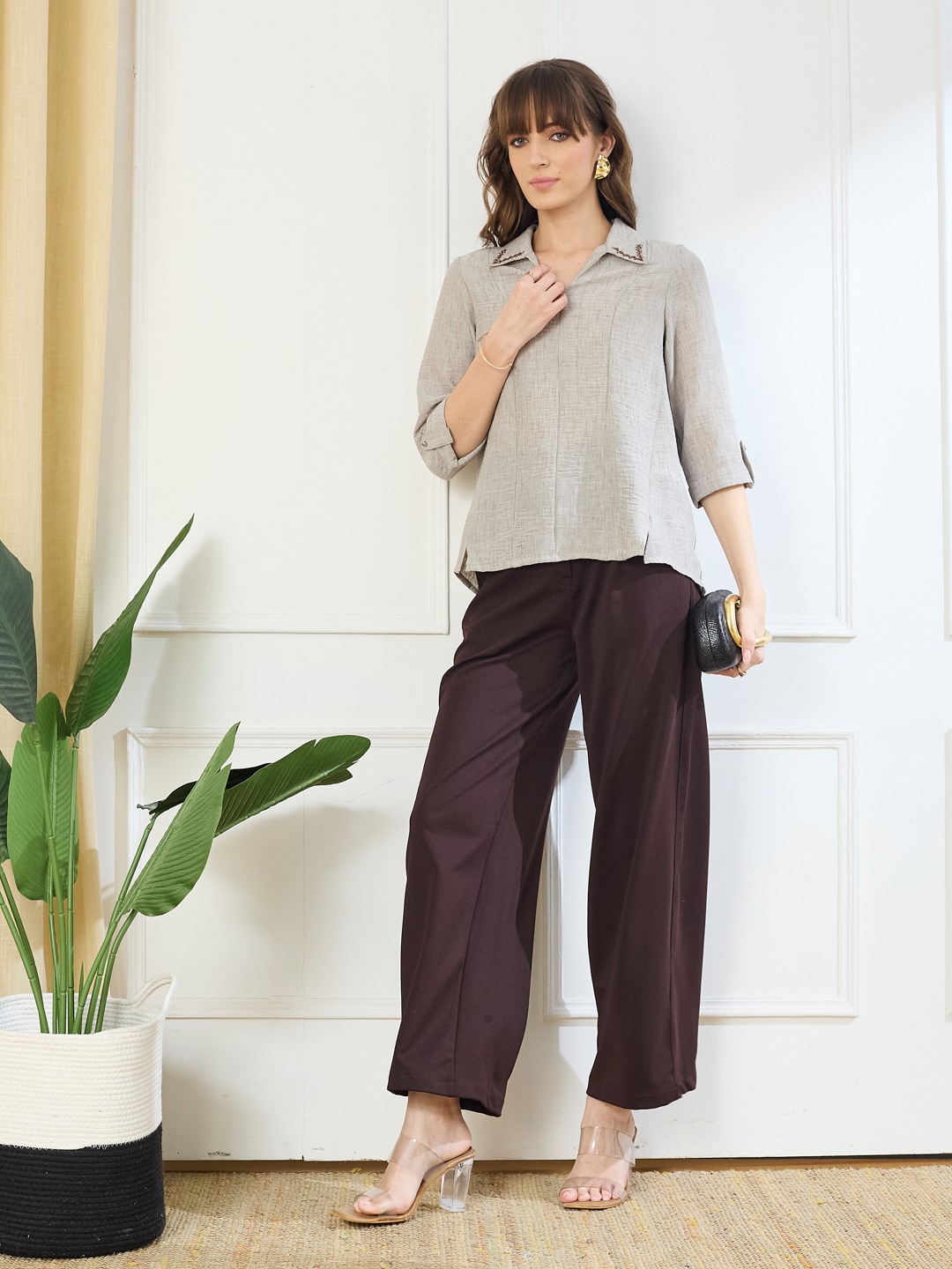 Home/Tunics/Latin Quarters/latin quarters women's brown solid straight tunic