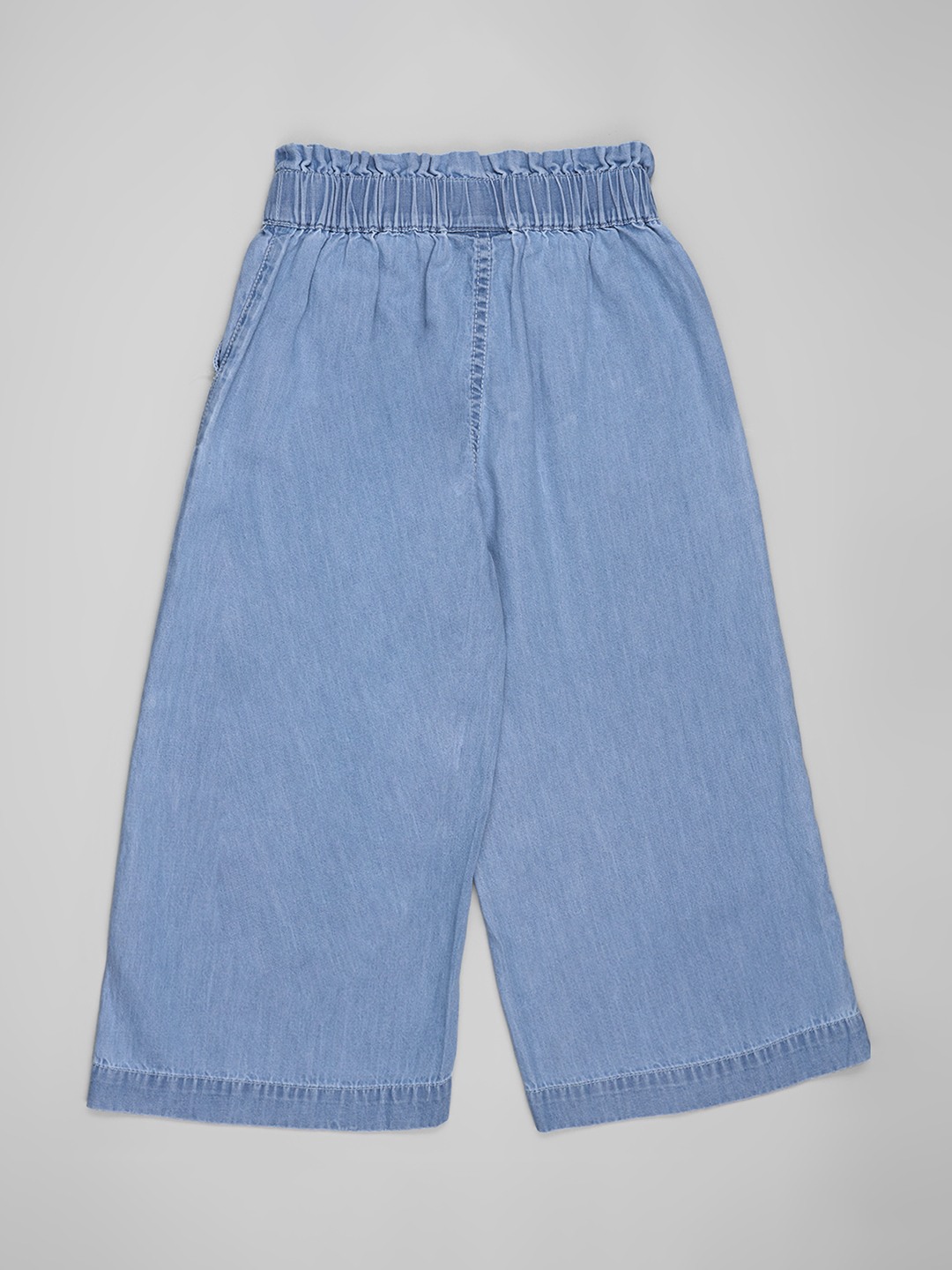Easy volume with a relaxed, modern drape. Cut with a paperbag-style elasticated waistband, fabric tie-up belt and wide straight legs for fluid movement. Crafted from lightweight denim that feels soft, breathable and comfortable through the day.