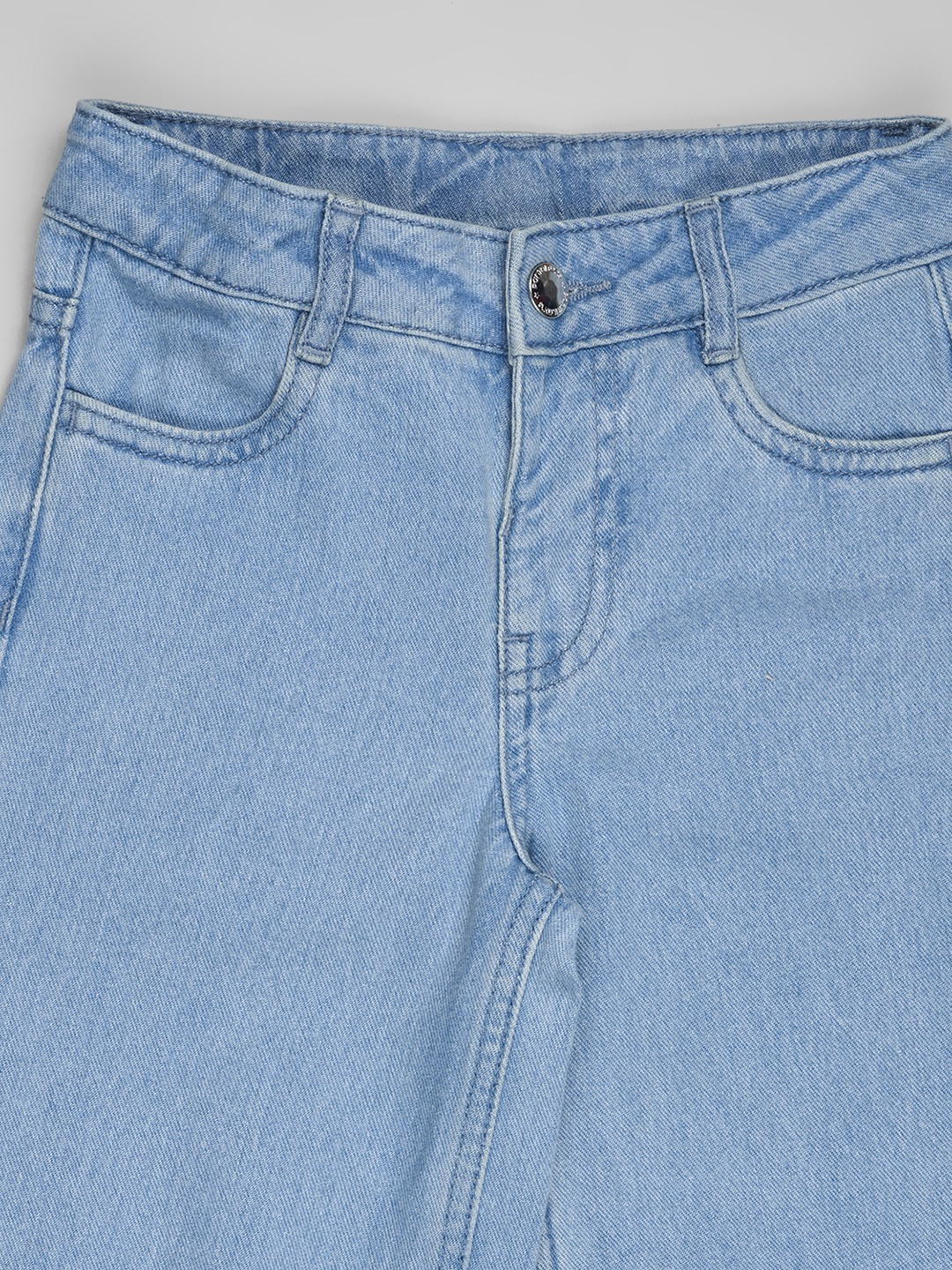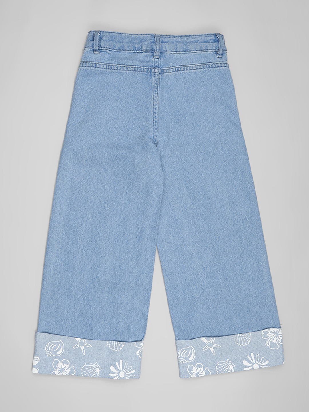 Denim with a playful twist, finished with a statement turn-up. Cut in a wide-leg silhouette with classic five-pocket styling, this pair features contrast printed cuffs that add a subtle pop at the hem. Crafted from structured denim that holds its shape while staying comfortable.